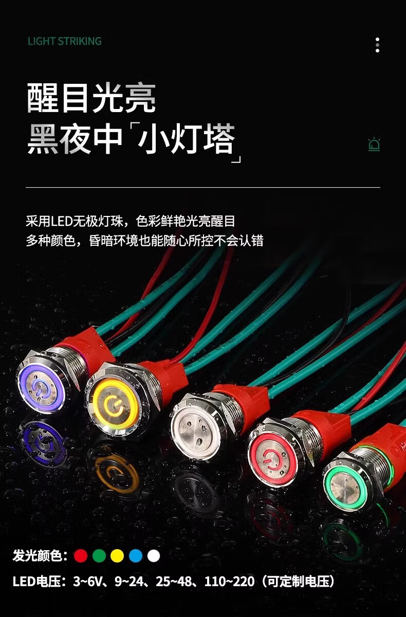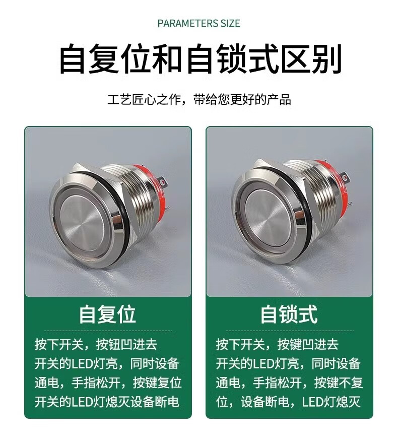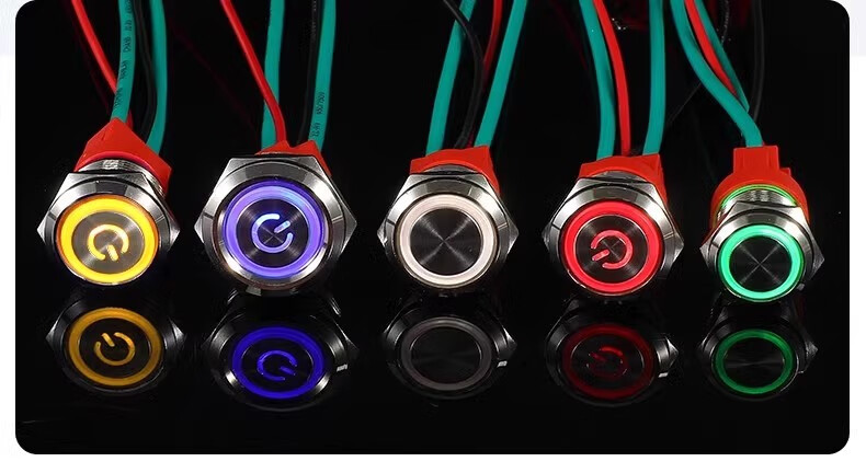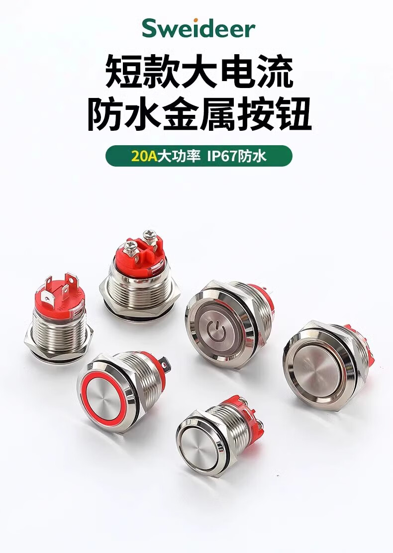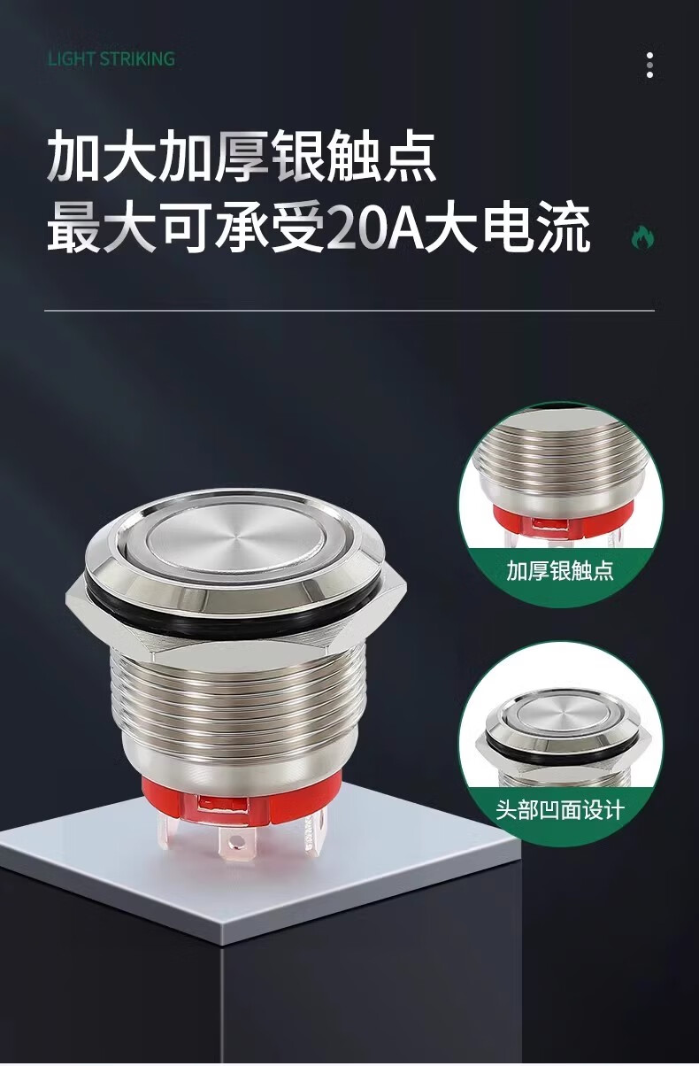 Sweideer16/19/22 opening high current 20A short self-resetting self-locking metal button switch with light start ring light-blue 12-24V opening 22MM self-resetting