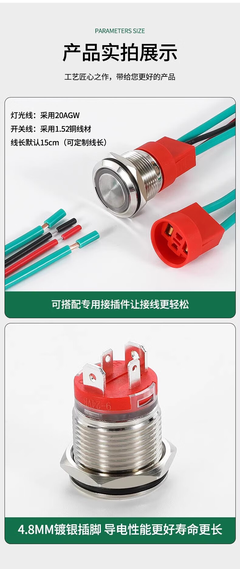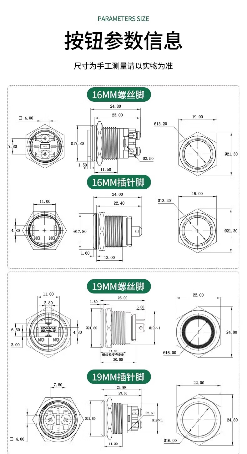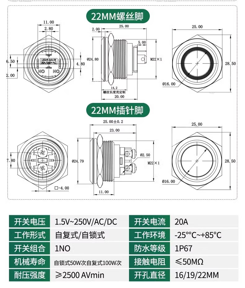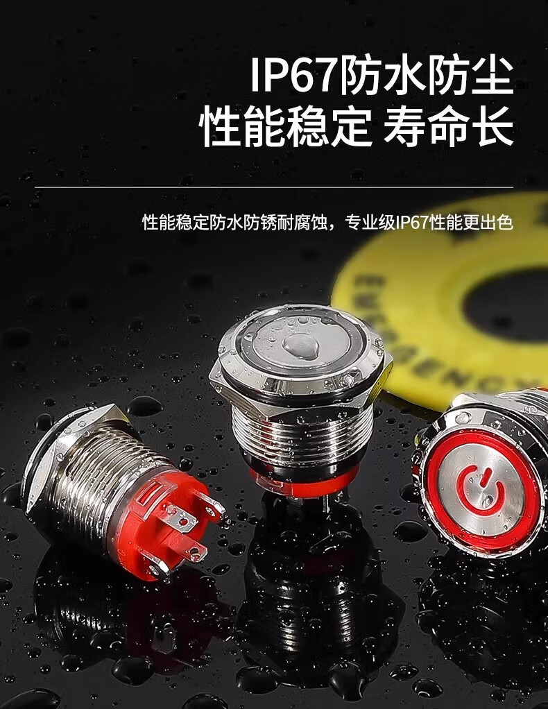 Sweideer16/19/22 opening high current 20A short self-resetting self-locking metal button switch with light start ring light-blue 12-24V opening 22MM self-resetting