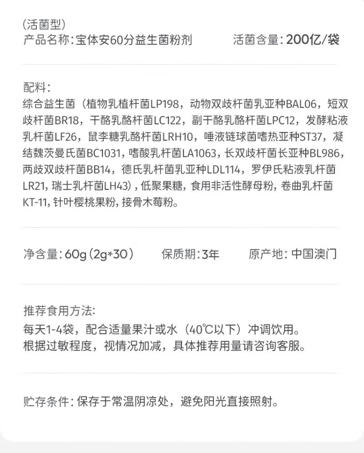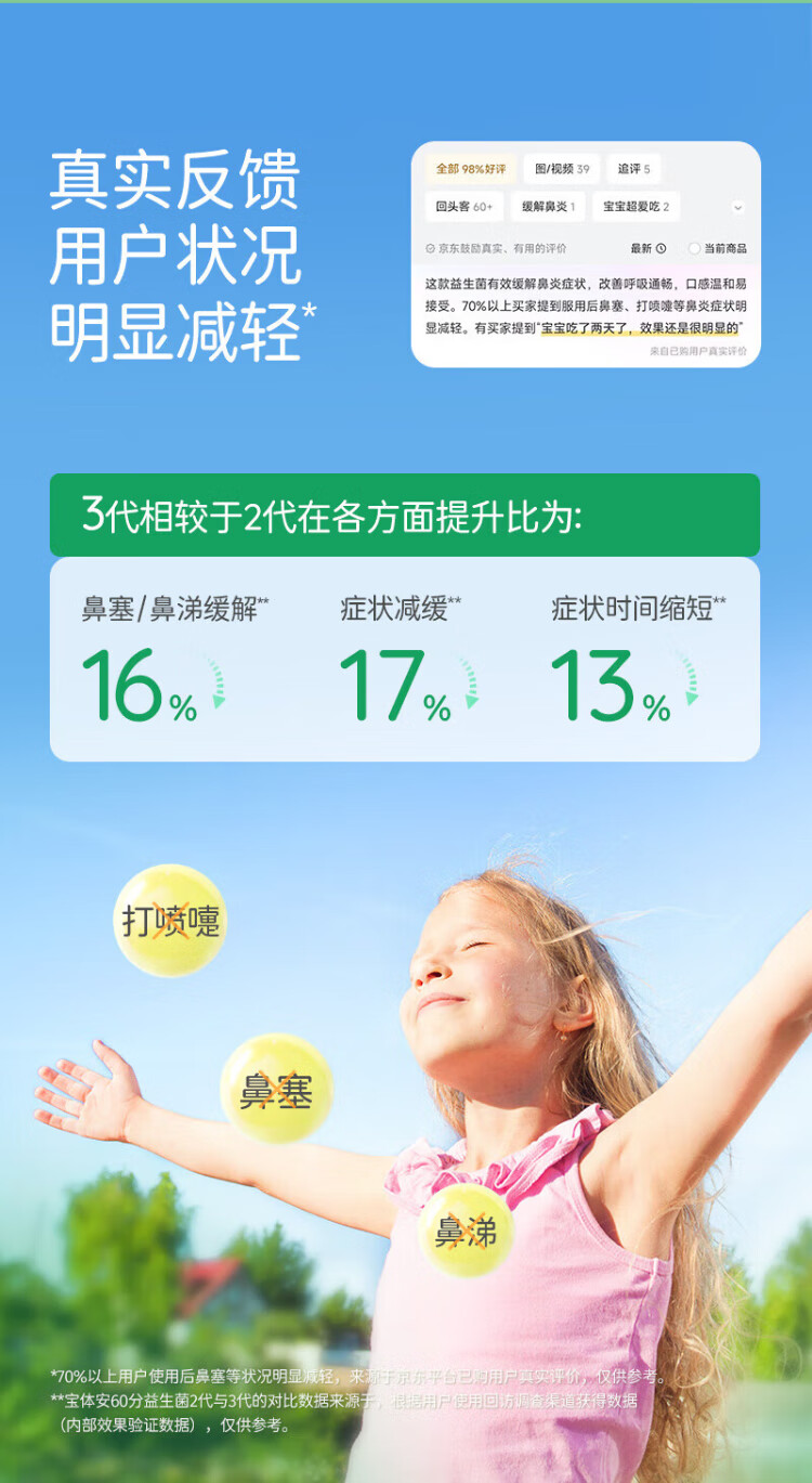 Baotian 3rd Generation Good Nose Bacteria Soothes Nose and Sensitivity 60 Points Probiotic Powder Contains Prebiotics Zhouzhou Exclusive 3rd Generation 60g*1 box (recommended 3 boxes per cycle)