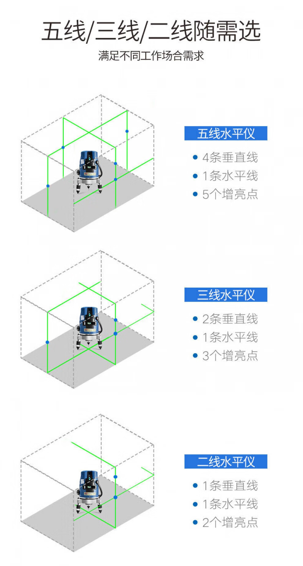 Dongcheng laser level green light 2/3/5 line caster high-precision portable green external level blue light line caster FF06-11E2 upgraded version two lines