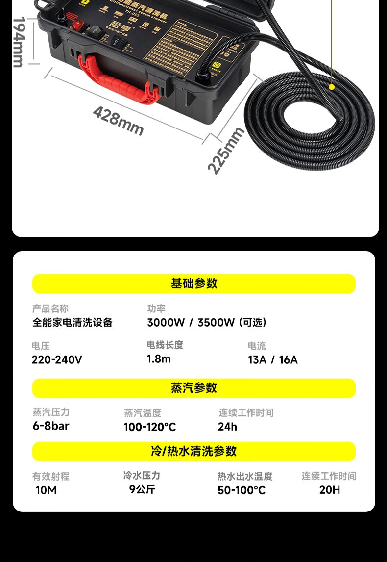 Yingheng Commercial Steam Cleaner High Temperature and High Pressure Housekeeping Home Appliance Cleaning Air Conditioning Tools Household Multifunctional All-in-One Cleaning Equipment High Temperature Kitchen Oil Fume Degreasing Cleaning Machine 05S Hardcover 3500W (steam hot and cold water) 20KG pressure