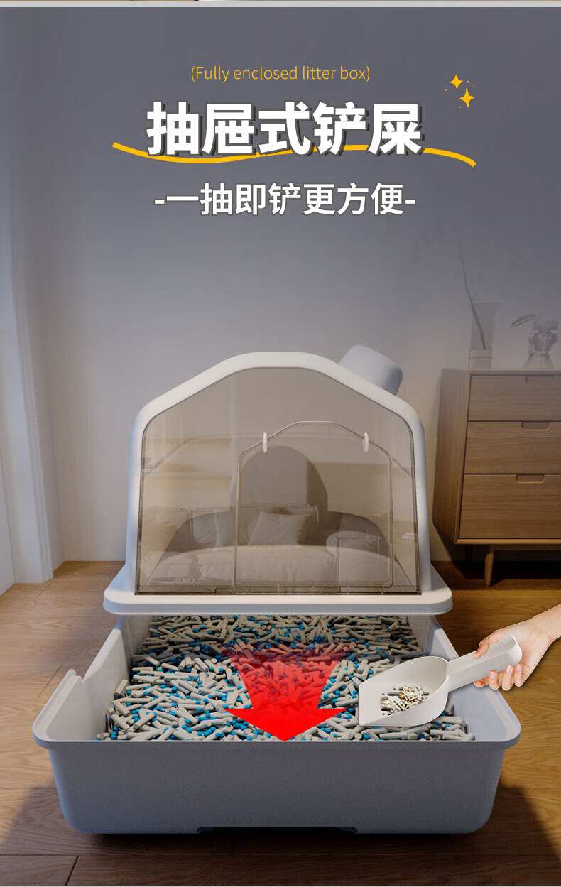 Kosi Cat Litter Box Extra Large Fully Enclosed Drawer Type Reduces Splash Extra Large Cat Poop Urine Pan Cat Toilet Yellow Fully Enclosed With Cat Scoop + Bamboo Charcoal Deodorizing Bag