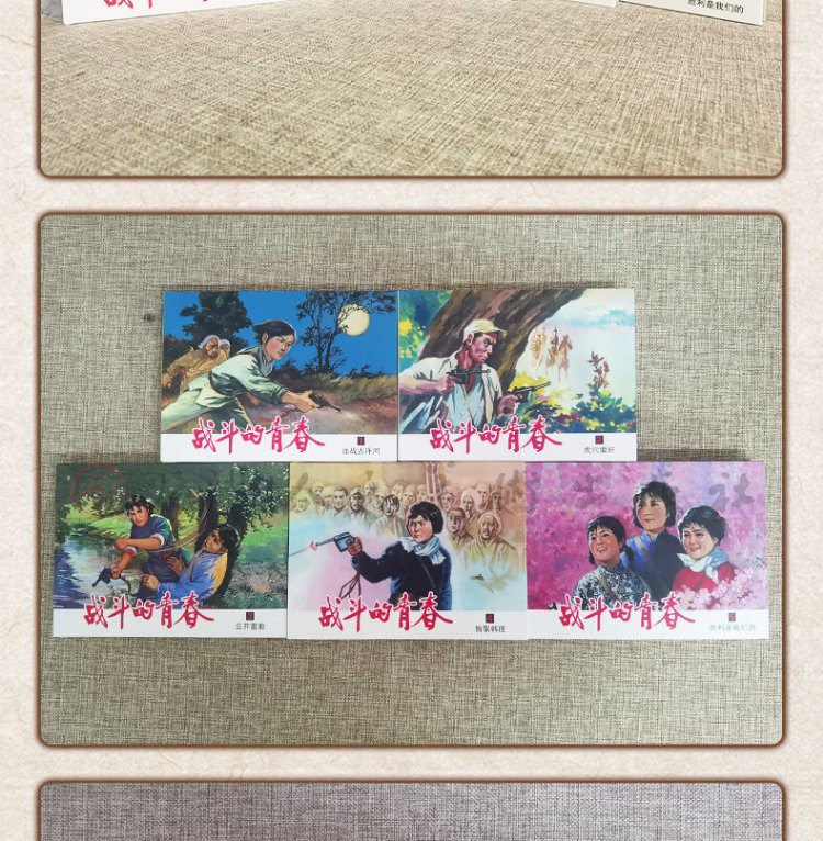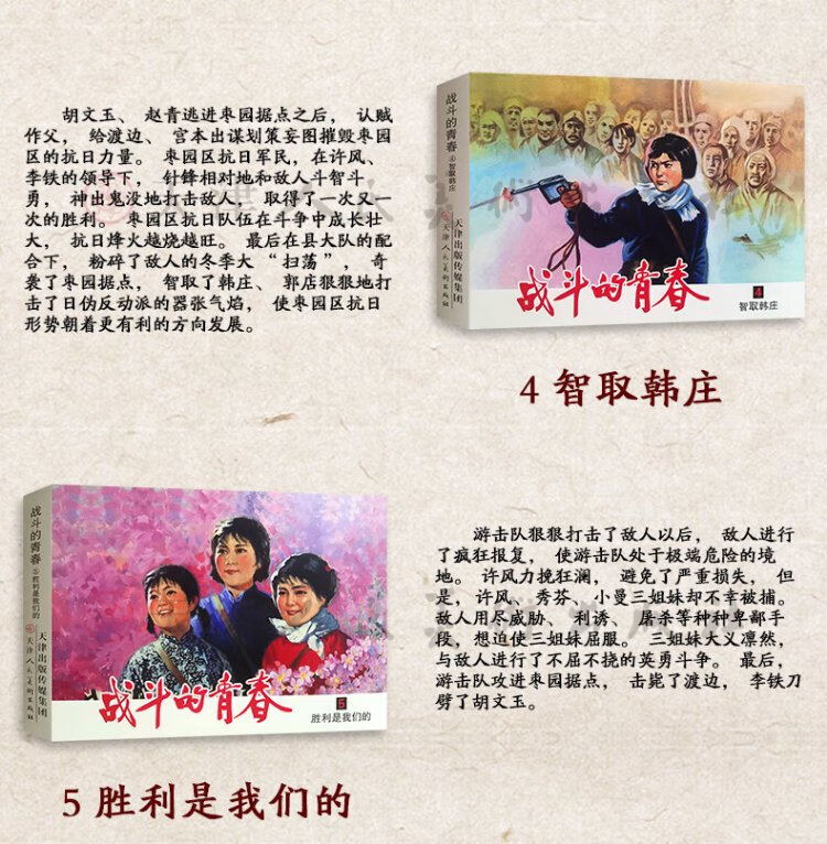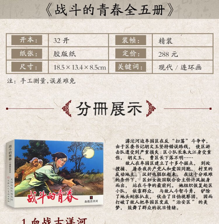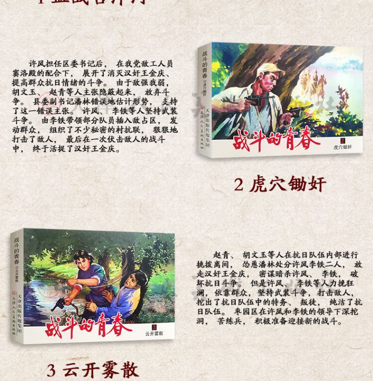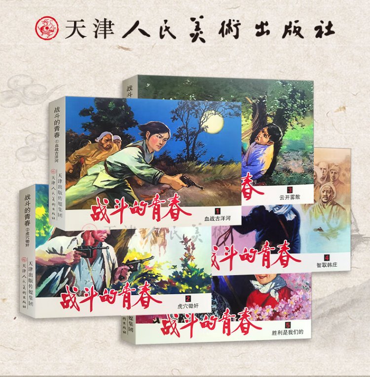 The official flagship, The Youth of Fighting, all 5 volumes, Xue Ke’s original work Bloody Battle at the Guyang River, Rape in the Tiger’s Lair, The Clouds Clear and the Mist, Victory is Ours, Outsmarting Hanzhuang, Nostalgic Comic Book Collection, Tianjin People’s Fine Arts Publishing House, 50 copies, The Youth of Fighting, All 5 volumes
