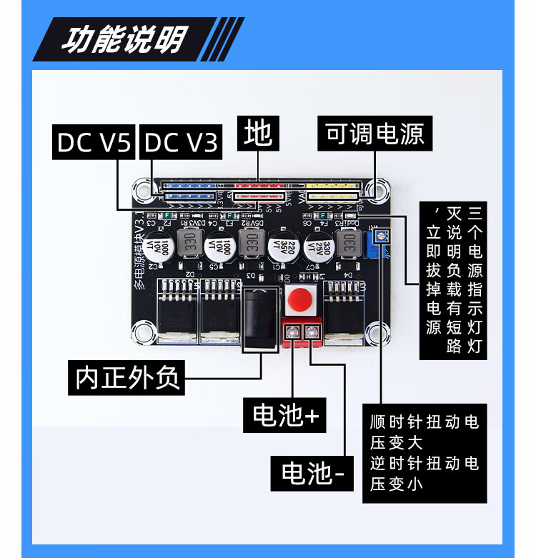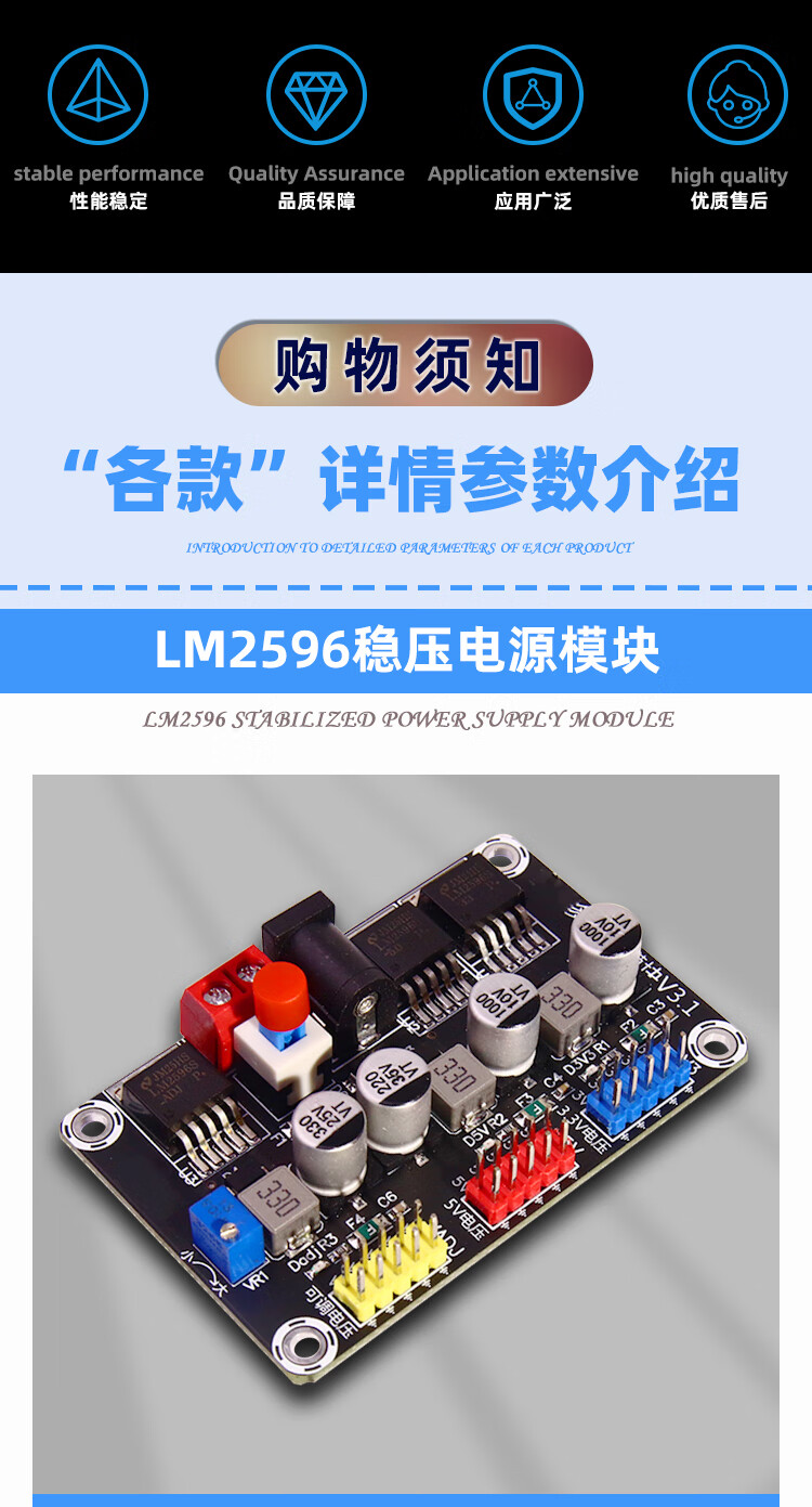 Dengshitang lm2596 regulated power supply module dc3.3V dc5V DC adjustable multi-voltage electric racing smart car power supply standby LM2596 adjustable power module (with shell)