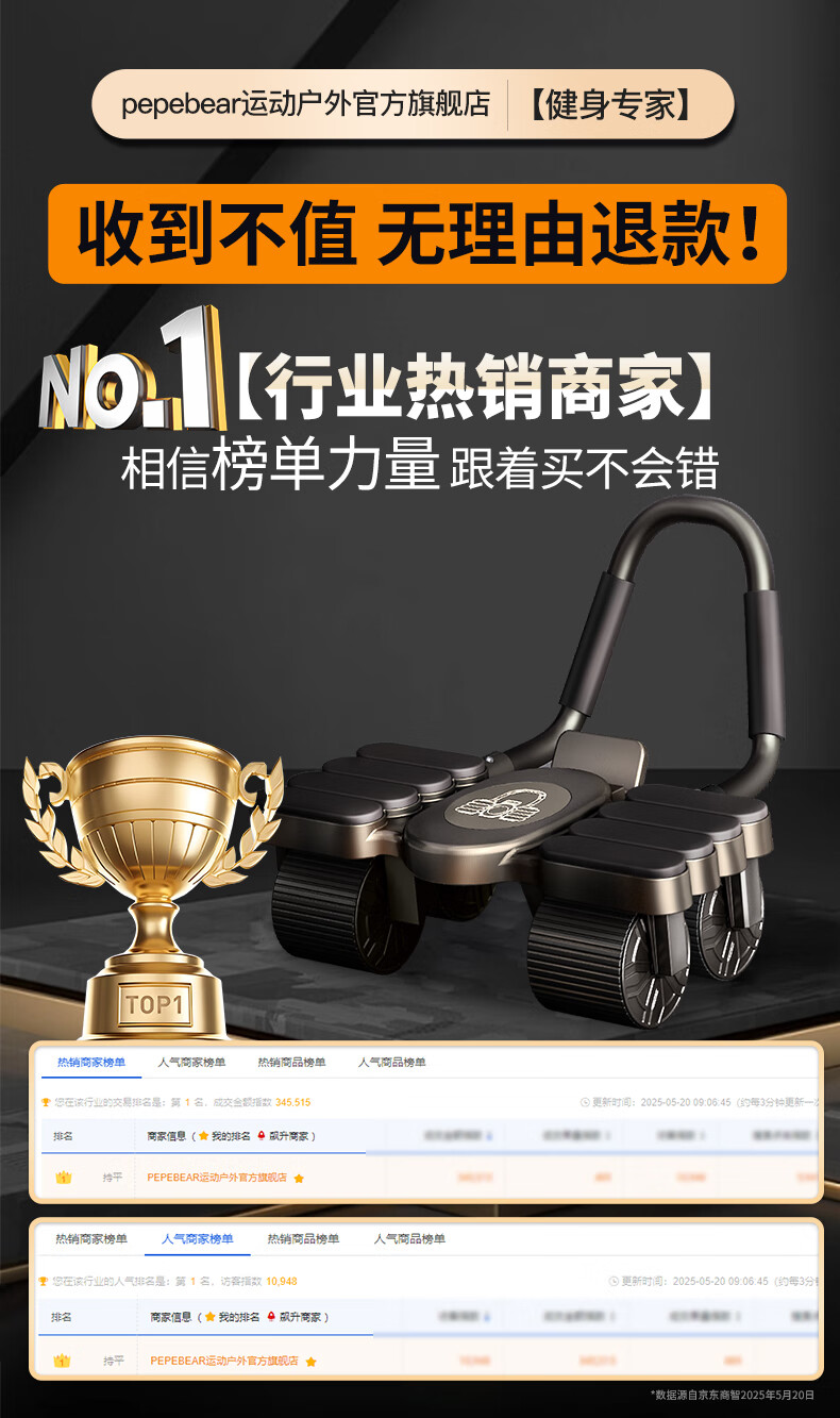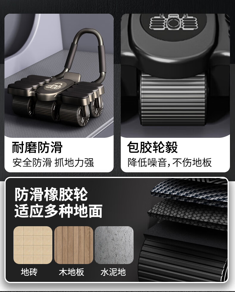 PEPEBEAR Abdominal Wheel Abdominal Muscle Wheel Automatic Rebound 2025 New Eight Elbow Support Kneeling Pad Abdominal Roll Abdominal Muscle Fitness Equipment Impulse Model + Upgraded Eight Elbow Support Four Wheel Model - Black