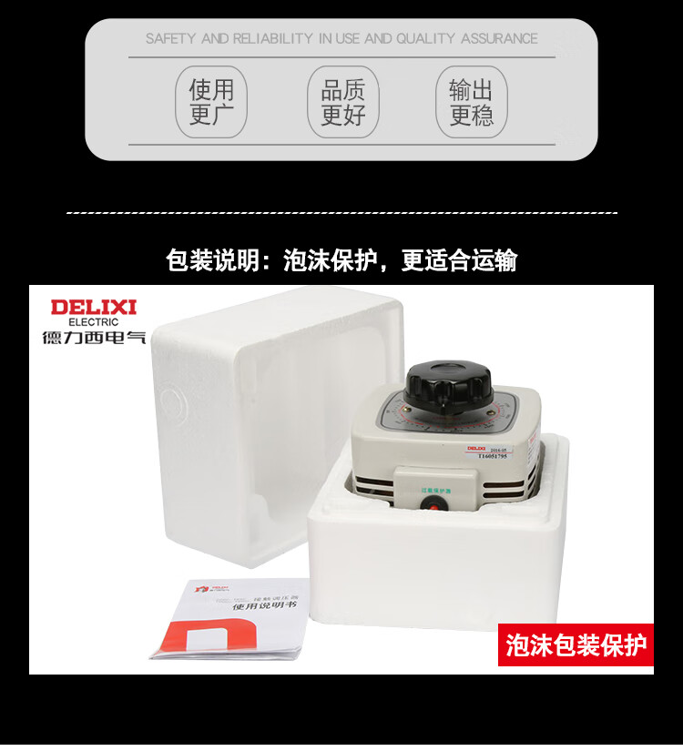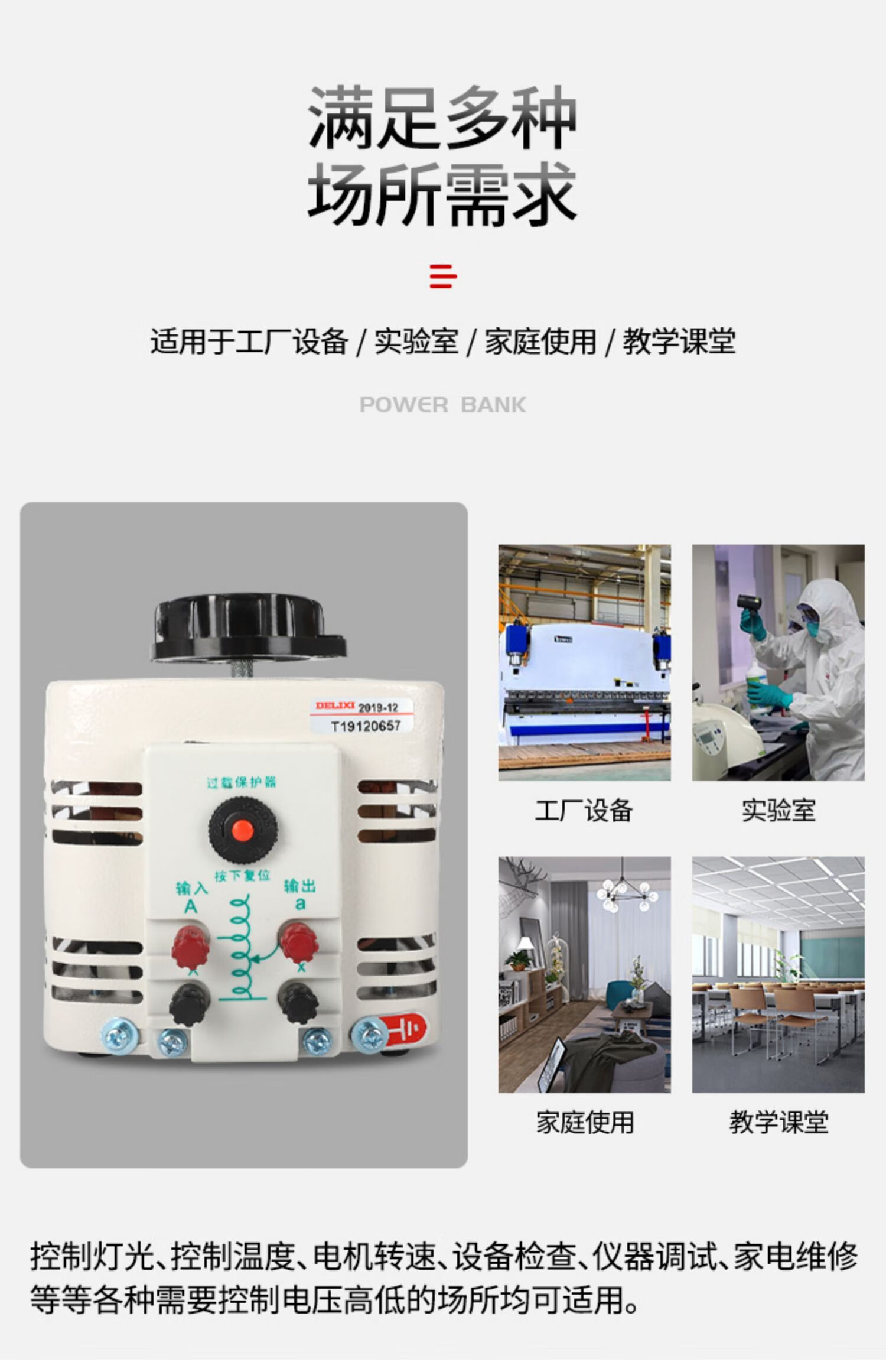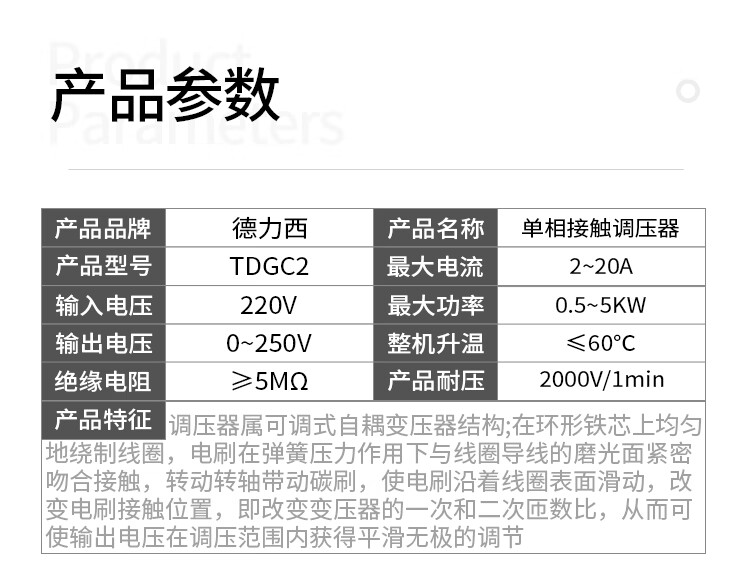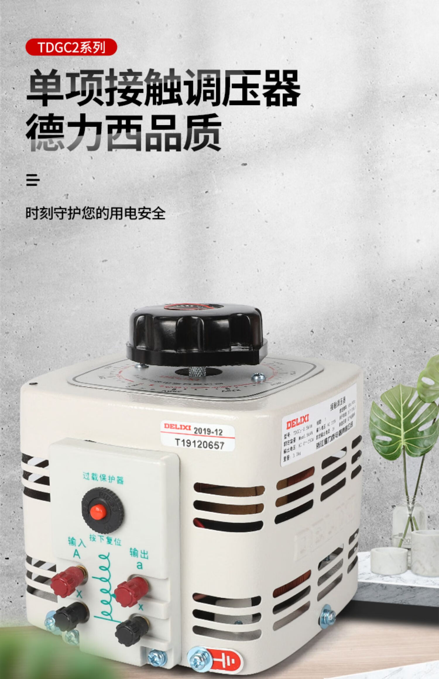 Delixi electrical voltage regulator 220v single-phase AC contact voltage regulator auto-coupling TDGC2 output adjustable 0-250V TDGC2-500W