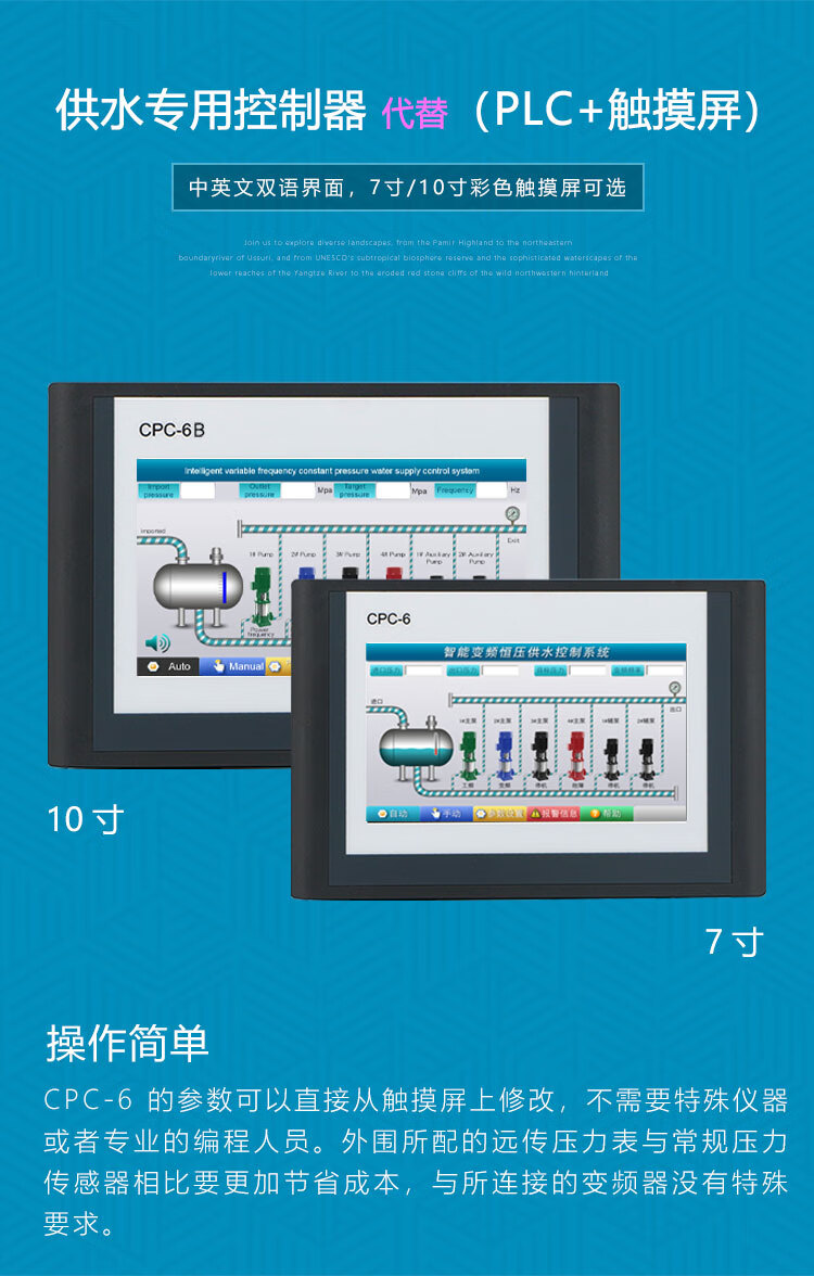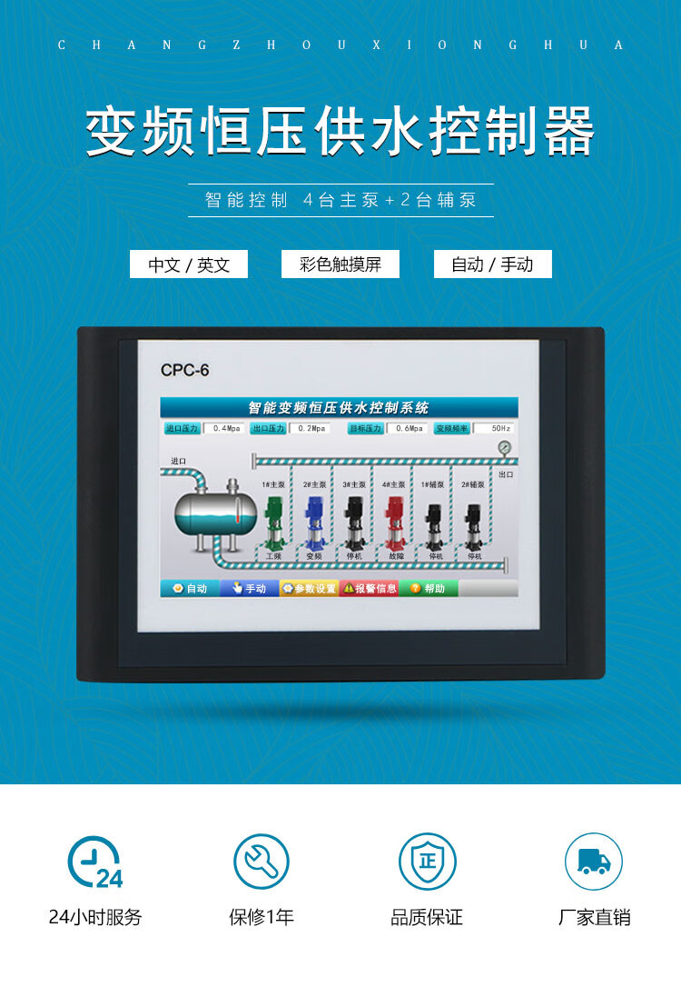 Customized CPC-6 Xionghua 7-inch 10-inch color touch screen constant pressure water supply controller intelligent frequency conversion all-in-one machine 10-inch one-to-two