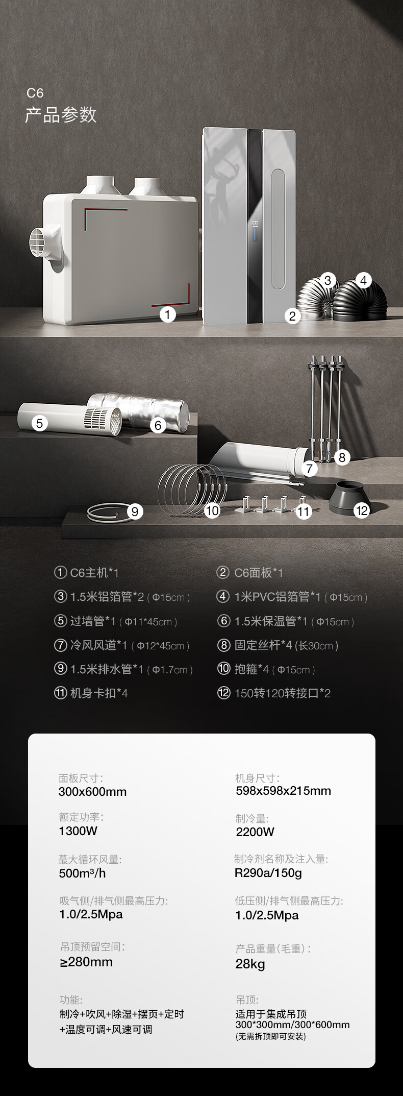 Cobangshi kitchen air conditioner special machine household refrigeration cooling machine ceiling embedded blower cooling machine honeycomb large board ceiling single kitchen special air conditioner 1 HP set C6 kitchen air conditioner (1 HP)