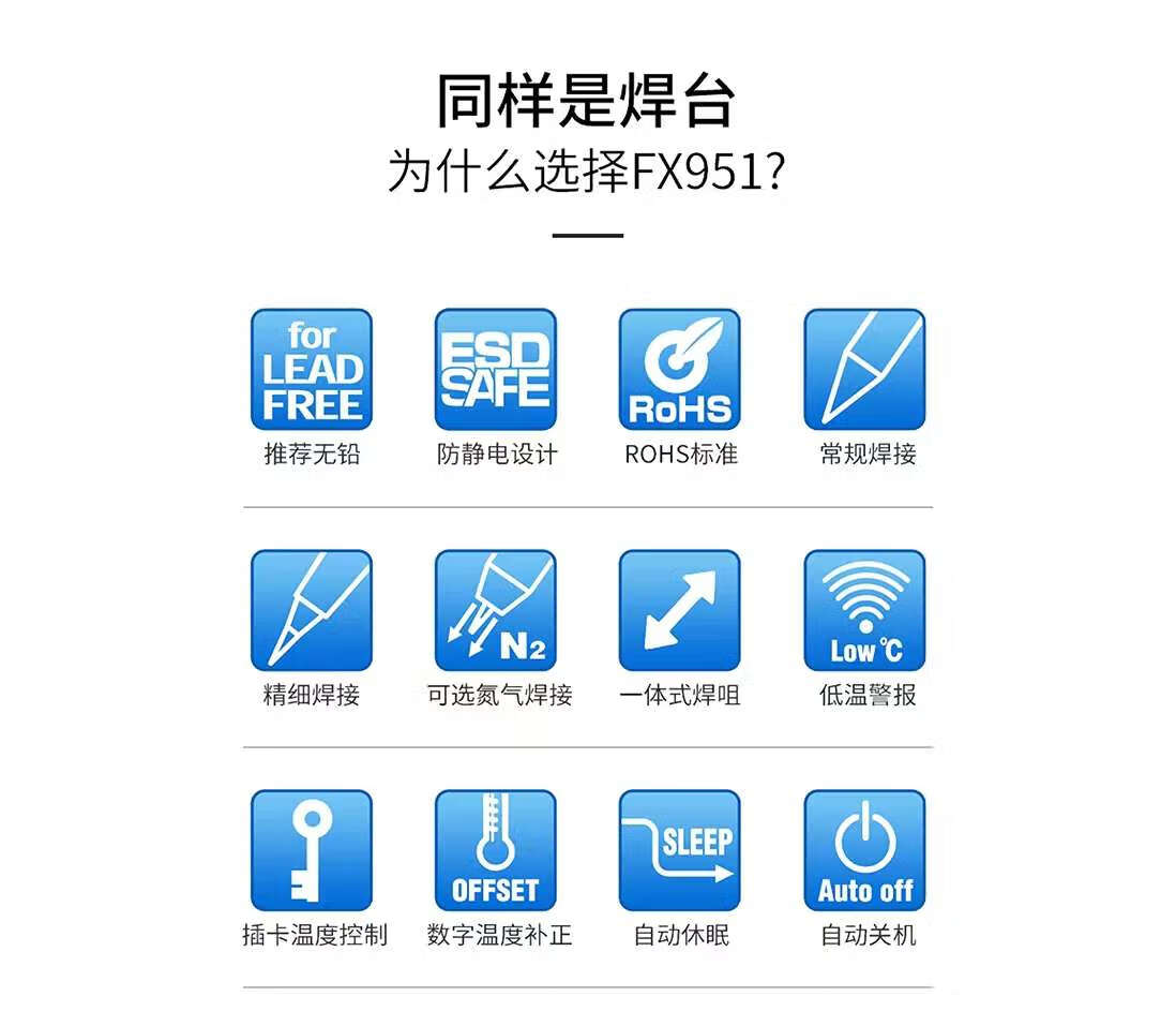Renjuyi customized original white light fx951 soldering station constant temperature digital display adjustable temperature electric soldering station welding tools FX951 standard does not include welding tips
