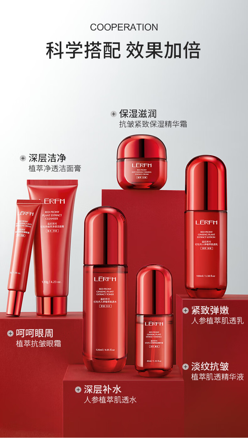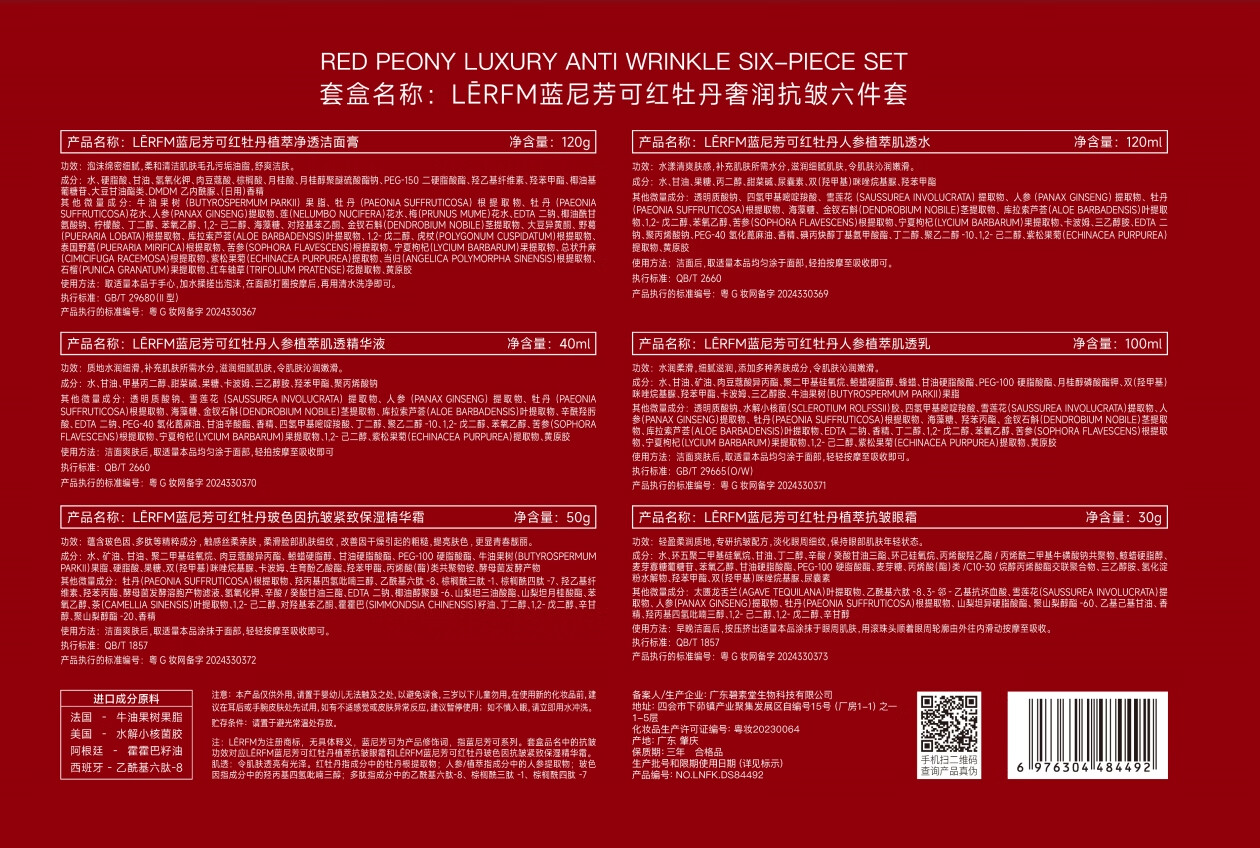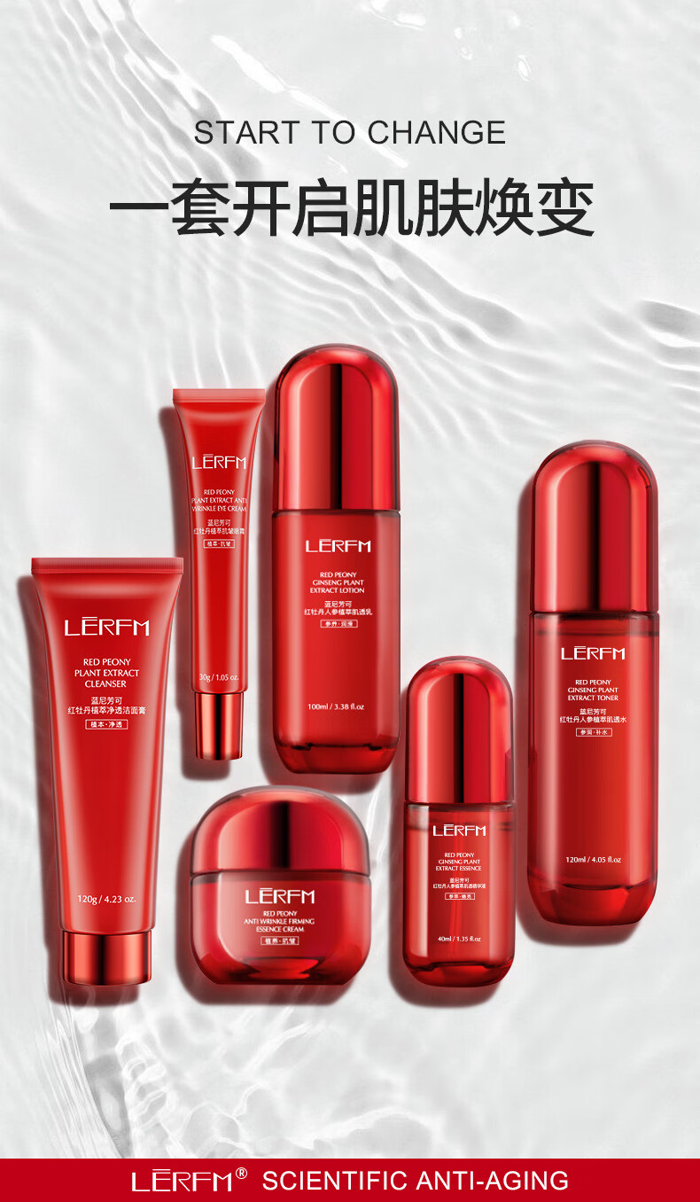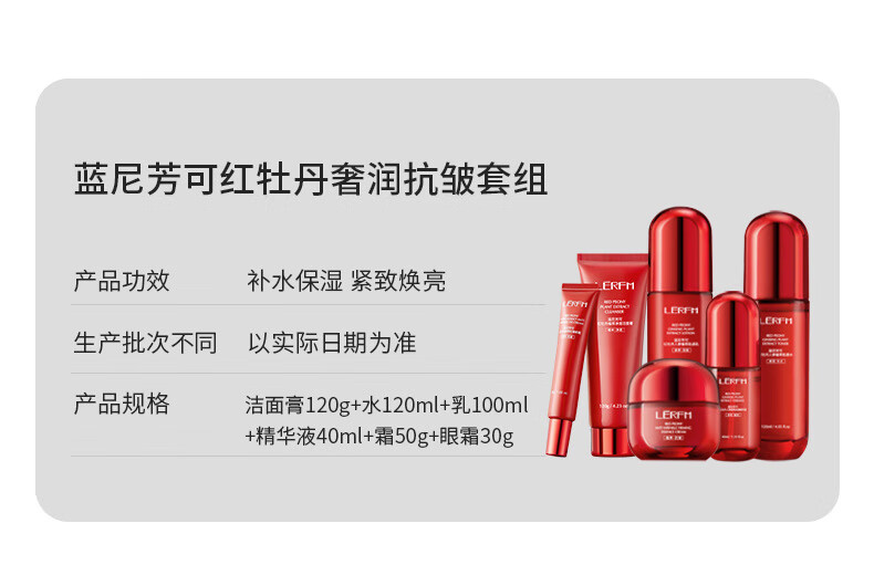 LANNIFANGKE 40-50 year old woman skin care product set gift box full set of cosmetics water emulsion anti-wrinkle firming hydrating moisturizing gift red waist 6-piece skin care gift box for my wife on Valentine's Day