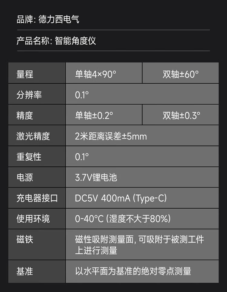 Delixi Electric dual laser digital display inclinometer high-precision horizontal ruler angle measuring instrument multi-functional angle ruler strong magnetic angle meter dual laser/smart inclinometer bracket set