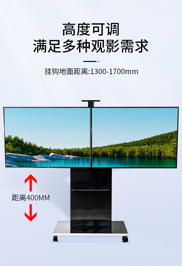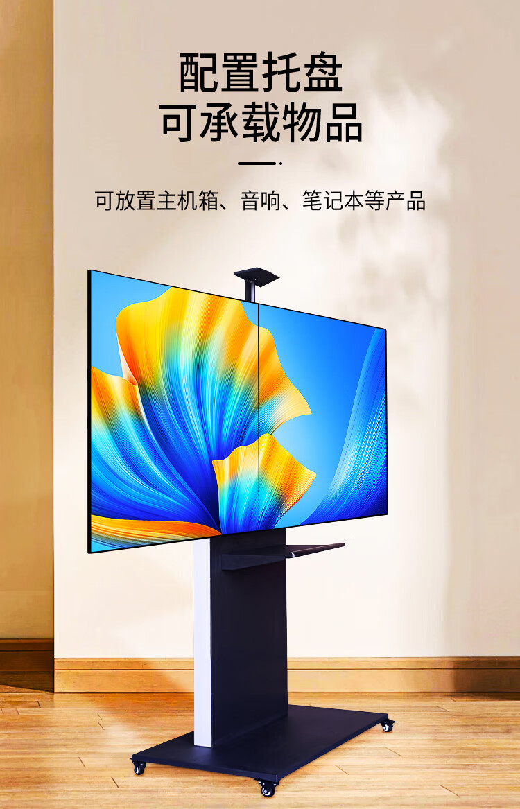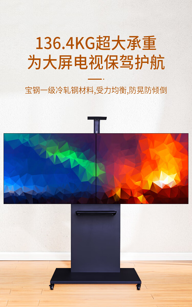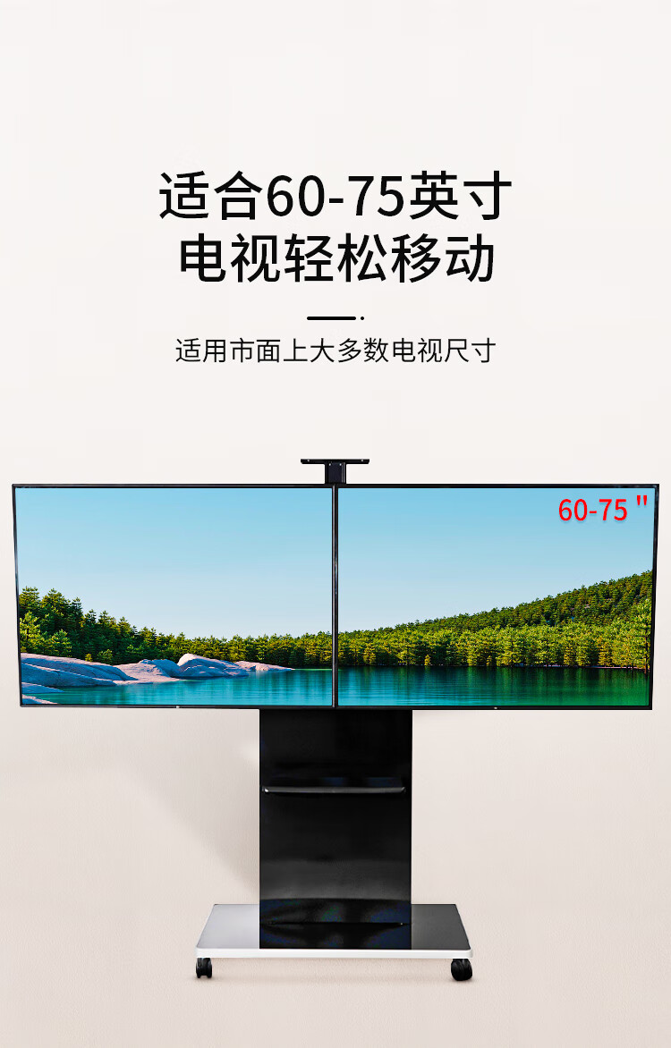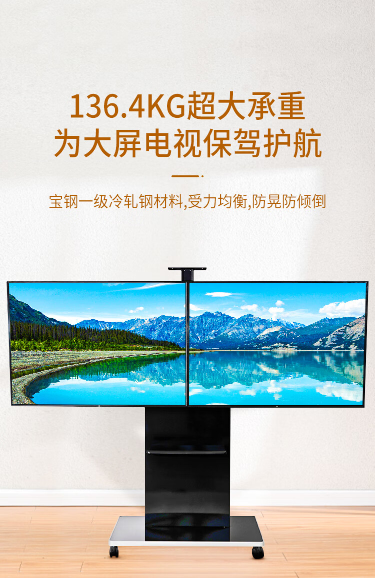 BIOOM MOUNT blooming 60-100-inch TV mobile stand video conferencing floor stand Xiaomi Hisense Skyworth TCL Huawei dual-screen TV floor cart large load-bearing can be lifted Piano Black T96 Universal 60-100 inches 136 kg load-bearing