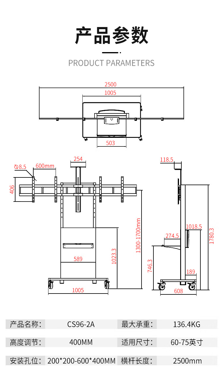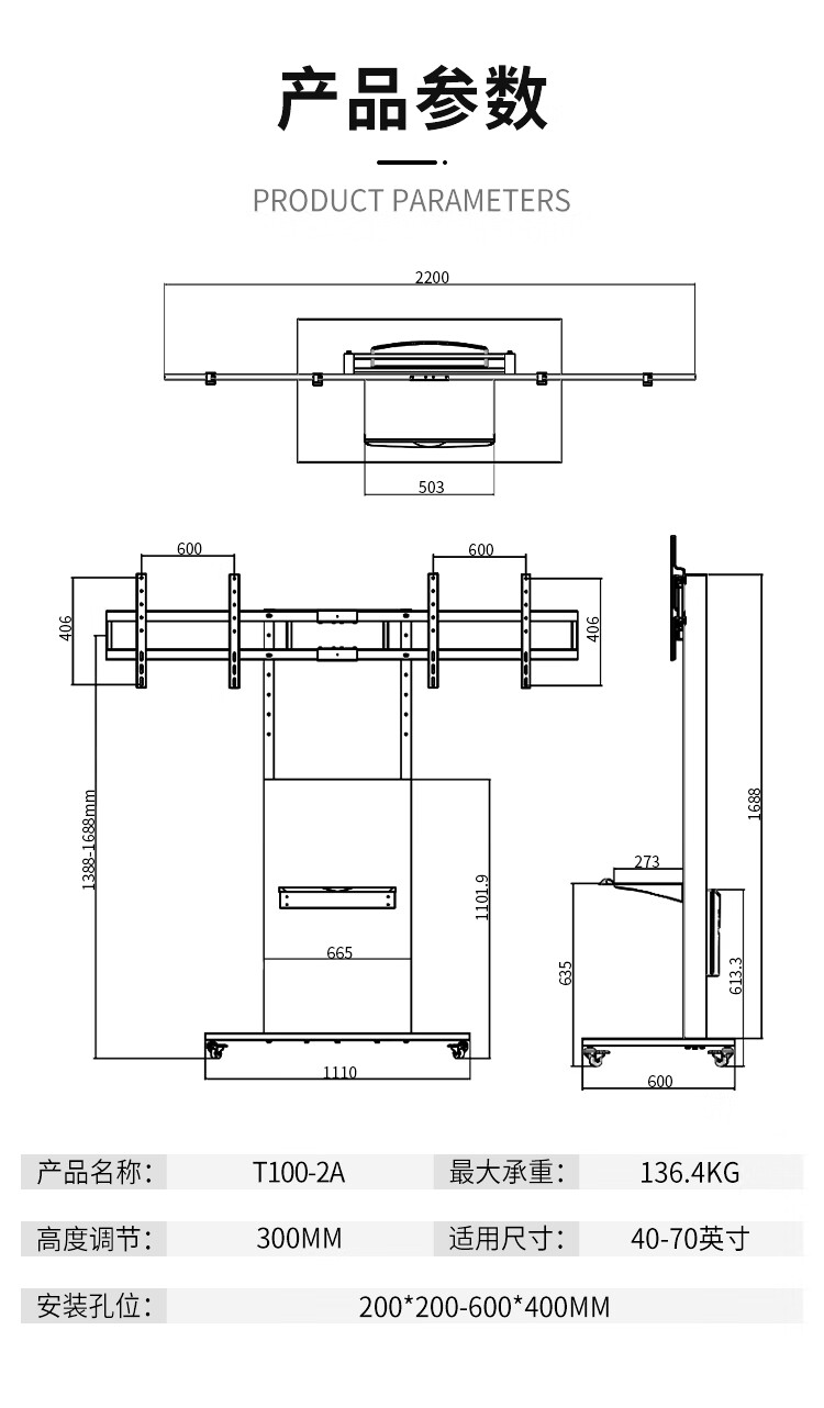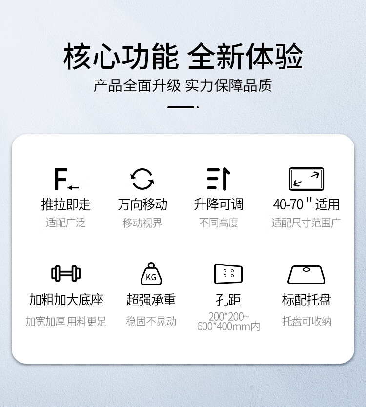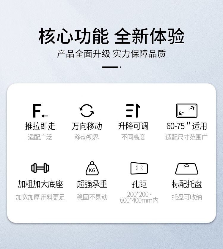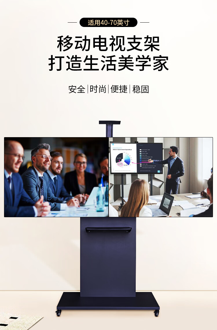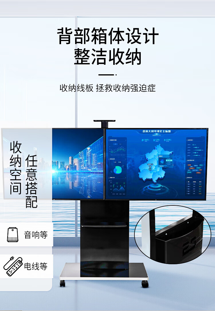 BIOOM MOUNT blooming 60-100-inch TV mobile stand video conferencing floor stand Xiaomi Hisense Skyworth TCL Huawei dual-screen TV floor cart large load-bearing can be lifted Piano Black T96 Universal 60-100 inches 136 kg load-bearing