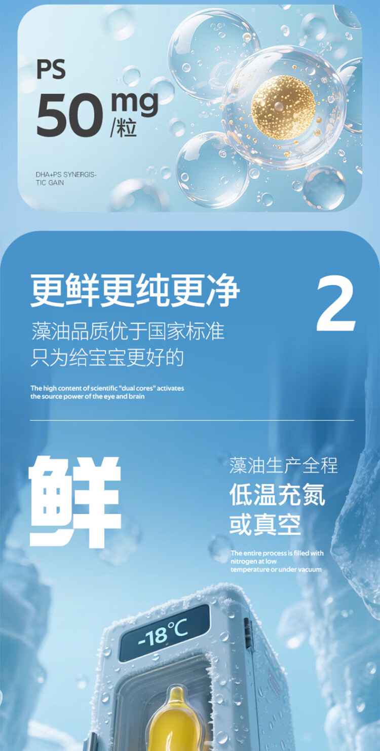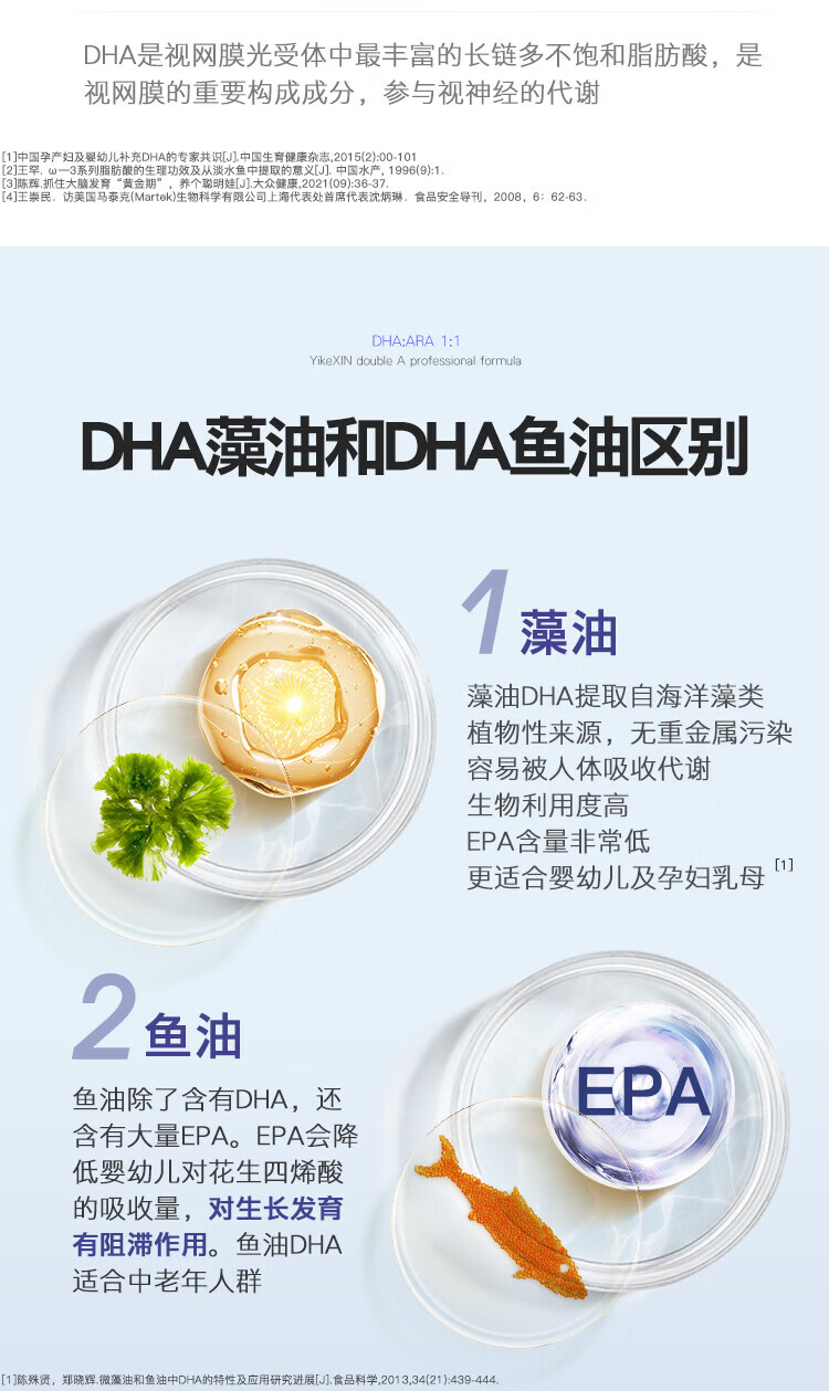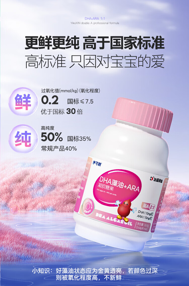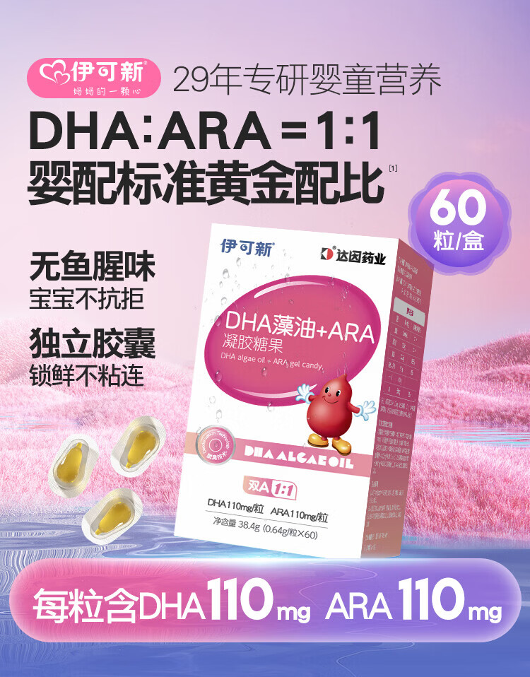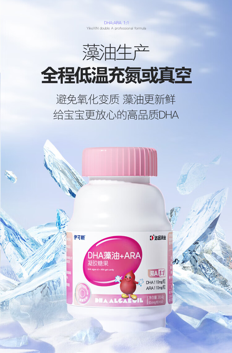 Ecoxin dha algae oil soft capsules, high purity and pure formula, no fishy smell, 0-3 years old, DHA+ARA 60 capsules*1 bottle