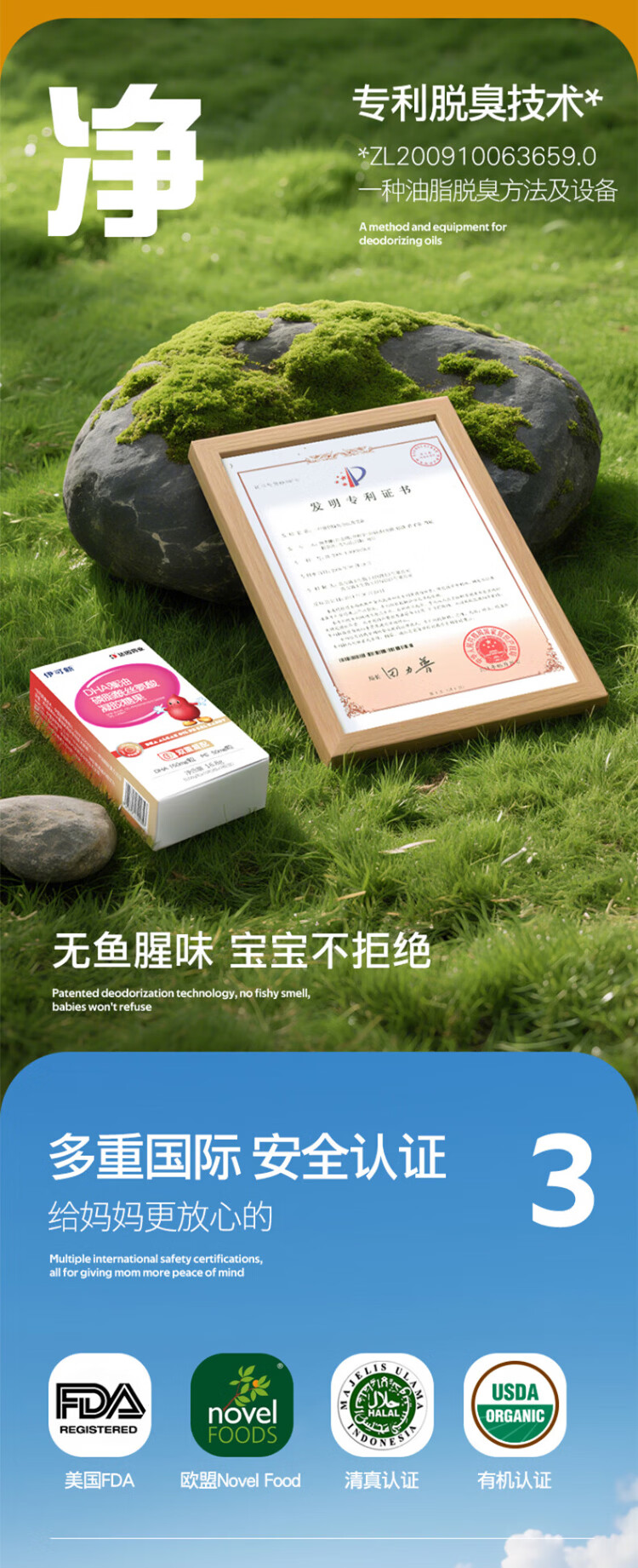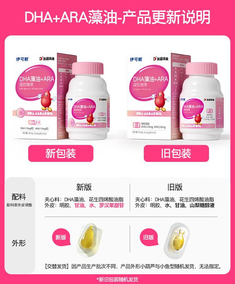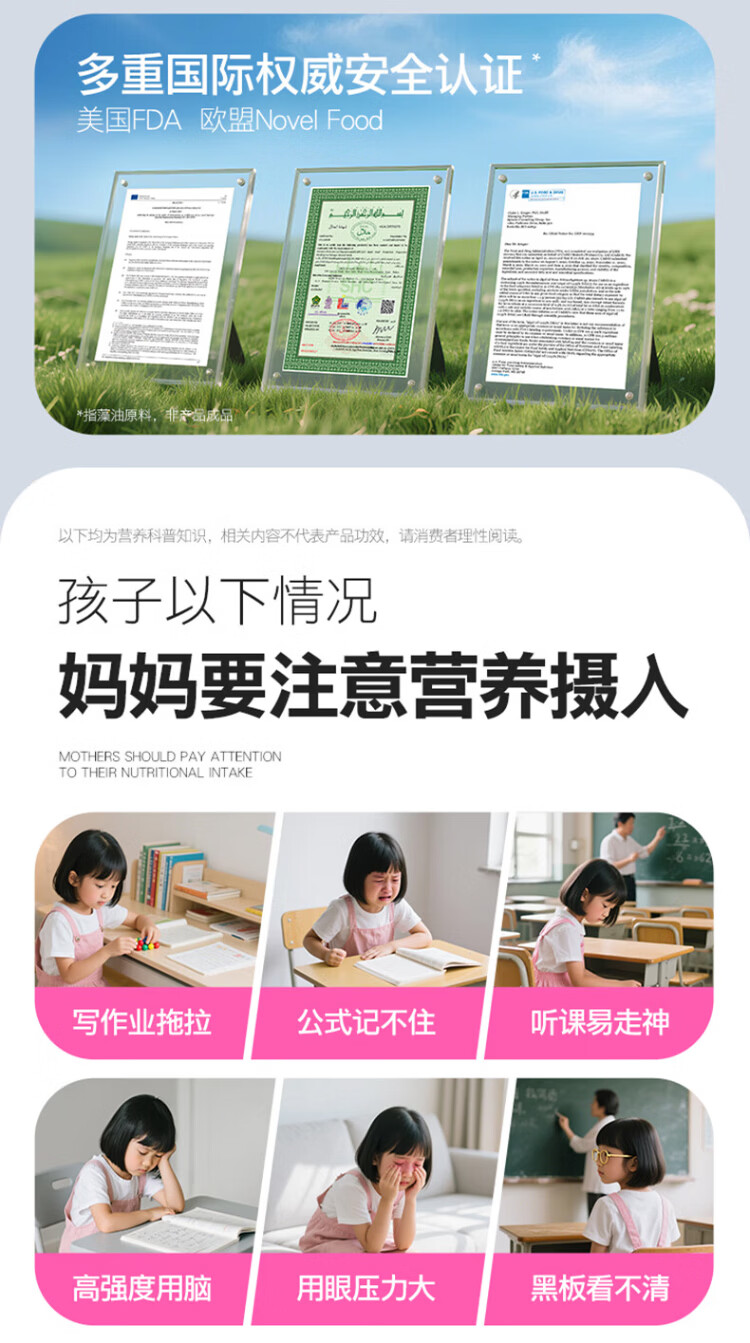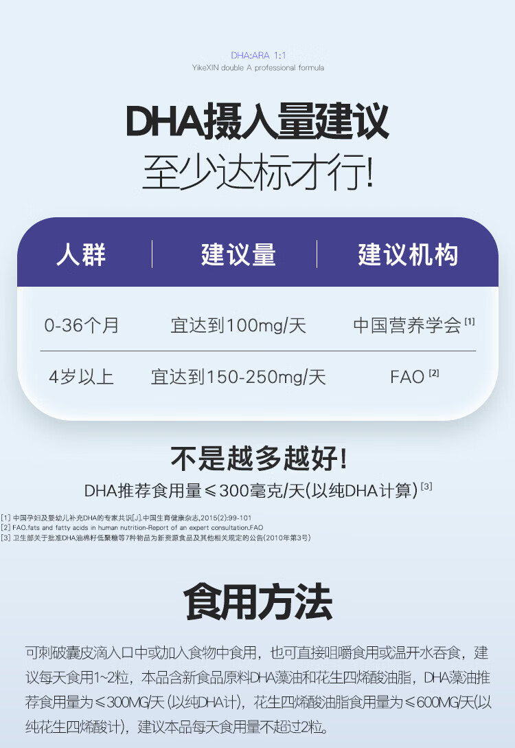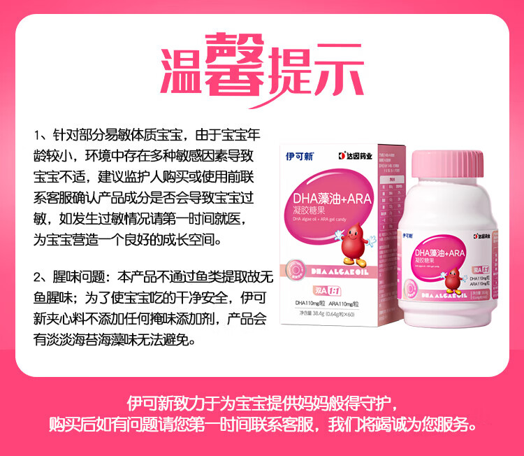 Ecoxin dha algae oil soft capsules, high purity and pure formula, no fishy smell, 0-3 years old, DHA+ARA 60 capsules*1 bottle