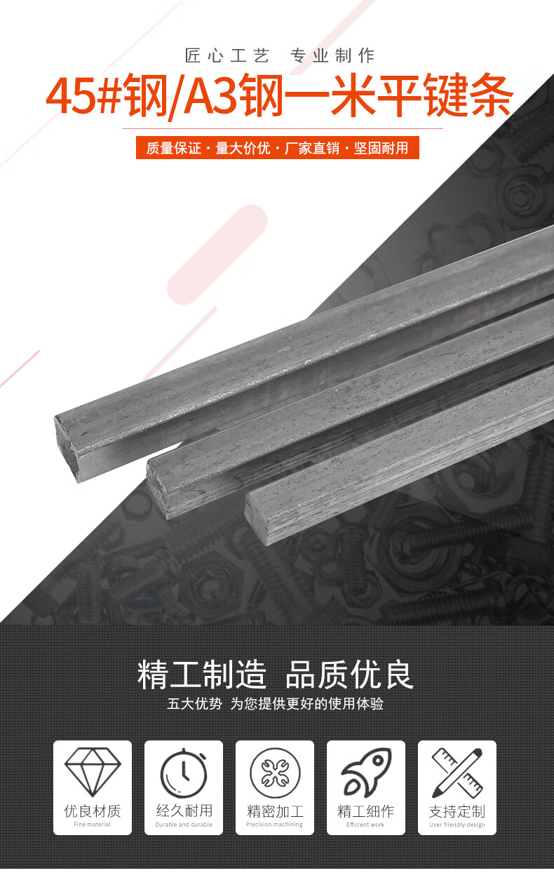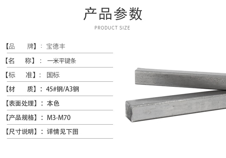 Baodefeng 45# steel 1 meter flat key bar steel flat key pin square key bar flat healthy bar square flat key shaft pin square material pin A3 A3 material 3x3 5 pieces