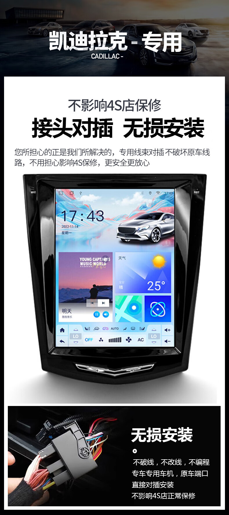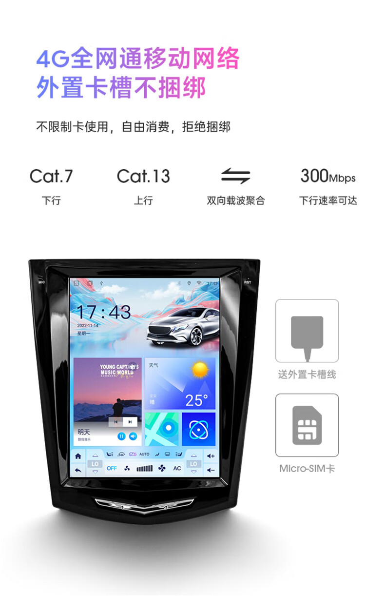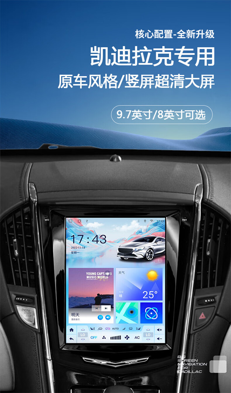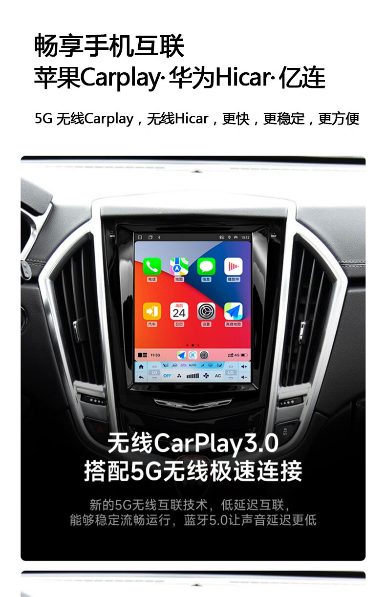 Hangmeng is suitable for Cadillac ATSL/XTS/SRX/SLS Escalade central control large screen navigation modified Carplay flagship 8-core 4+64G version + rear view + installation