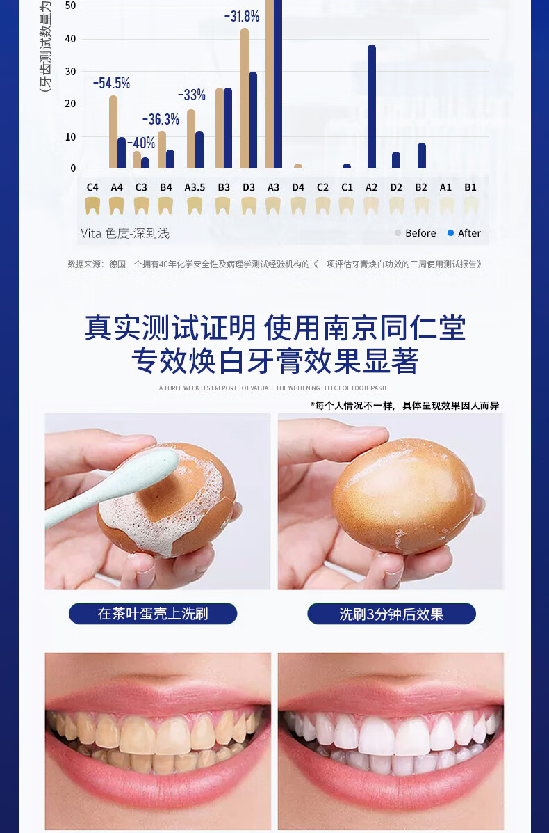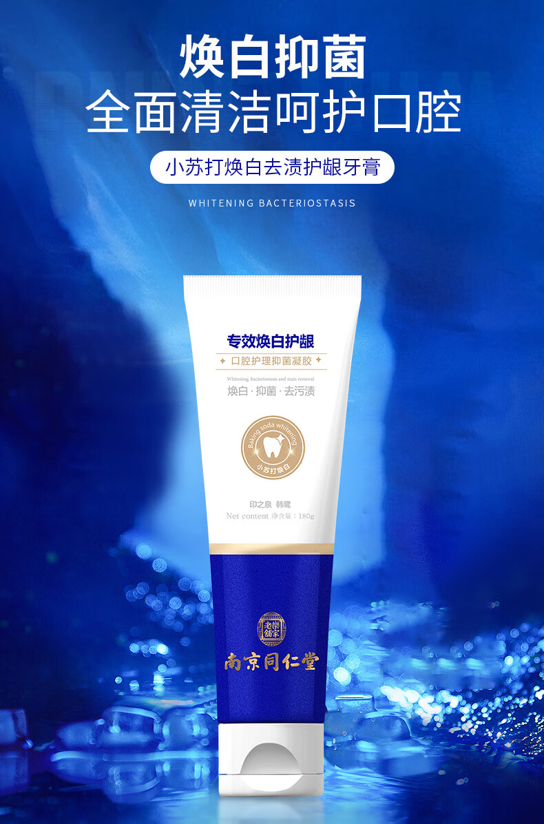 Nanjing Tong Ren Tang Baking Soda Whitening Toothpaste Removes Bad Breath, Removes Yellow Teeth Stains, Smoke Stains, Tartar and Stone, Oral Cleansing and Fresh Breath. Old Customer Repurchase Pack 180g*3 Boxes
