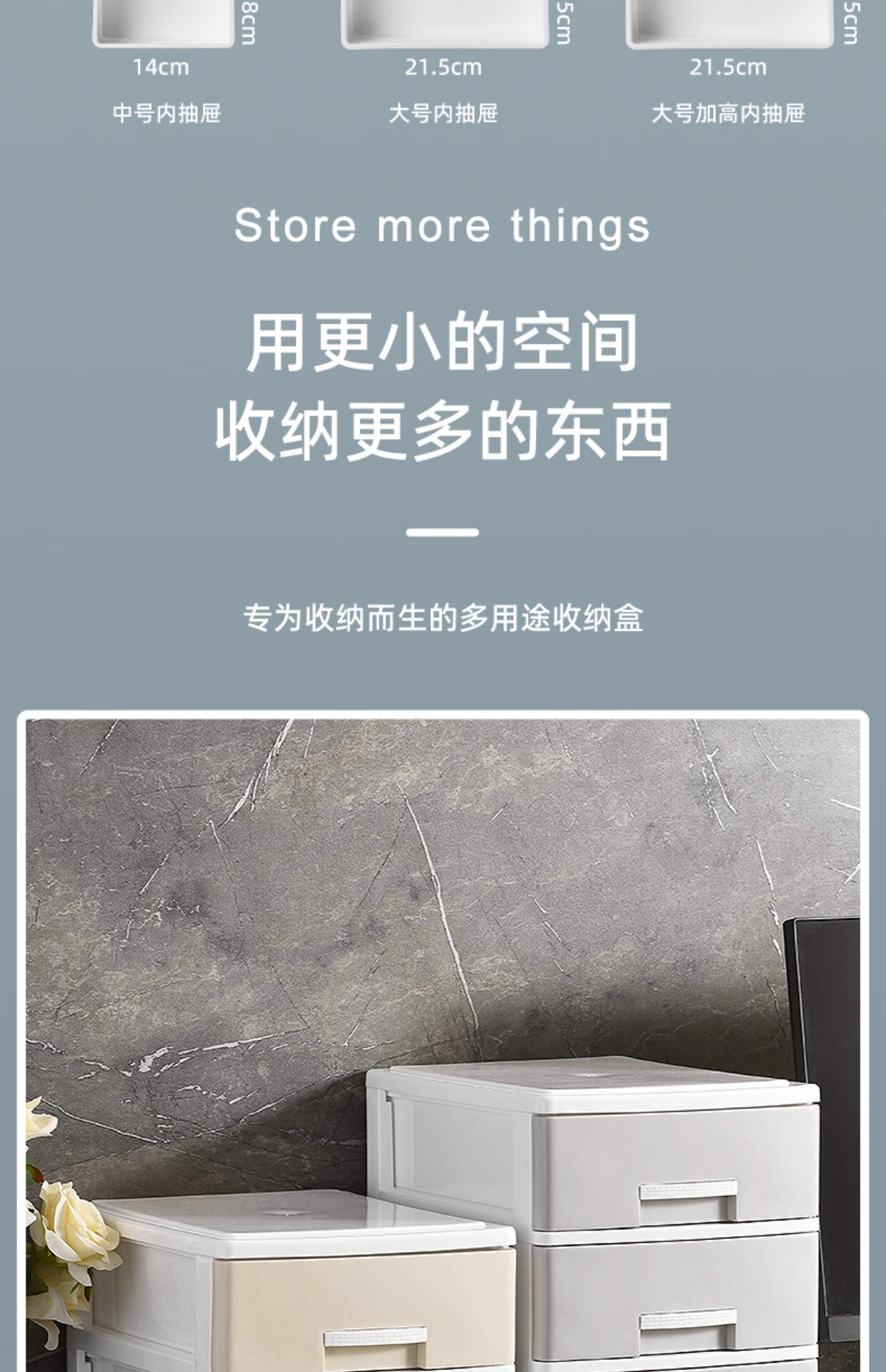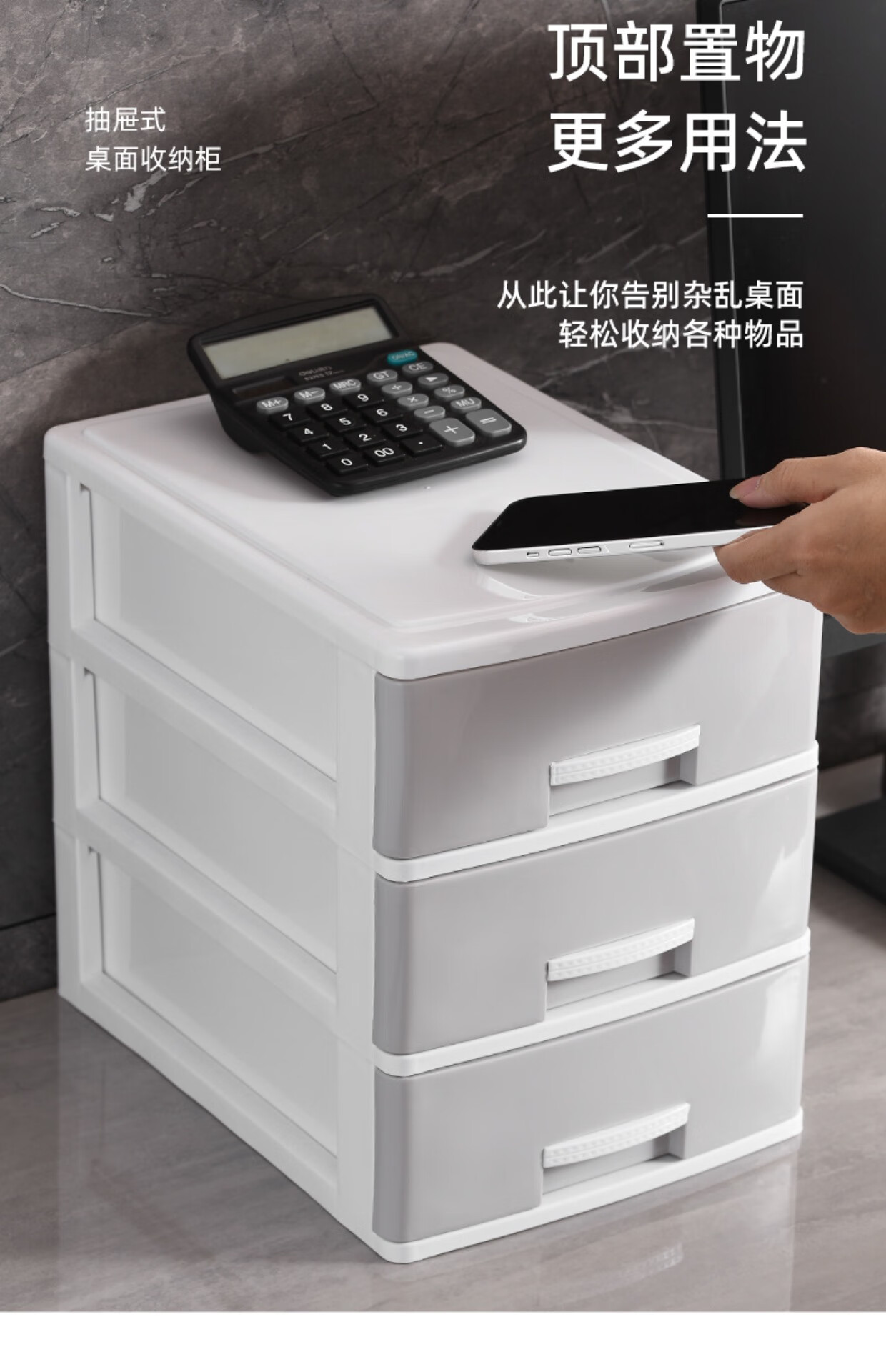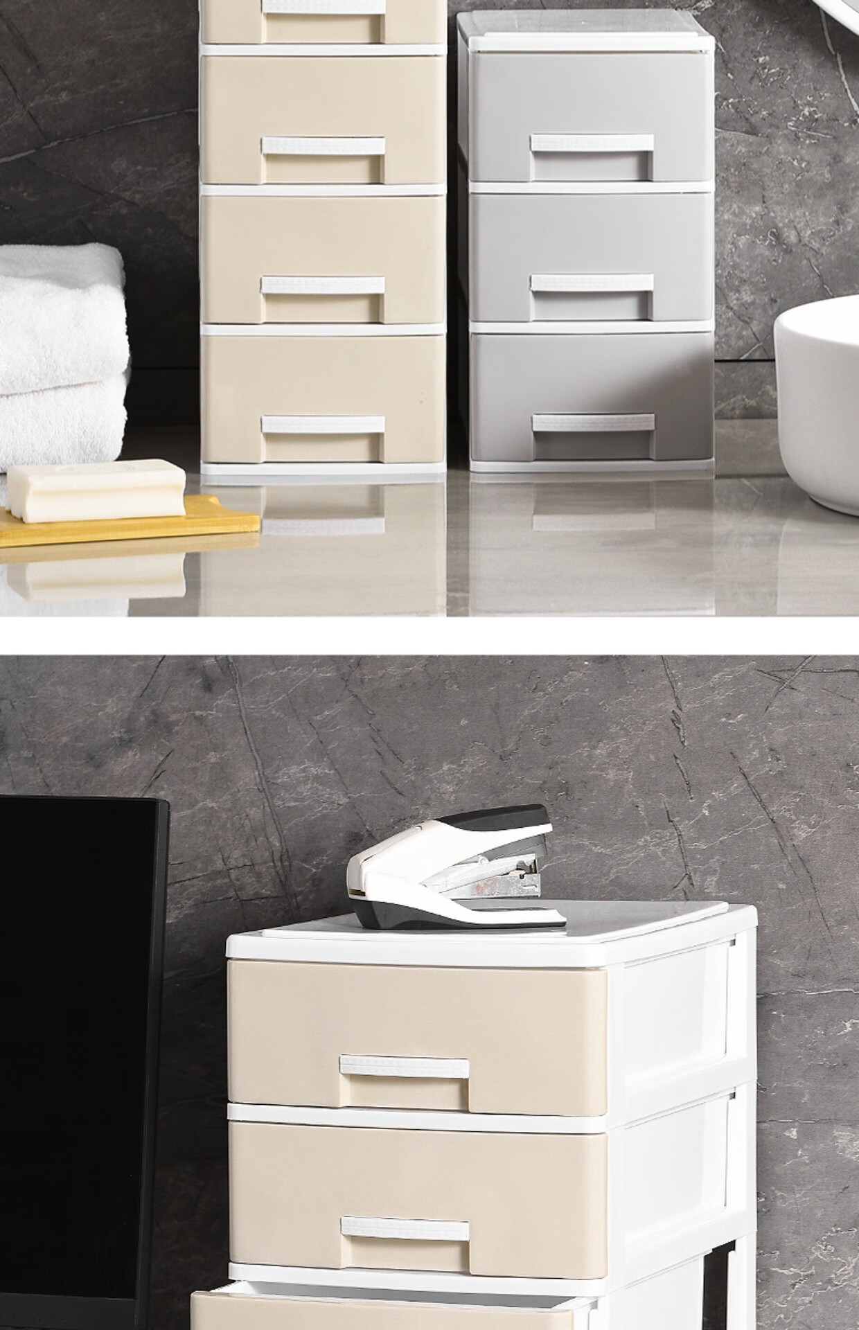 Kunfeng office desk storage box simple plastic small drawer-type storage cabinet desk student file miscellaneous storage box large-four layers smoke gray thickened and reinforced