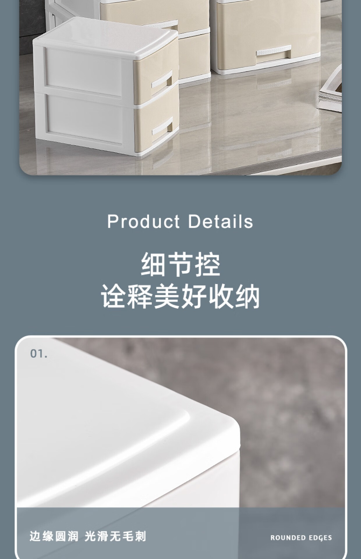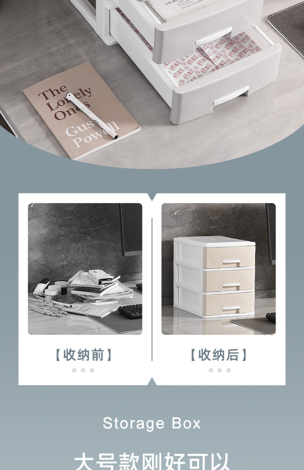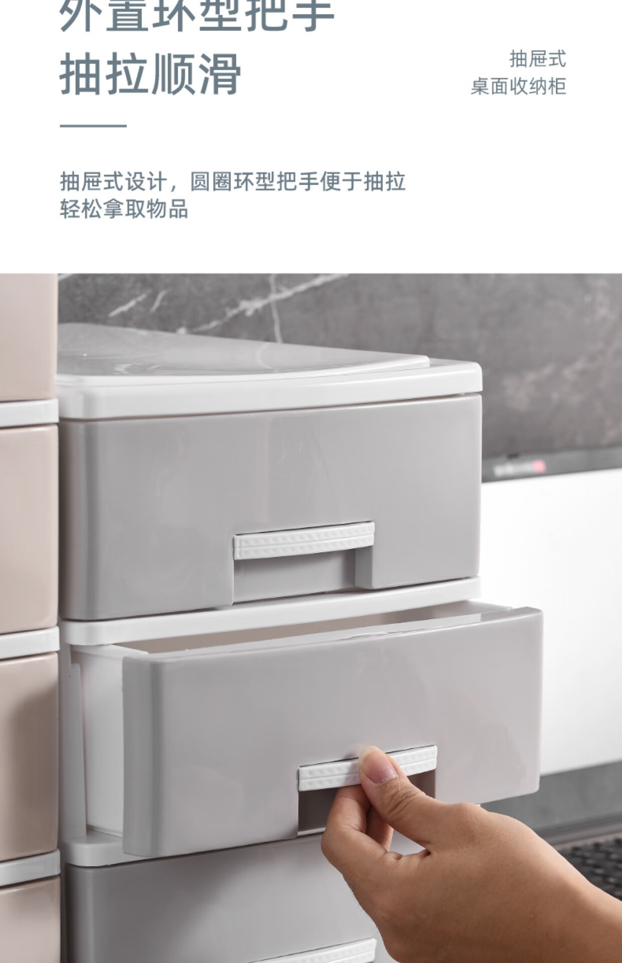 Kunfeng office desk storage box simple plastic small drawer-type storage cabinet desk student file miscellaneous storage box large-four layers smoke gray thickened and reinforced