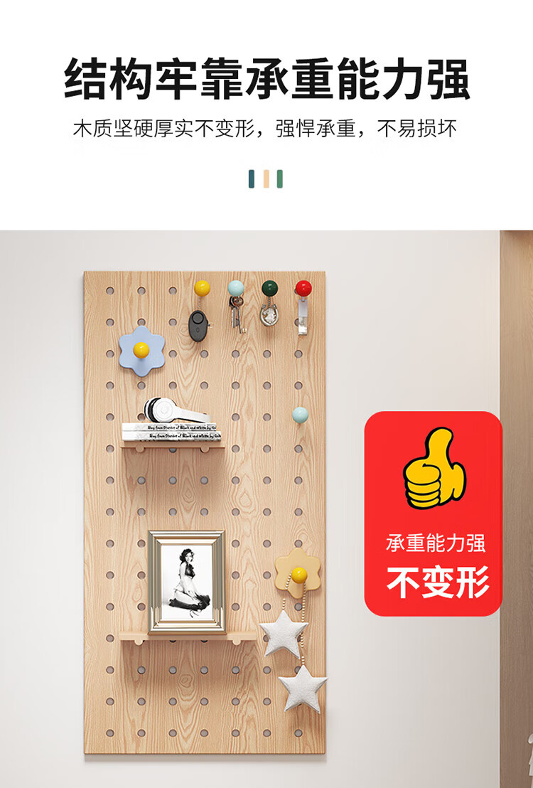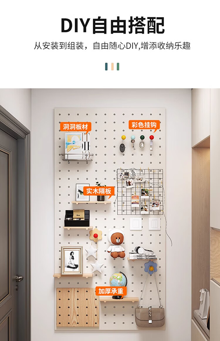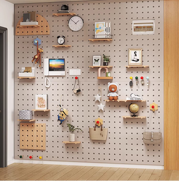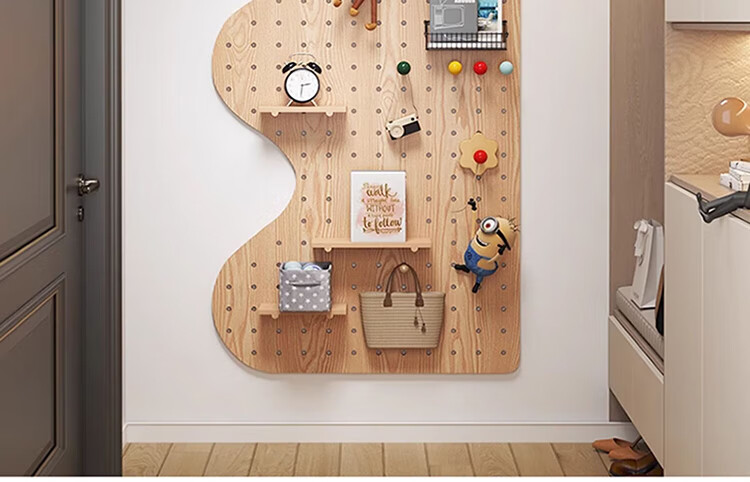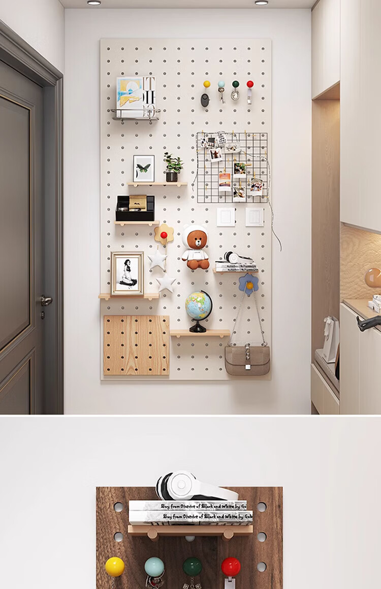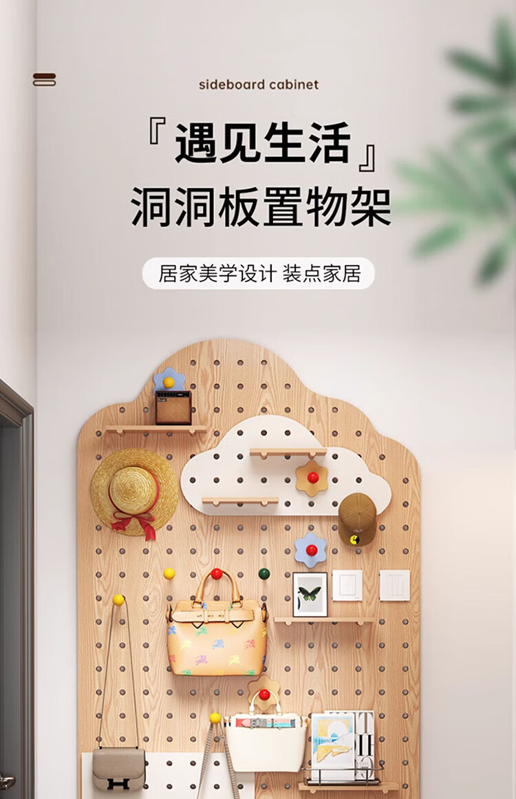 Musong hole board storage rack punch-free wall custom solid wood wall hanging board entry entrance partition accessories storage rack accessories small shelf 1 layer 20*10*1.2cm default