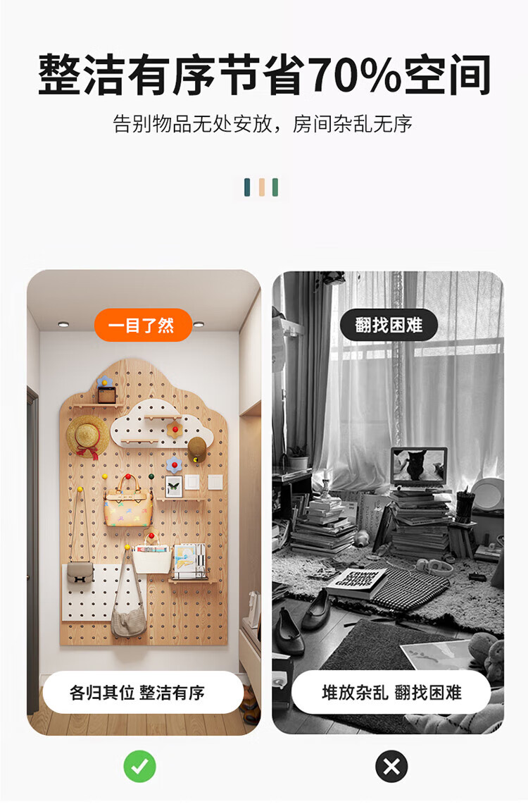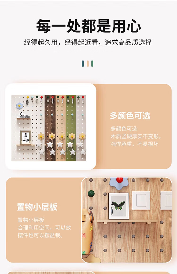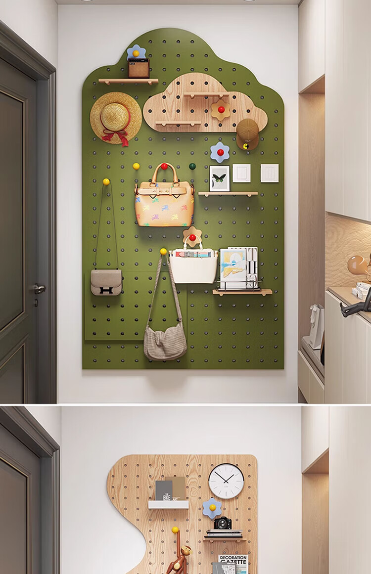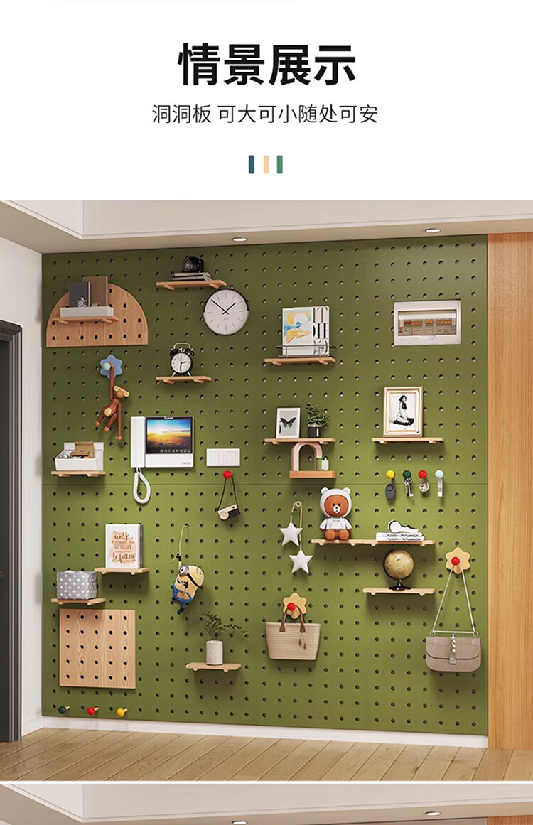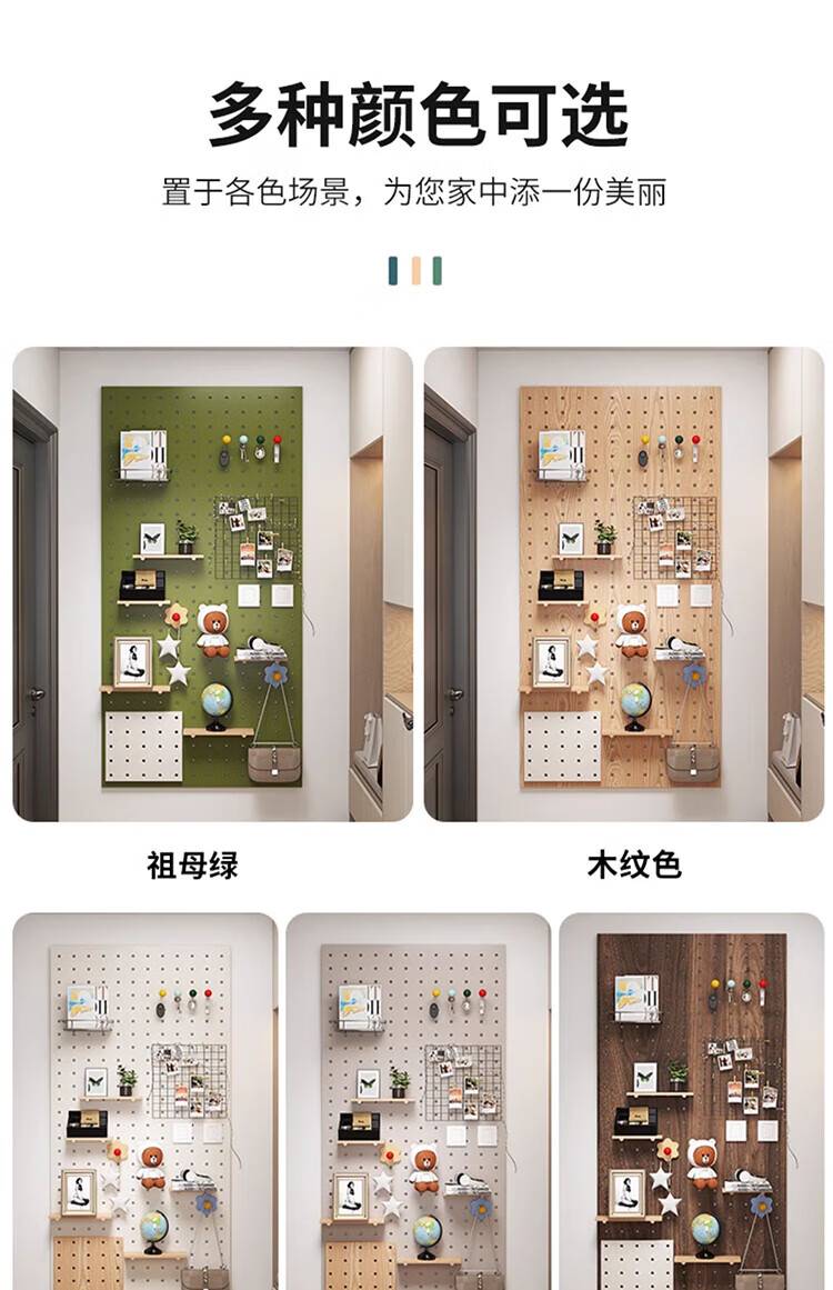 Musong hole board storage rack punch-free wall custom solid wood wall hanging board entry entrance partition accessories storage rack accessories small shelf 1 layer 20*10*1.2cm default