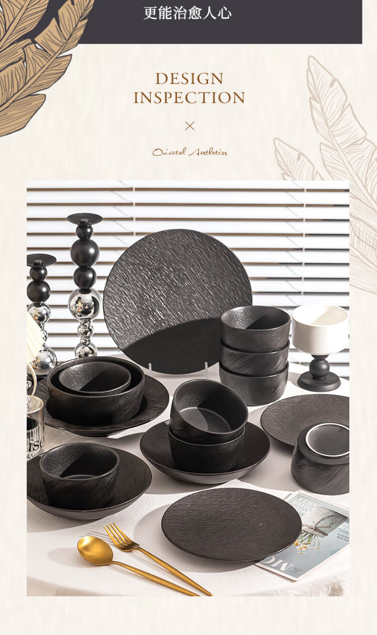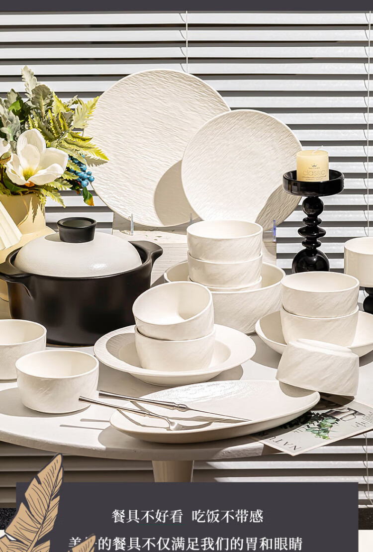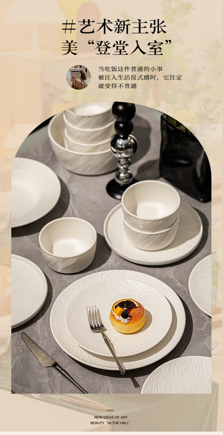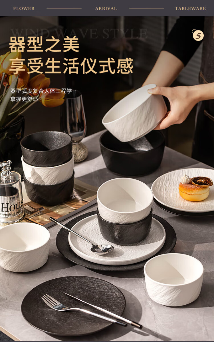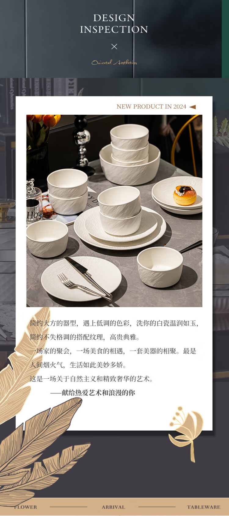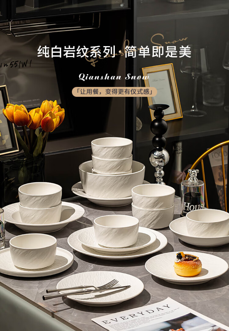 Shengxi bowls and plates tableware pure white rock pattern underglaze color tableware complete set of ceramic bowl set bowls and dishes bowls and chopsticks set for housewarming 10 people with soup bowl gift box set 42 pieces