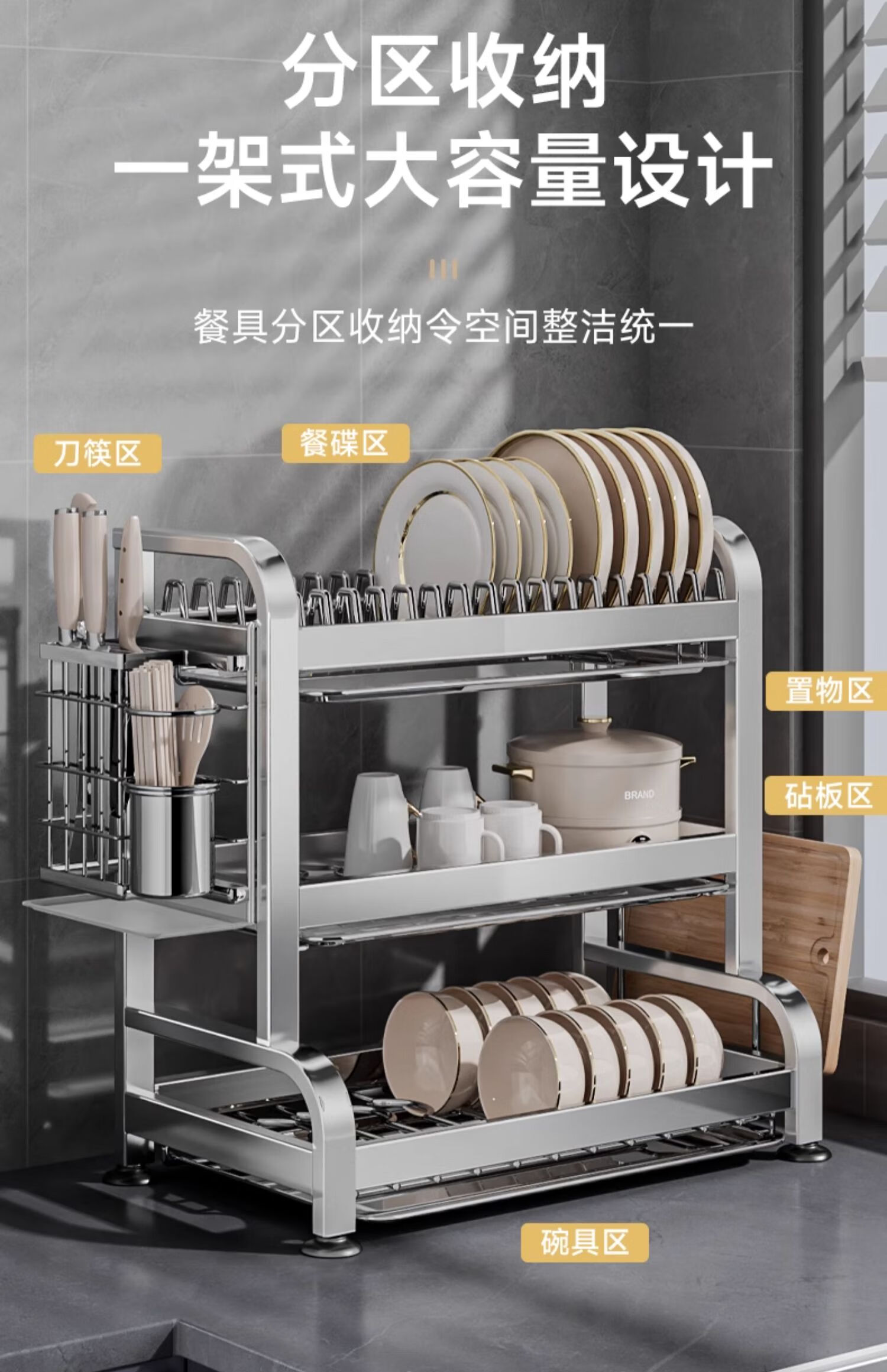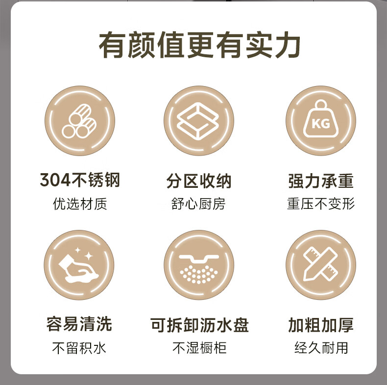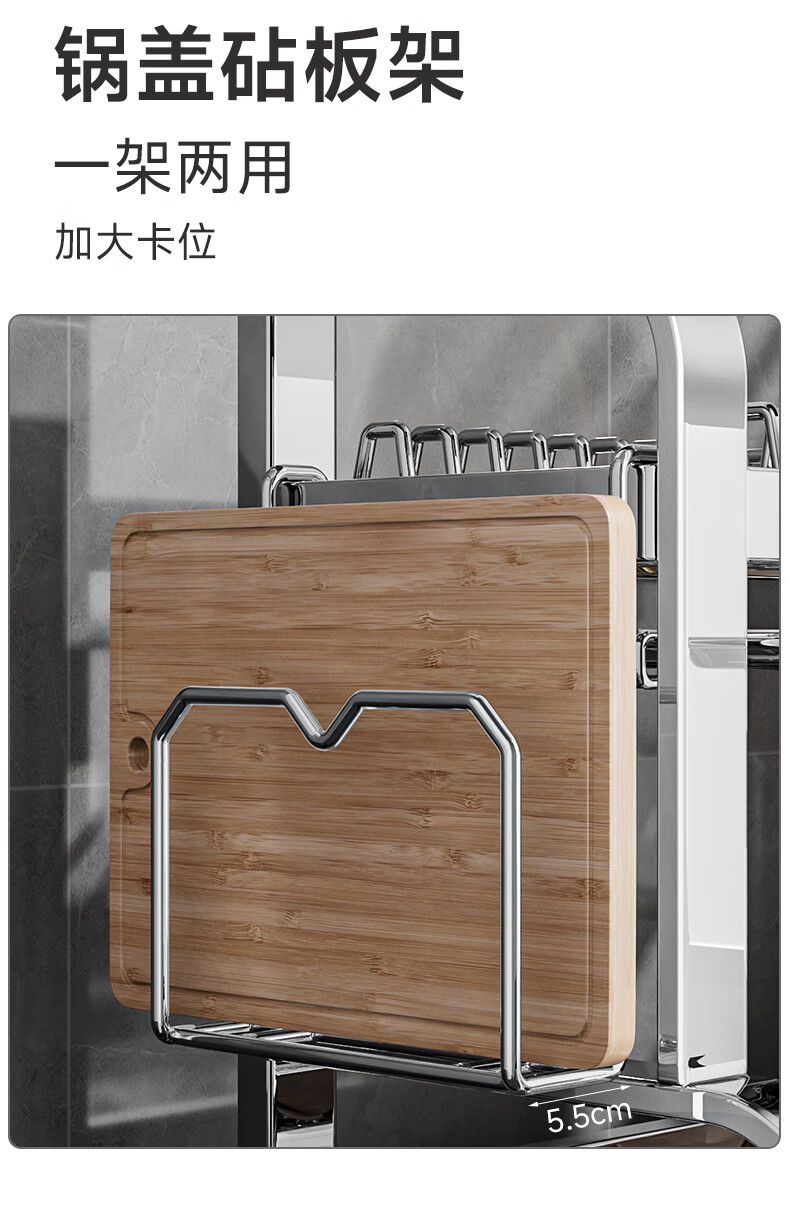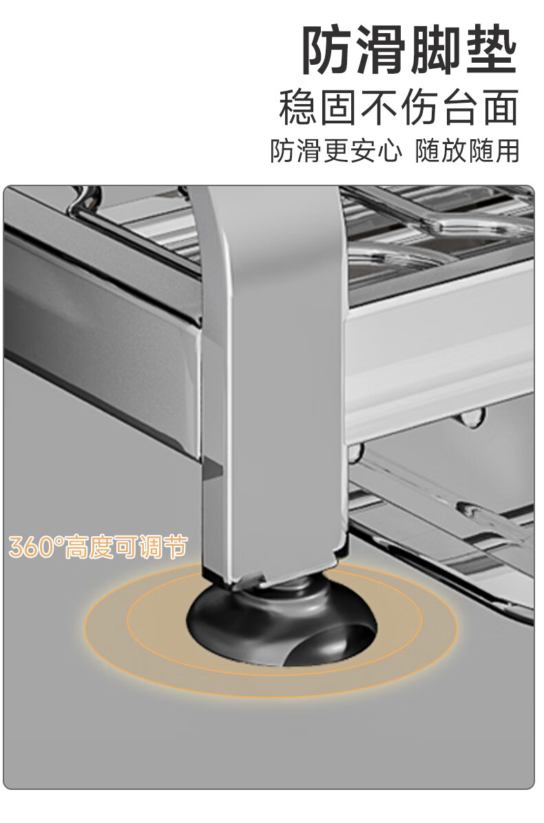 Submarine 304 stainless steel kitchen rack dishware drainer household multi-functional dish rack dishware storage cupboard B8 304 gun gray three-layer 50CM + fully equipped