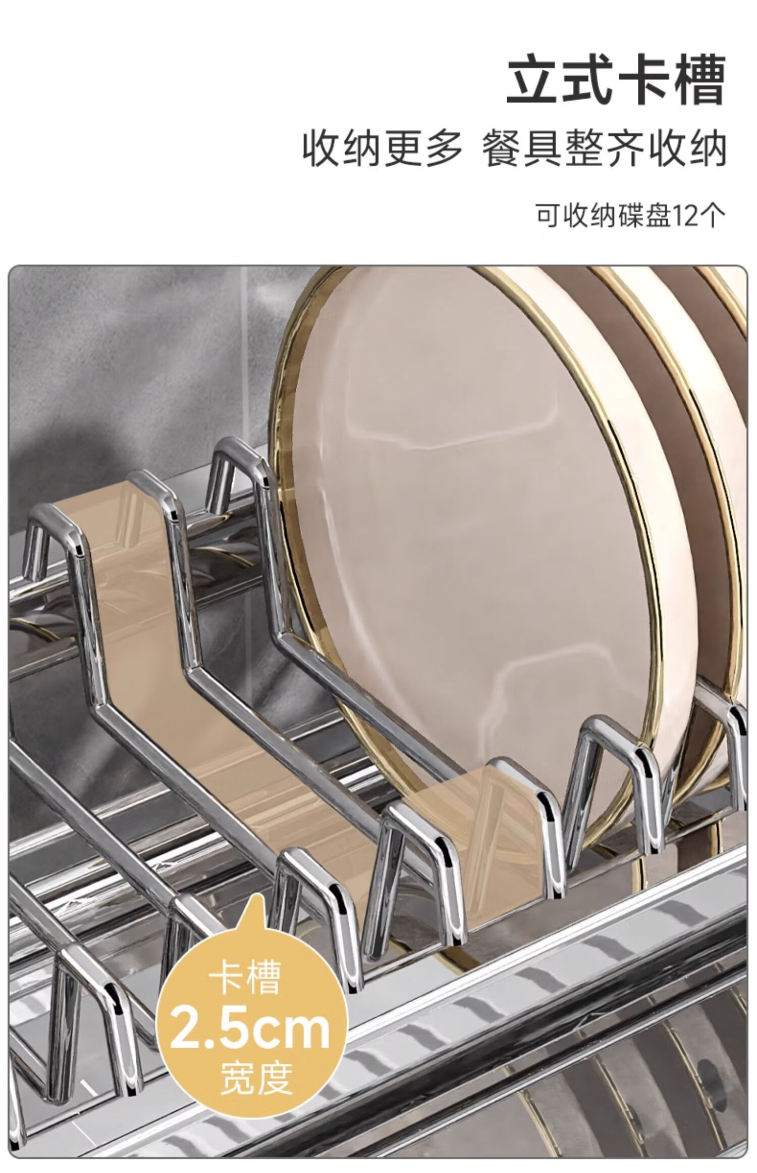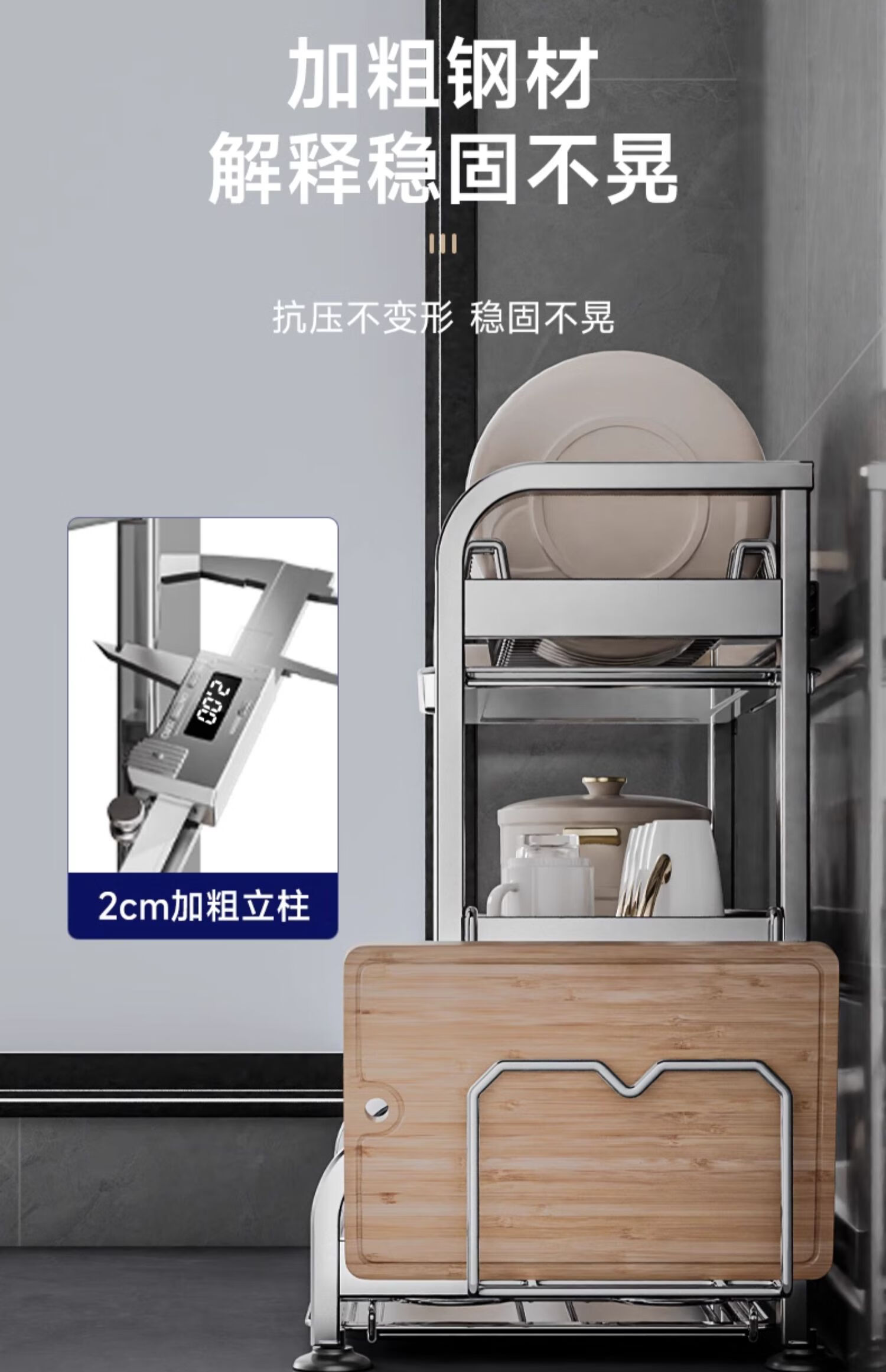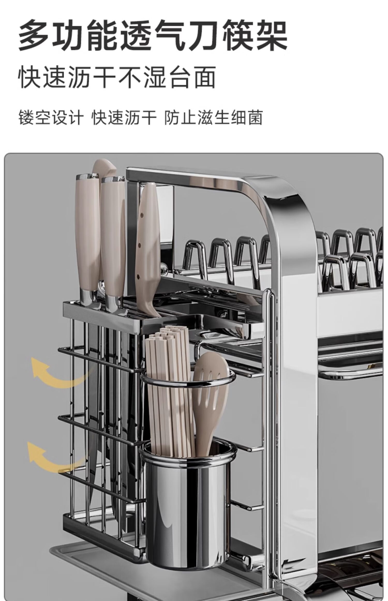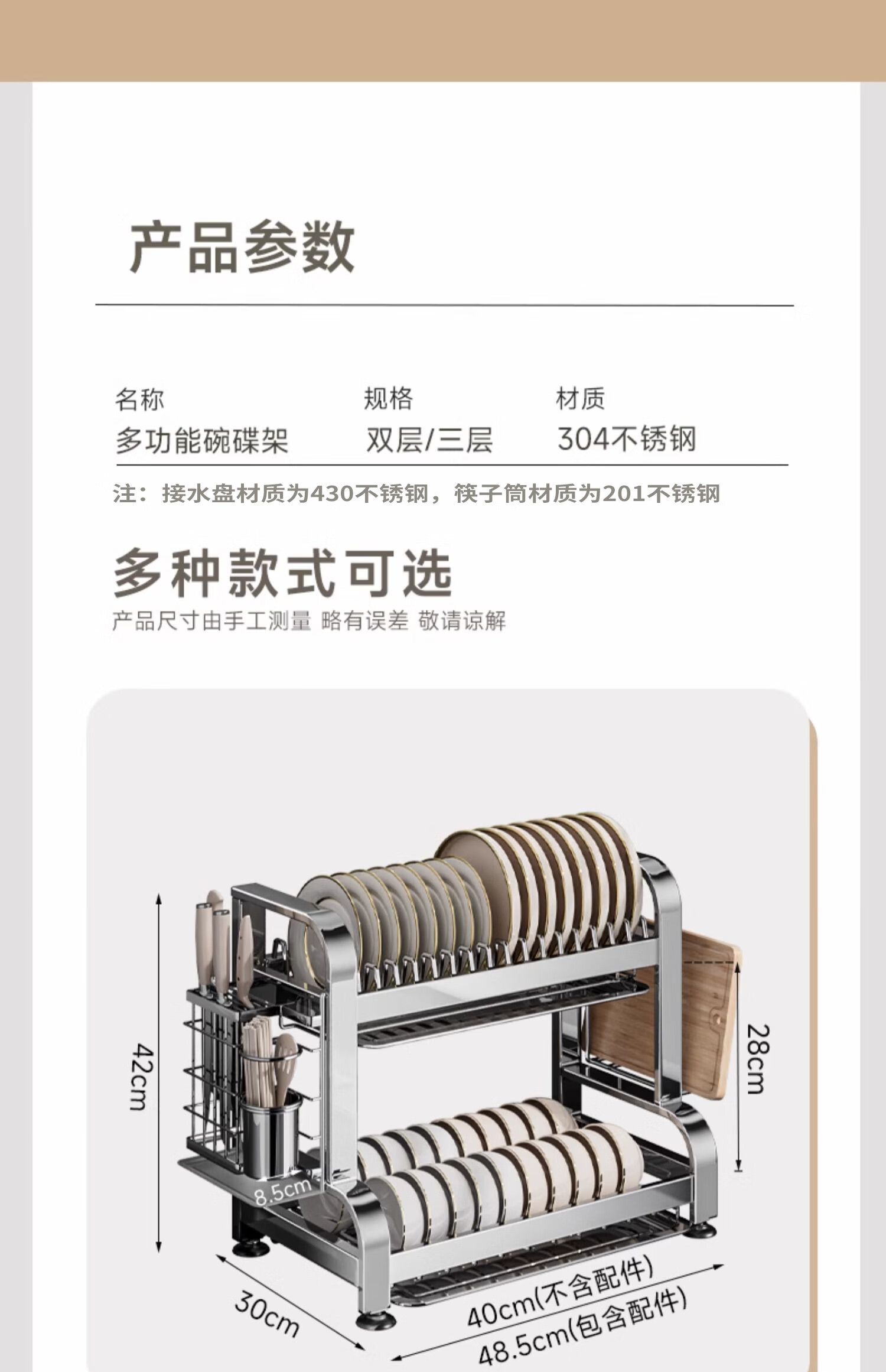 Submarine 304 stainless steel kitchen rack dishware drainer household multi-functional dish rack dishware storage cupboard B8 304 gun gray three-layer 50CM + fully equipped