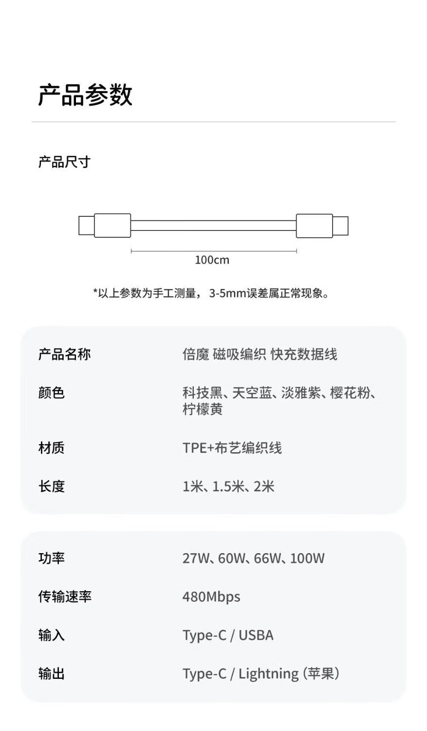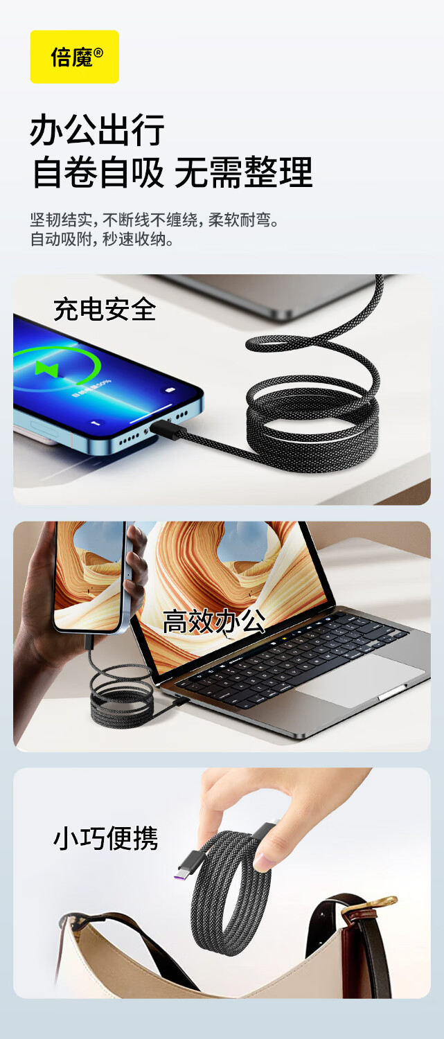 Magic magnetic absorption nano data cable fast charging mobile phone tablet data cable braided cable suitable for Apple Huawei TypeC to Lighting Apple interface