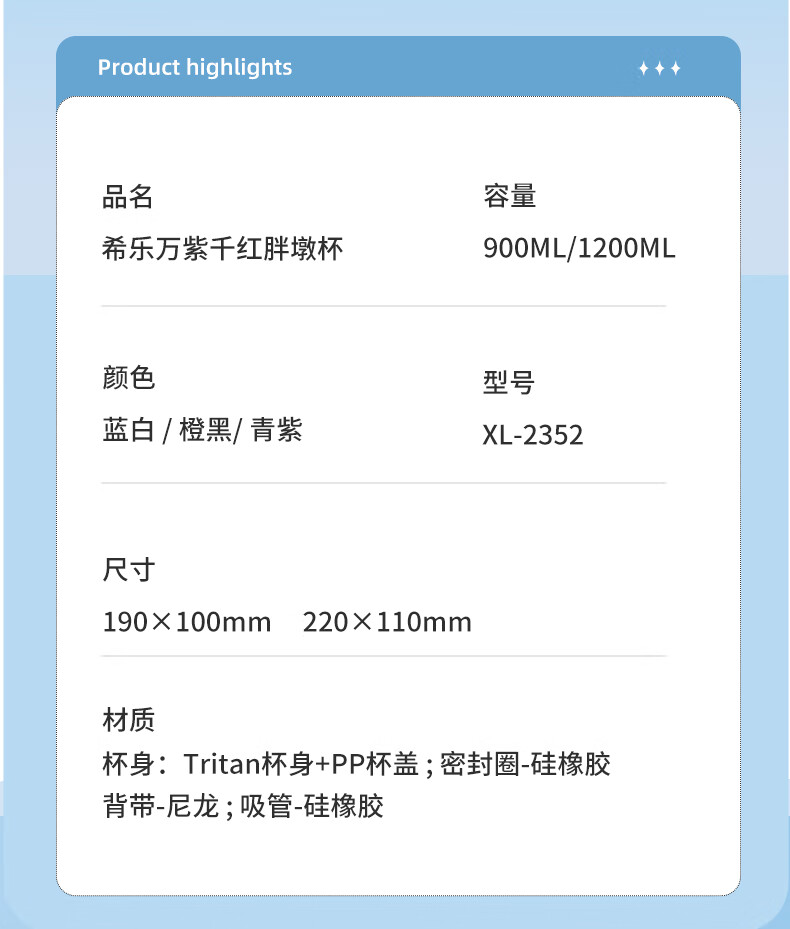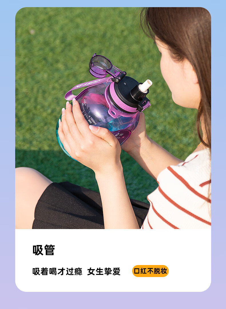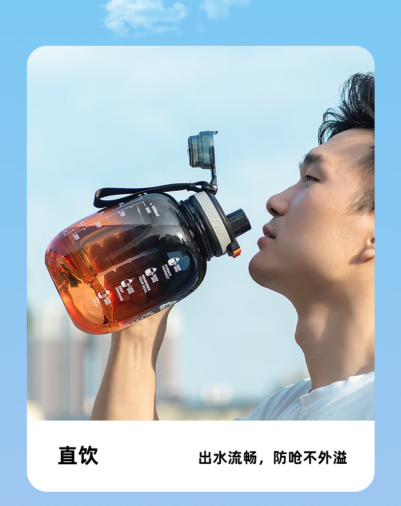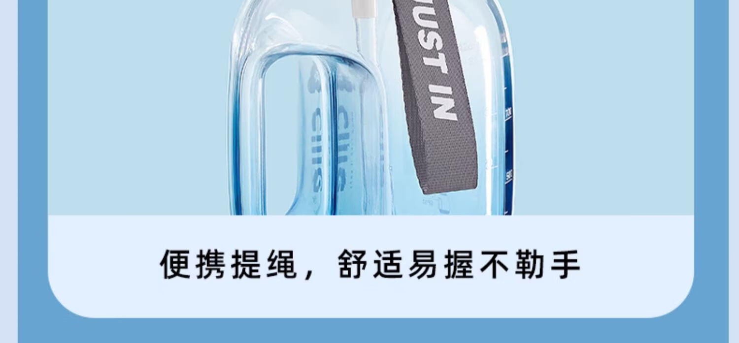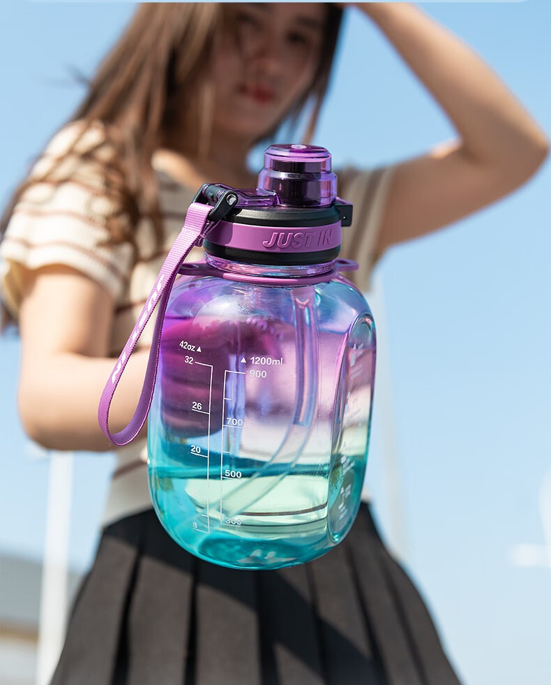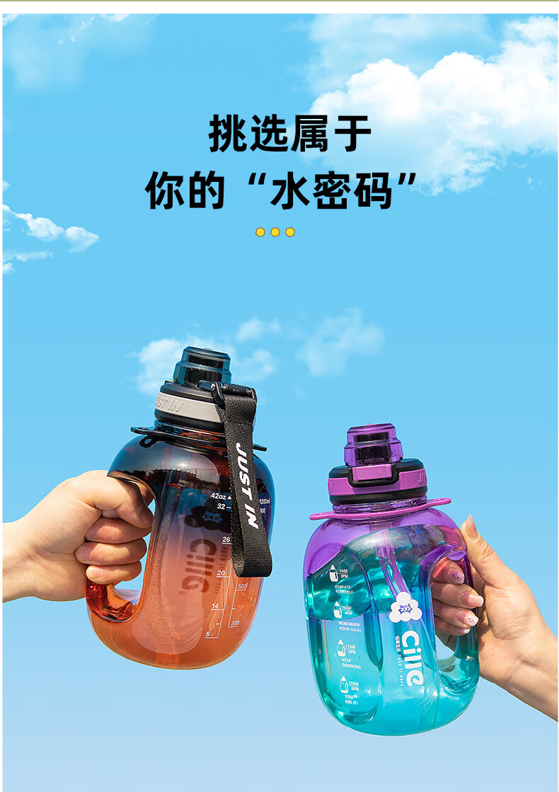 Xile large-capacity water cup for girls, high-looking sports water for men, summer fitness, high-temperature-resistant bucket, 1200ml, blue and white