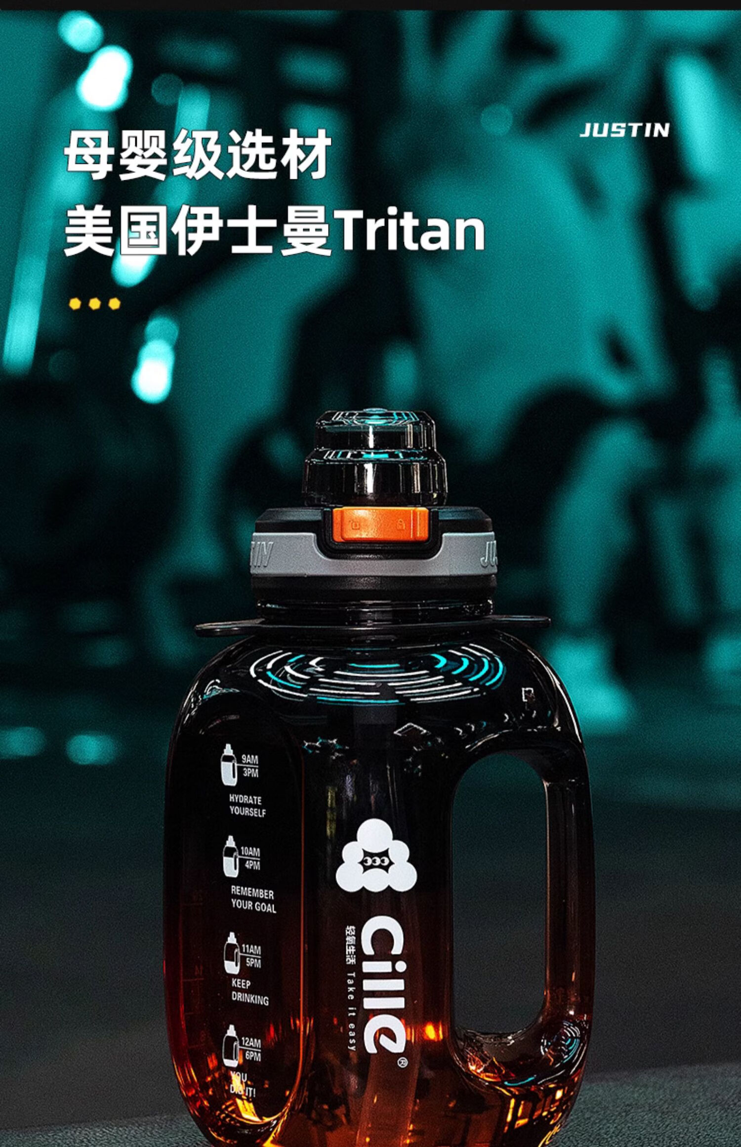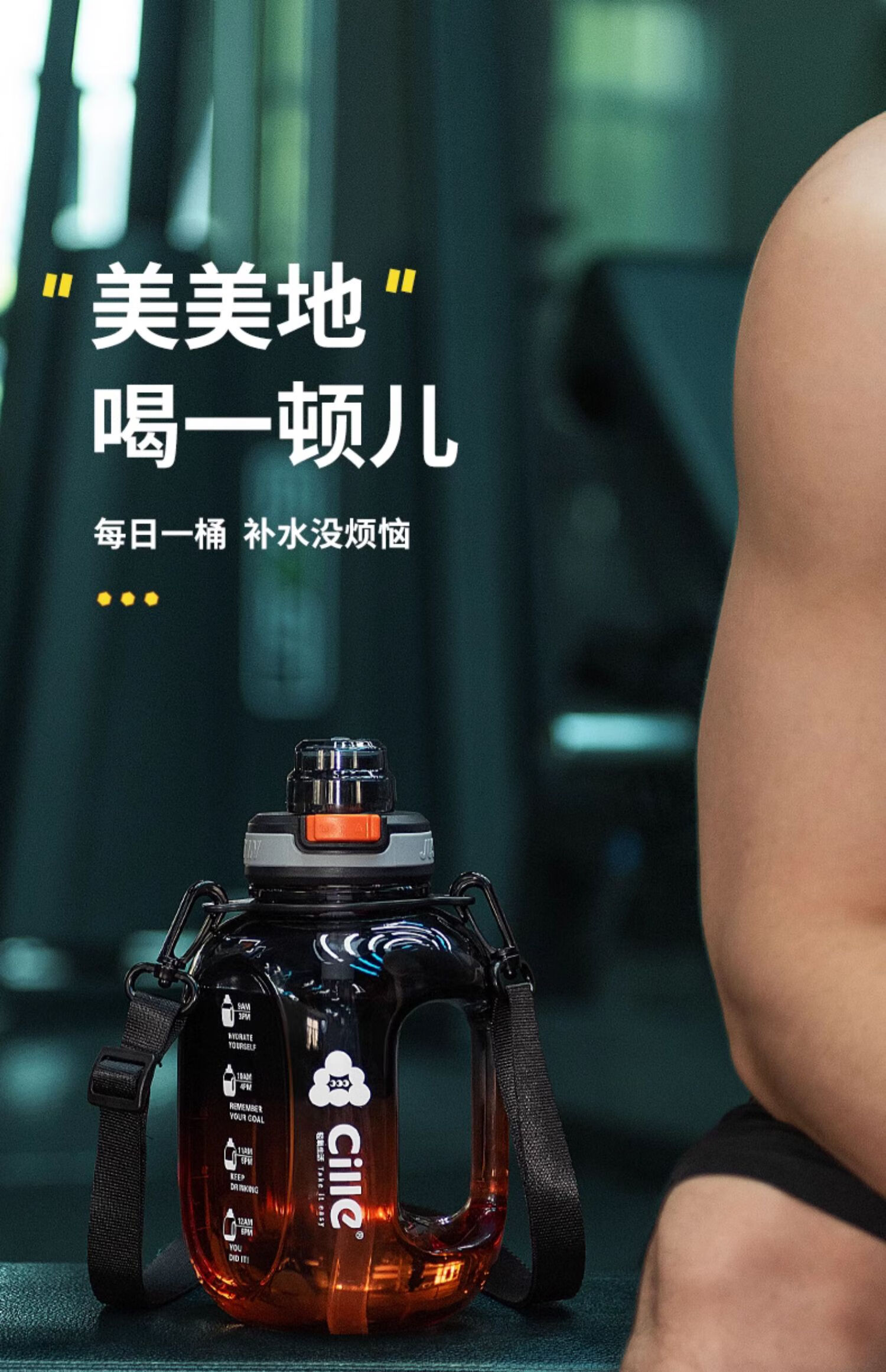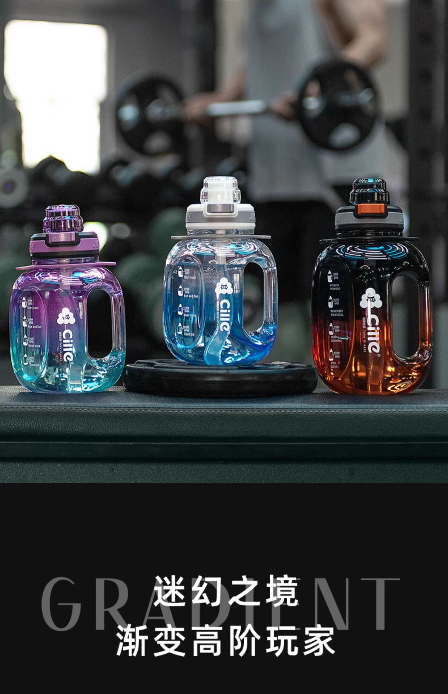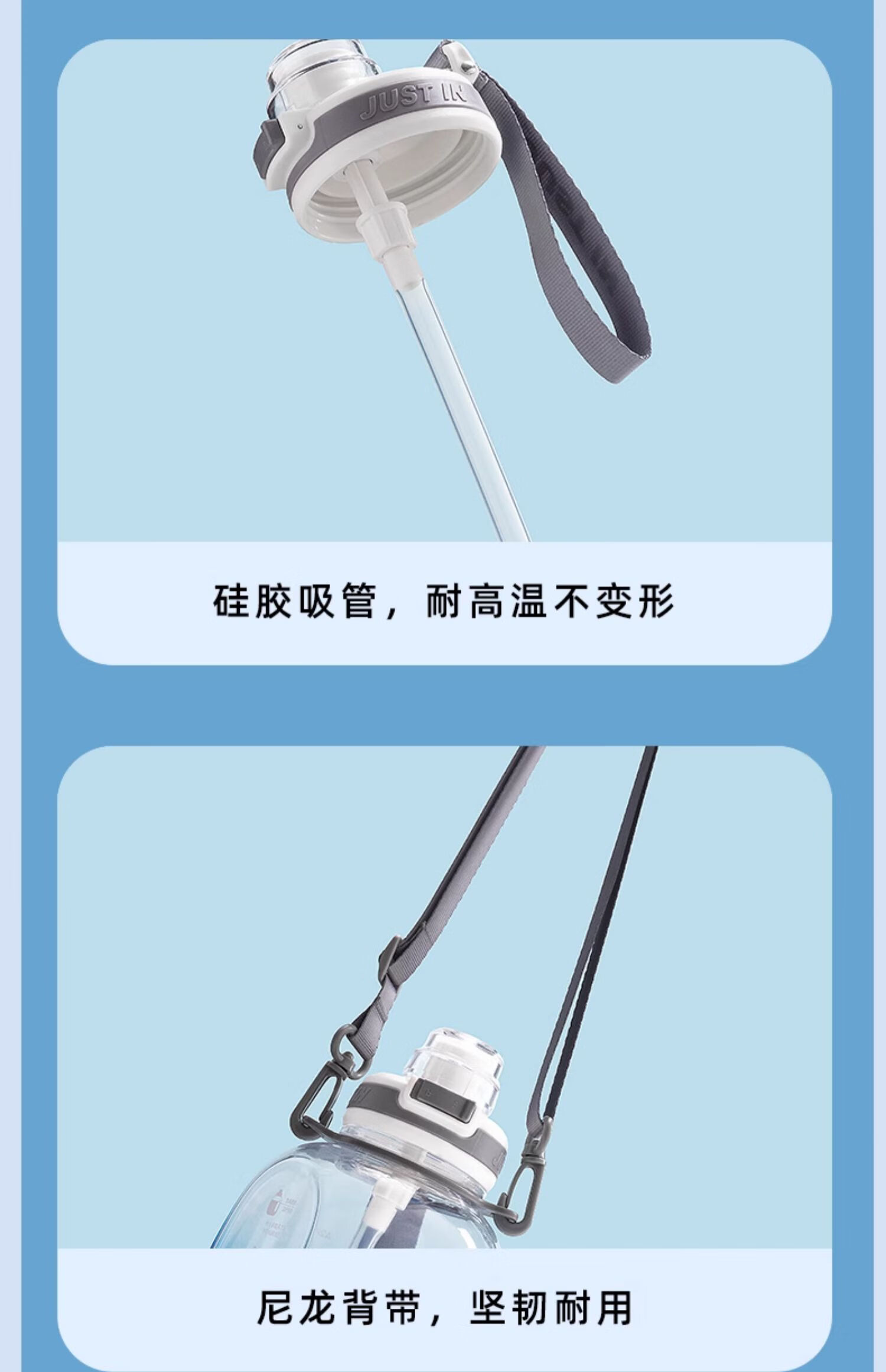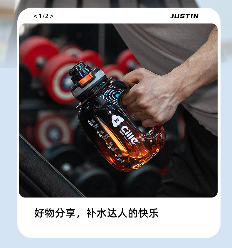 Xile large-capacity water cup for girls, high-looking sports water for men, summer fitness, high-temperature-resistant bucket, 1200ml, blue and white