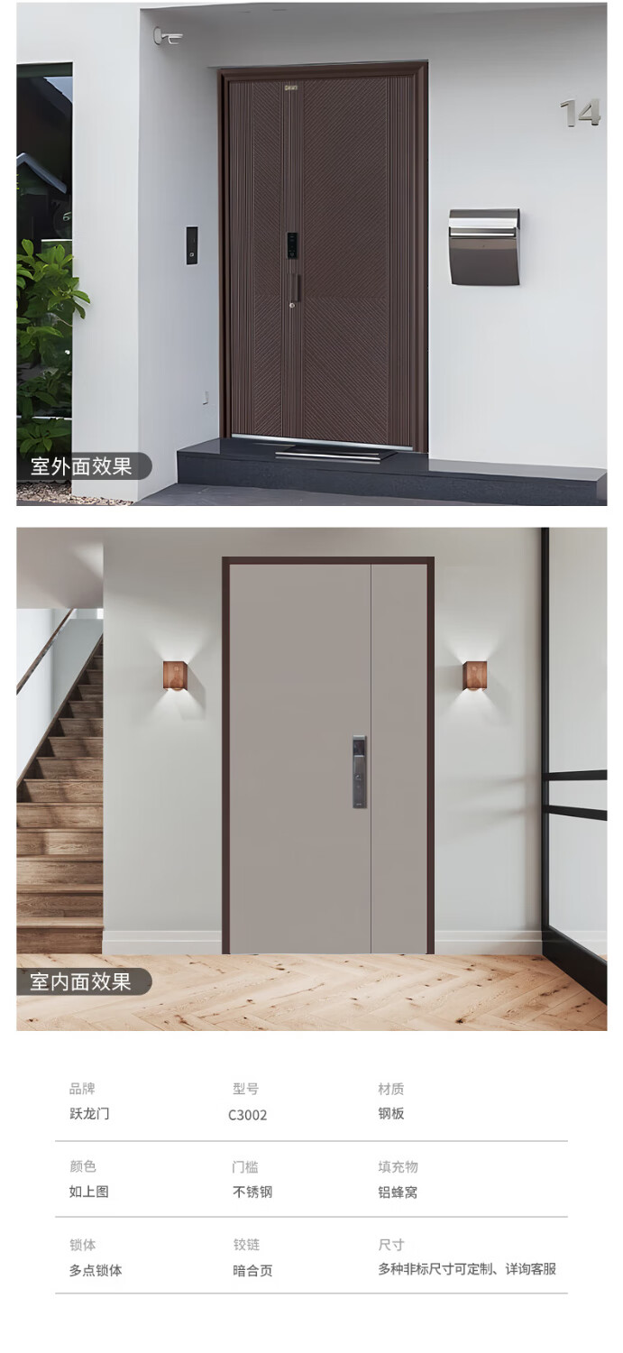 Yuelongmen Class A fingerprint password lock anti-theft door entrance door entrance door custom letter double opening C3002 non-standard custom size please contact customer service