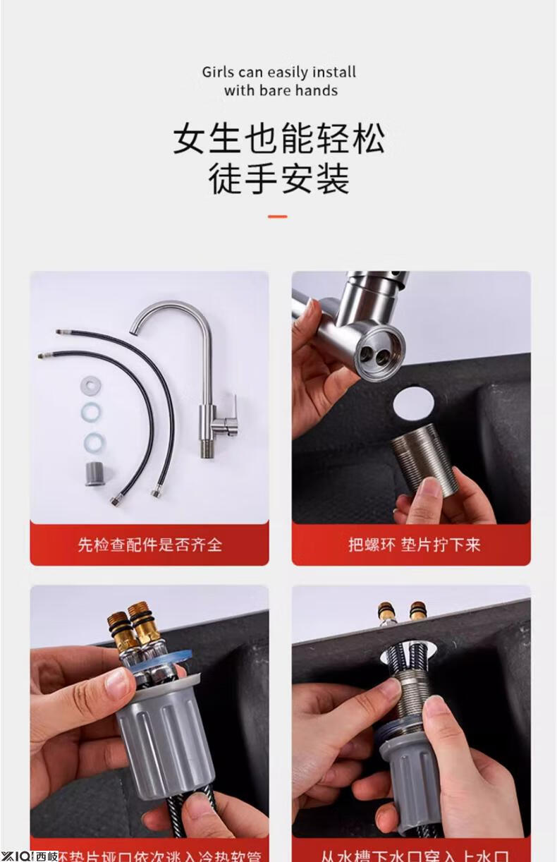 Xiqifang faucet hot and cold sink stainless steel sink anti-splash wash basin dishwashing single cold rotating household single cold discount 304 large curved faucet
