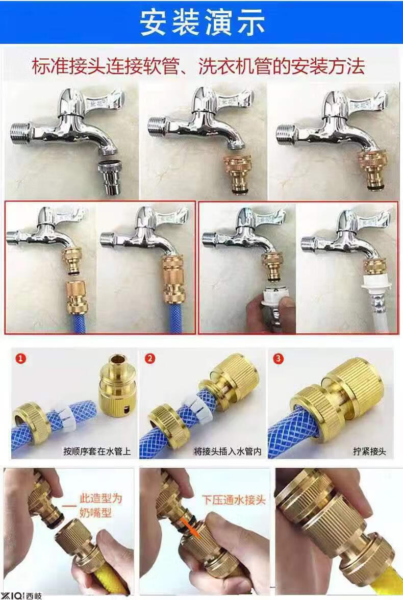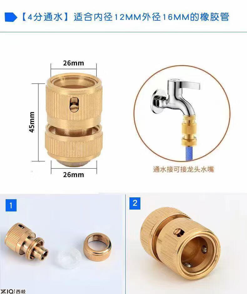 Xiqi faucet quick connector four-point six-point water pipe all-copper water quick-connect car wash hose copper nipple quick-connect 4-point water pipe quick connect copper
