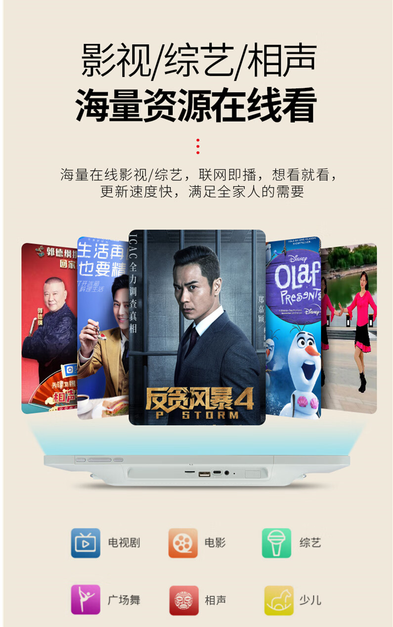 Jinzheng elderly theater machine singing square dance portable mobile wifi small TV multi-functional network video player 19 network touch version large volume ultra-clear screen standard