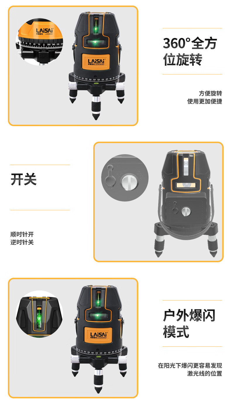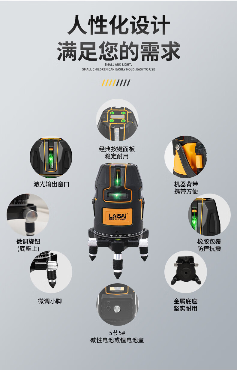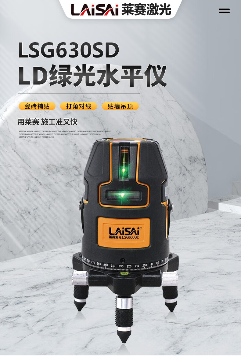 Laisai Laser LSG630PD infrared level green light 8-line electronic high-precision laser bricklaying instrument for plastering and dotting Laisai 8-line 9-point 630 high-bright green light standard