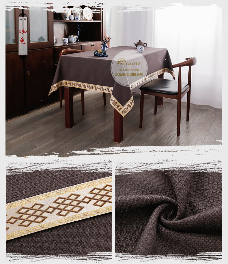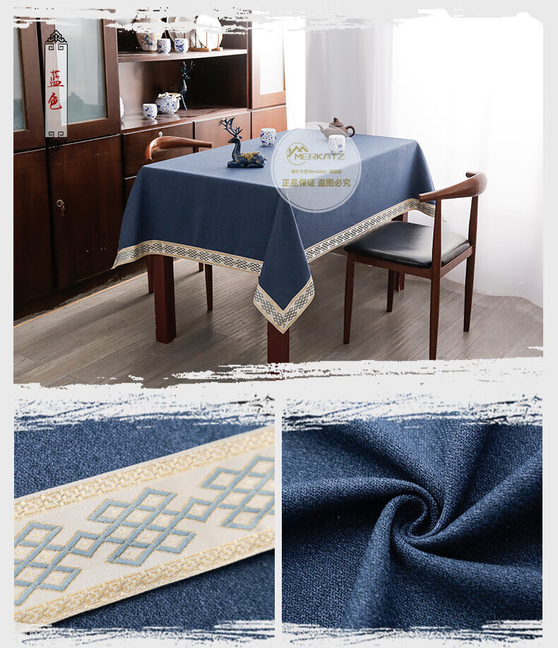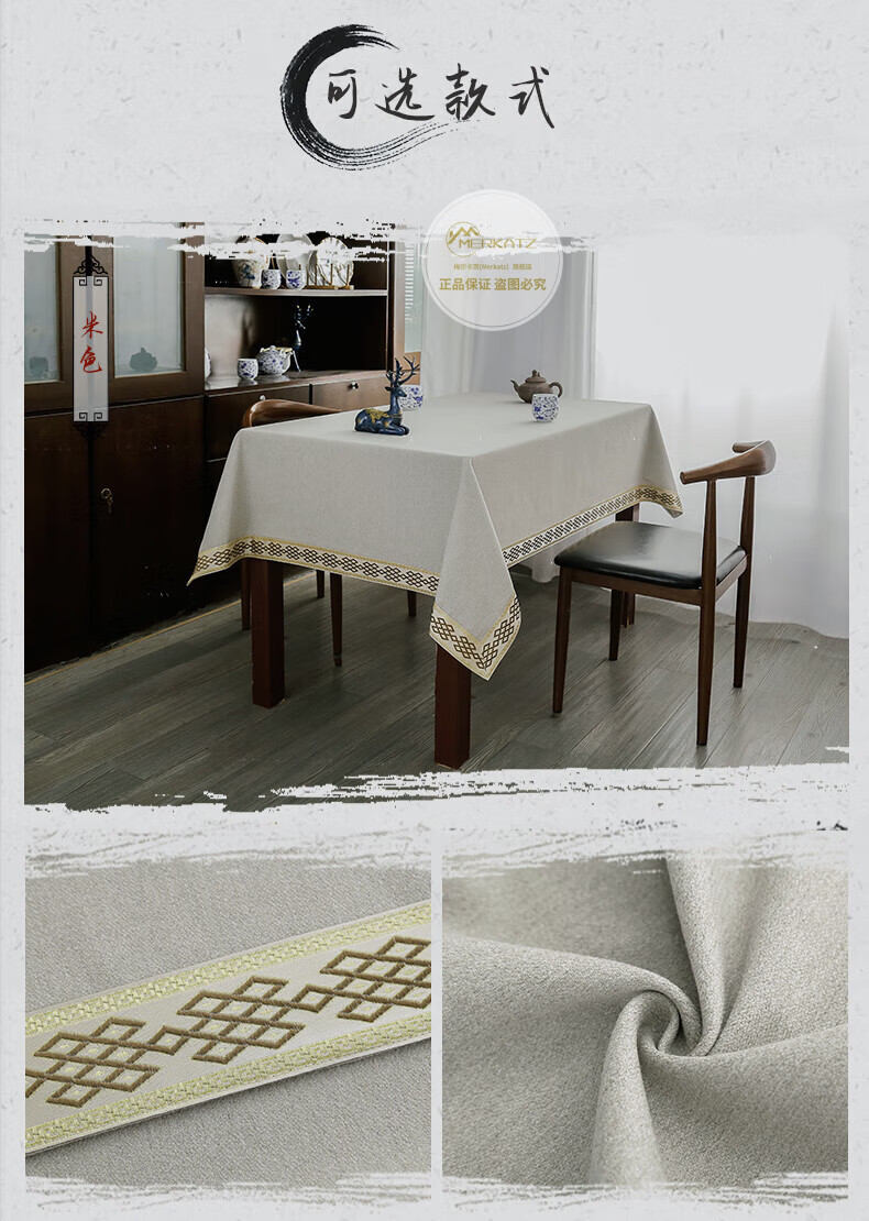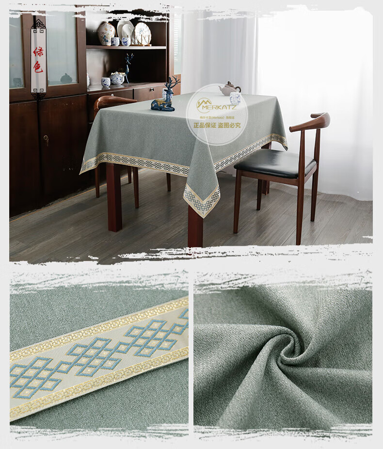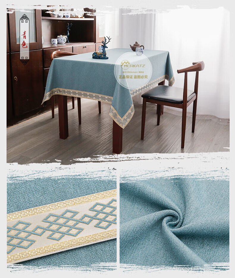 Melkatz thick square tablecloth fabric new Chinese rectangular coffee table tablecloth cotton and linen style conference room tablecloth high-end matcha color thick light luxury (dark) 120cm*170cm rectangular tablecloth