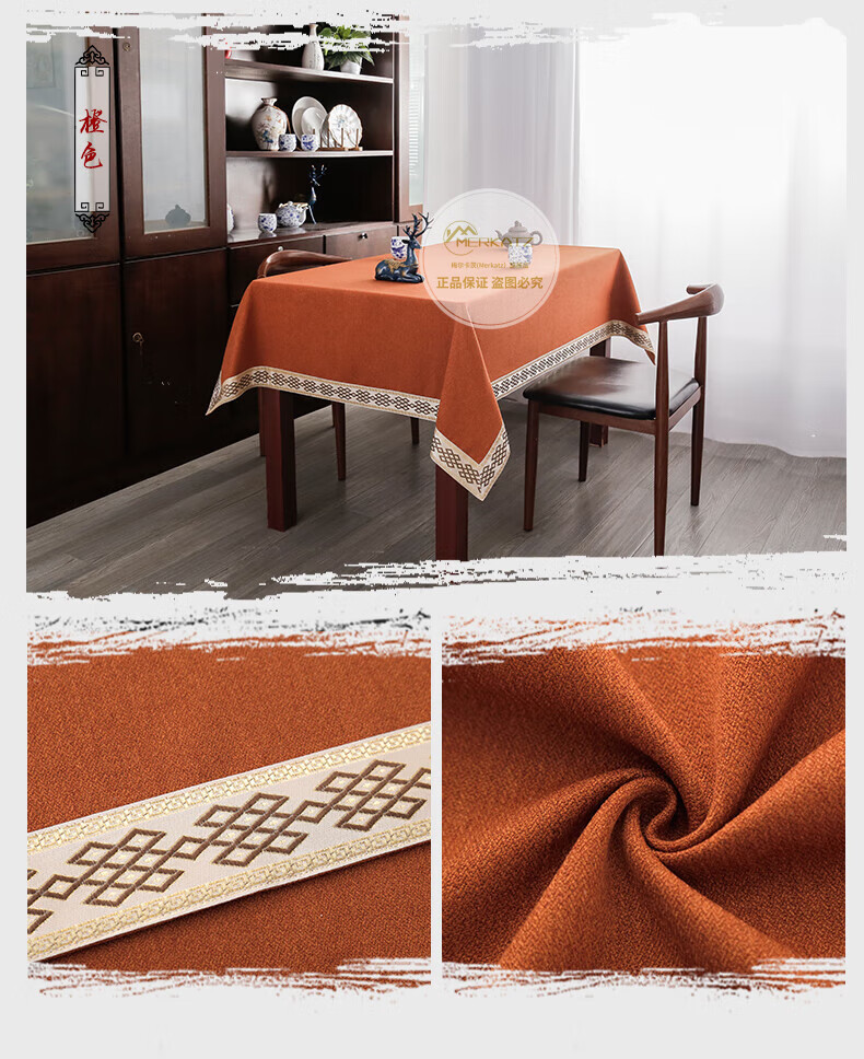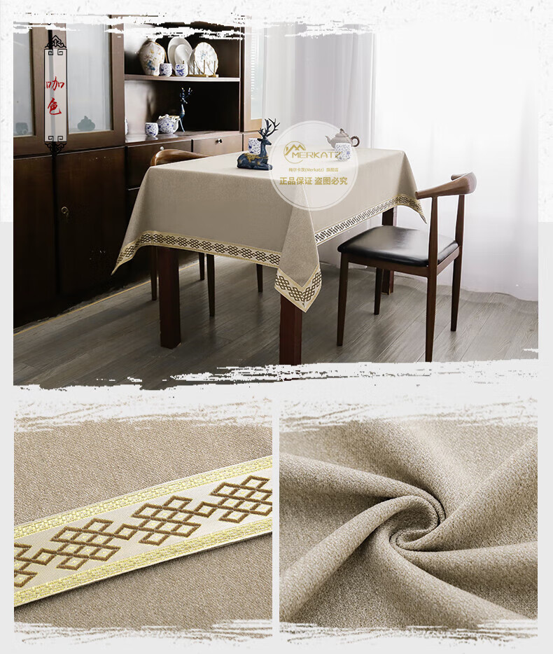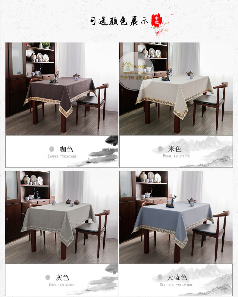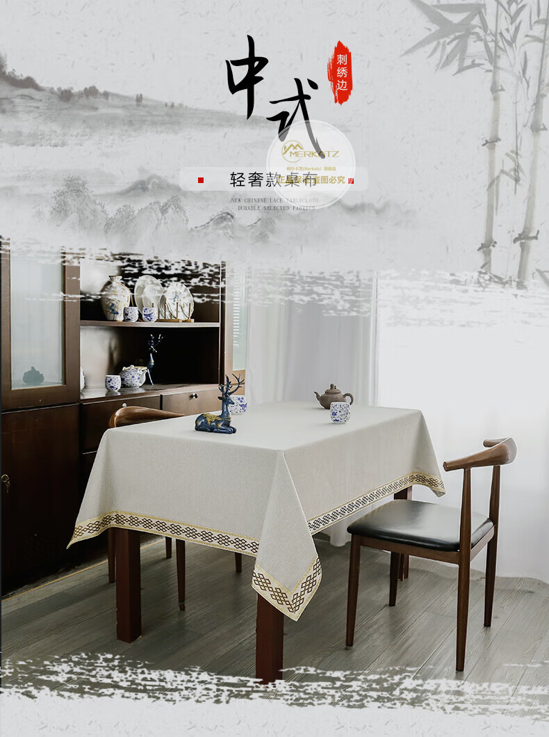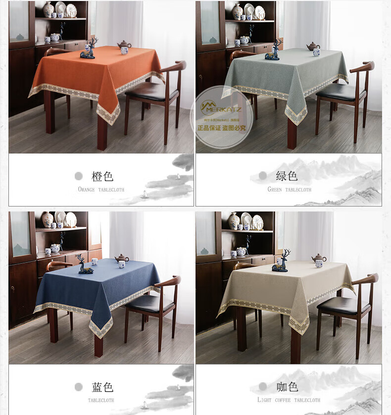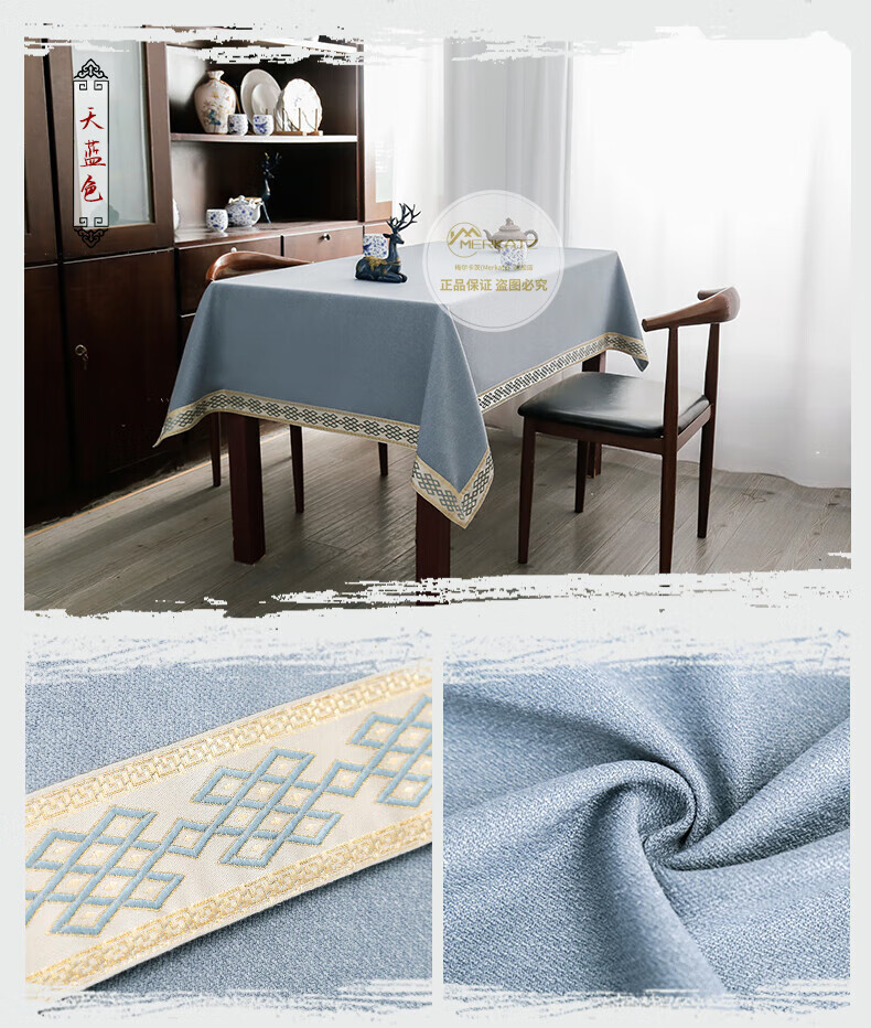 Melkatz thick square tablecloth fabric new Chinese rectangular coffee table tablecloth cotton and linen style conference room tablecloth high-end matcha color thick light luxury (dark) 120cm*170cm rectangular tablecloth