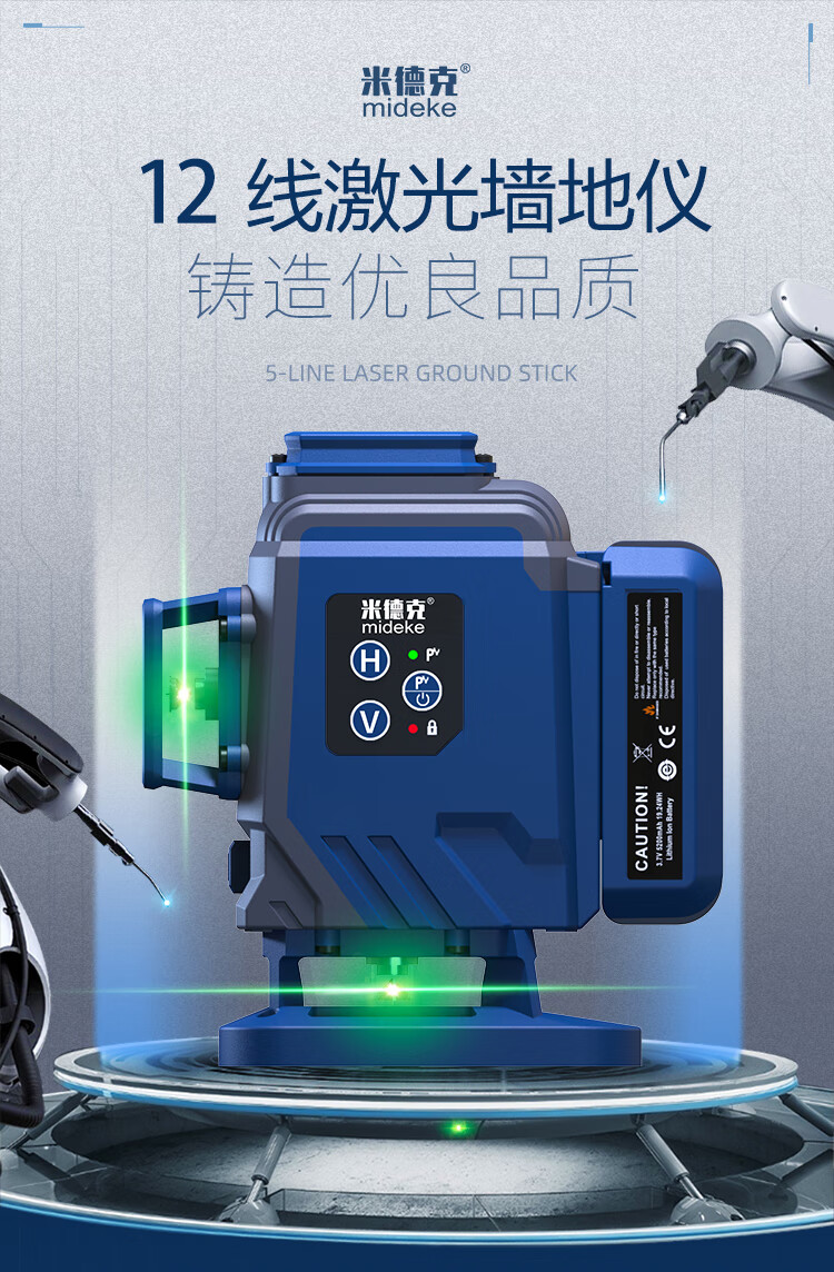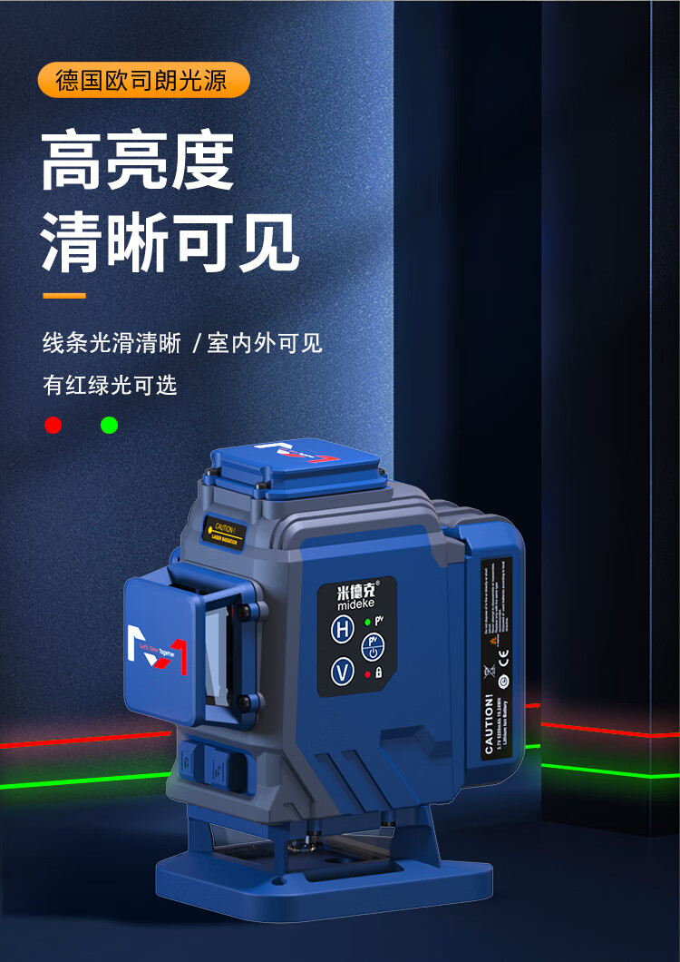 Midek 12-ray infrared level meter green light red light high-precision laser floor-to-wall meter wall-mounted meter floor leveling meter green light GK03D (lower level) simple installation single battery (small plastic box without brackets, etc.)
