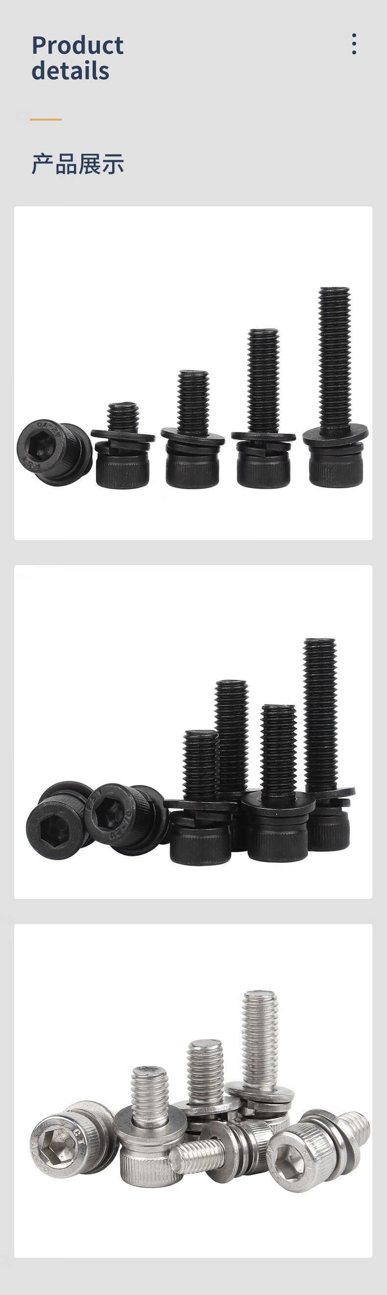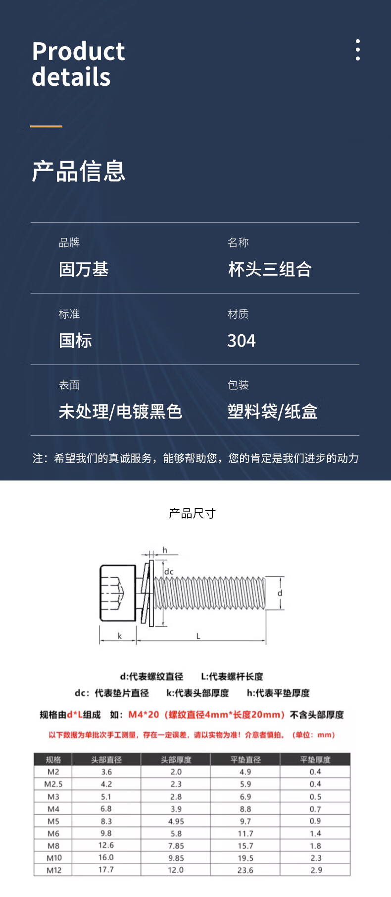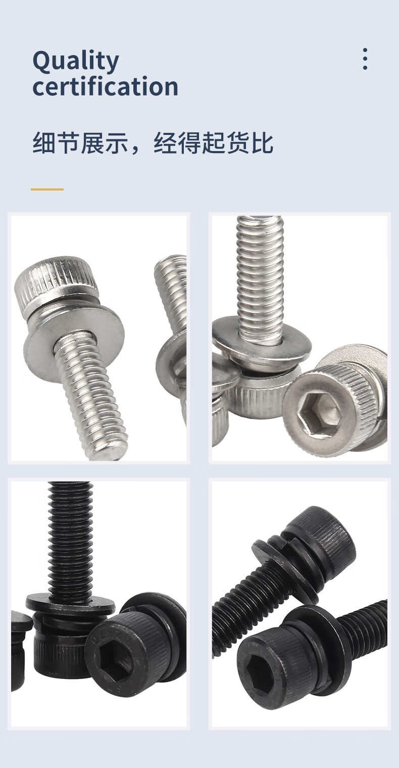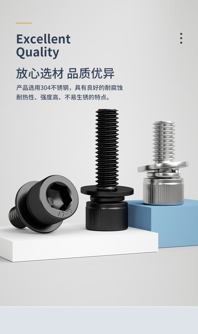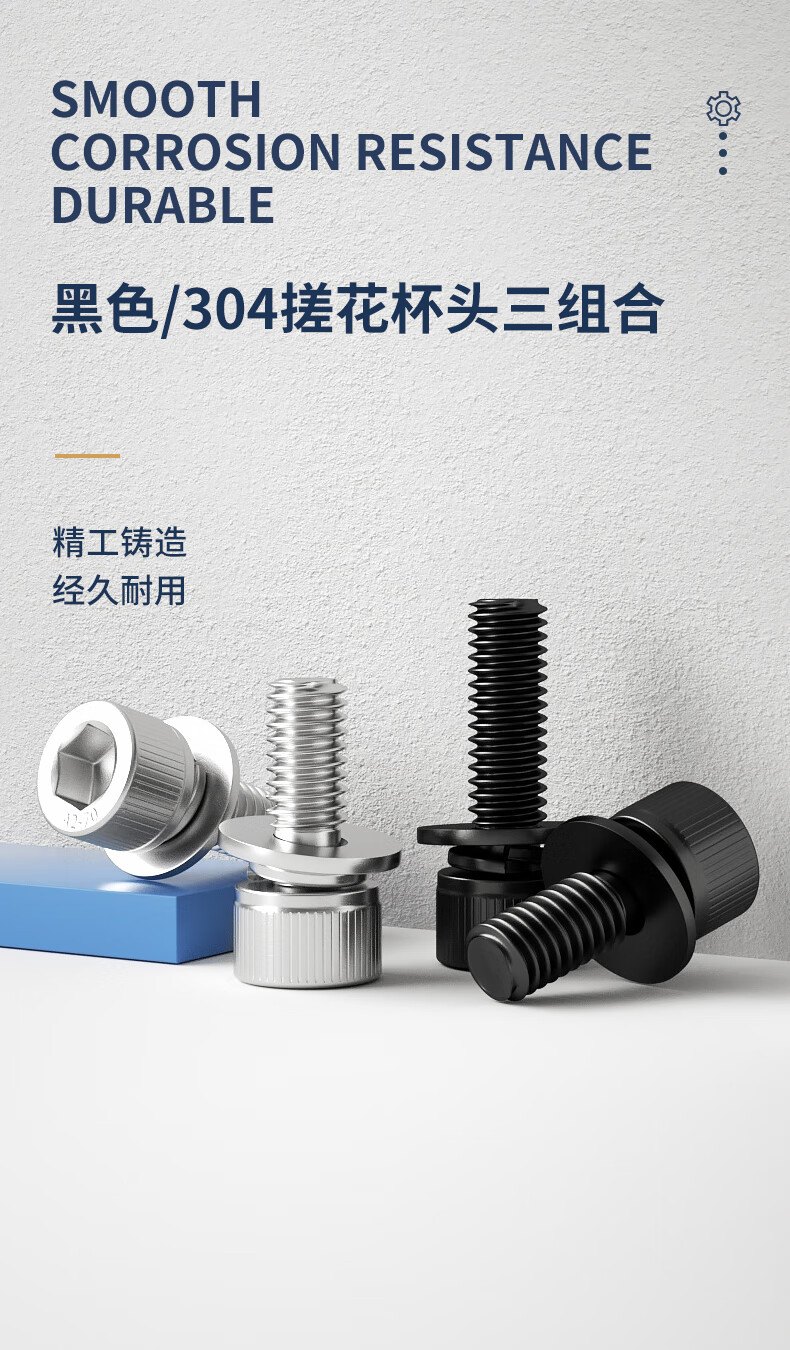 Guwanji black 304 stainless steel cylindrical head hexagonal three-combination screws, flat spring washers, cup head bolts, 304 black M6x14x12 (10 pieces)