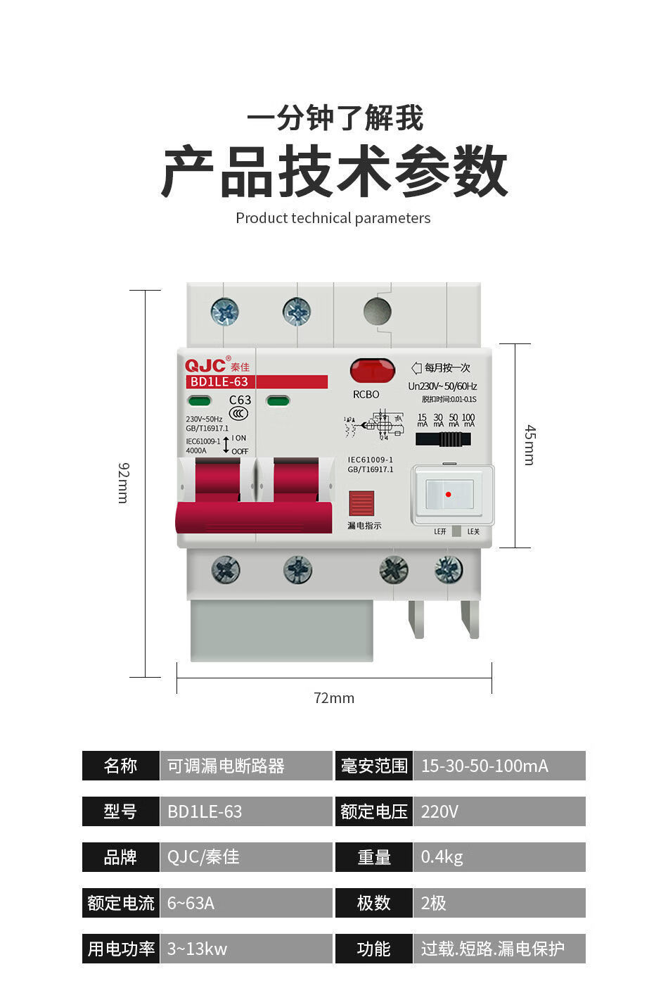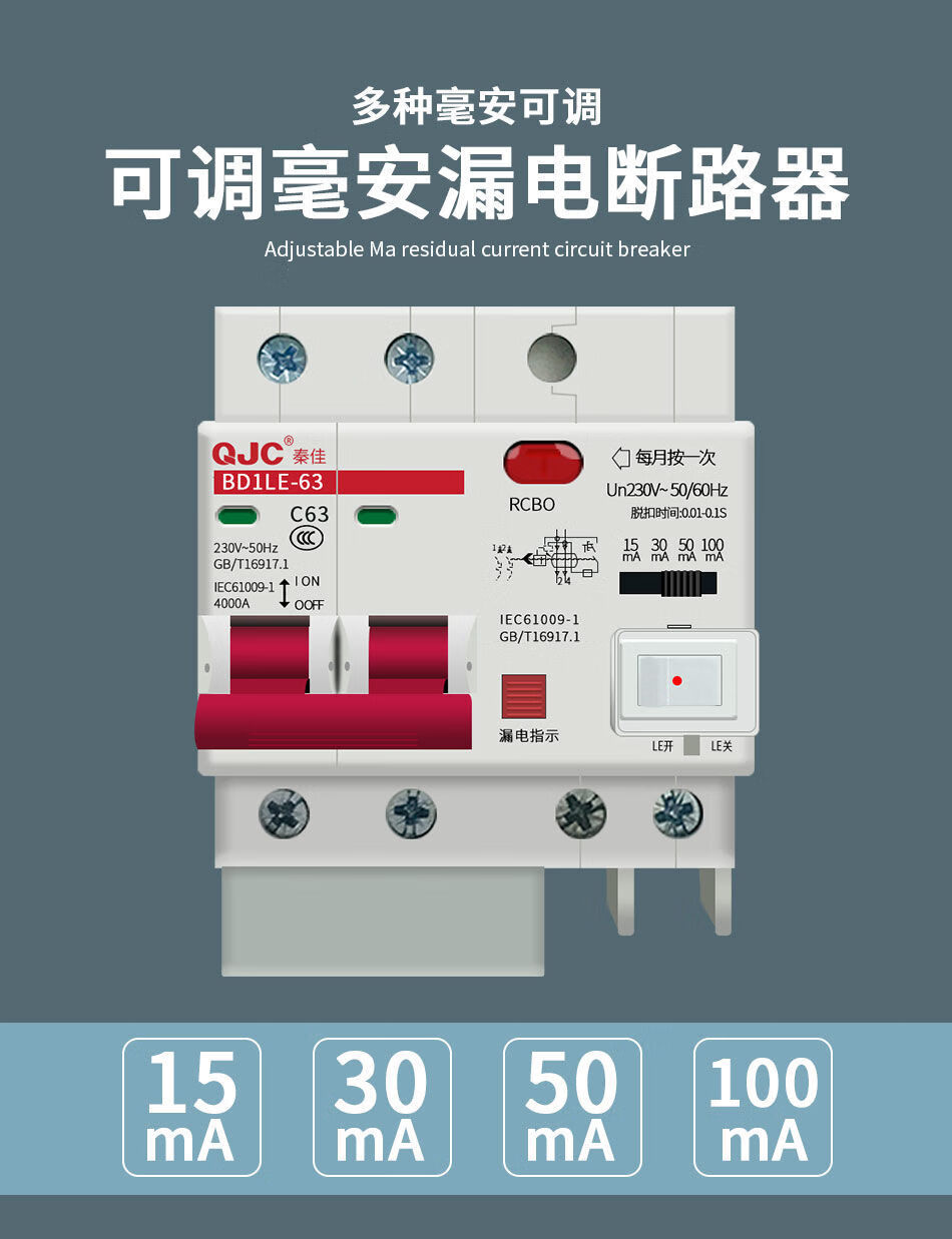 Small adjustable mA 15am30am50ma100ma leakage protection circuit breaker main switch 2P10A