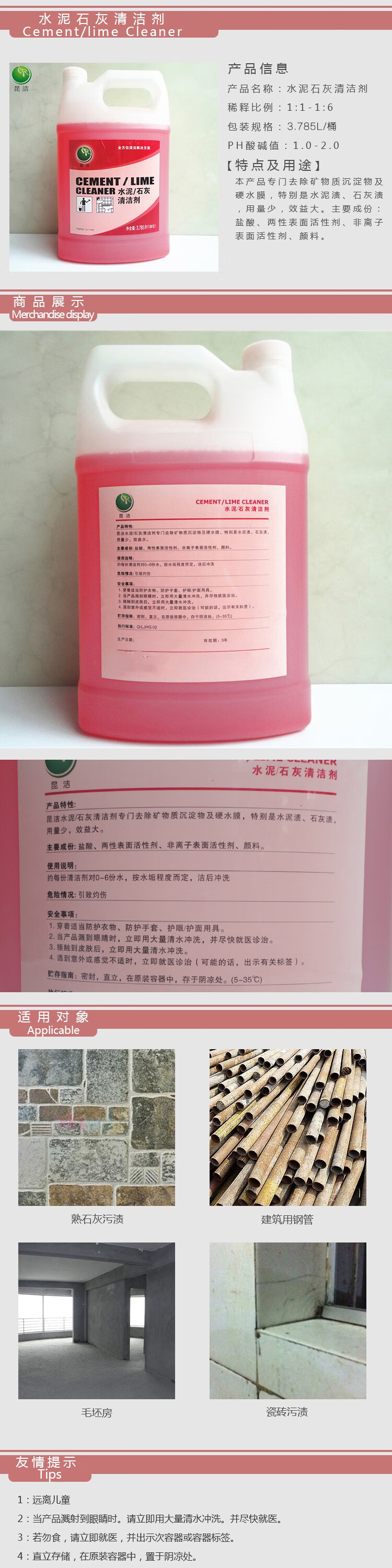 Kunjie cement lime cleaner 3.785L/barrel