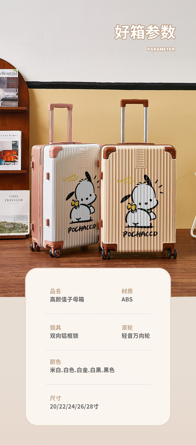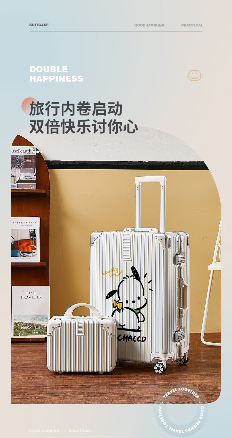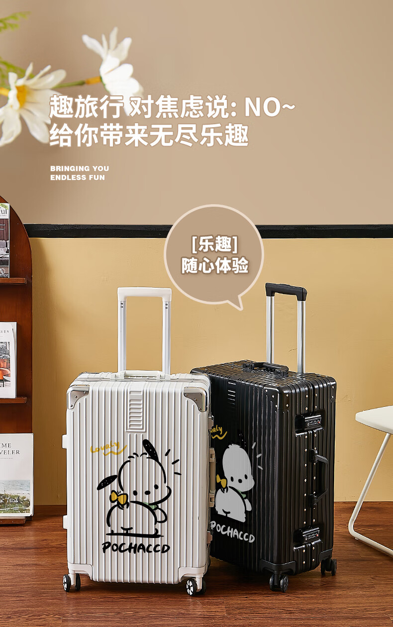 Guihong 2025 New Cartoon Printed Luggage Lightweight Trolley Case for Men and Women Aluminum Frame Large Capacity Student Strong and High-Class 2026 (Aluminum Frame Model) White 20 Inches Domestic and International Boarding Cases