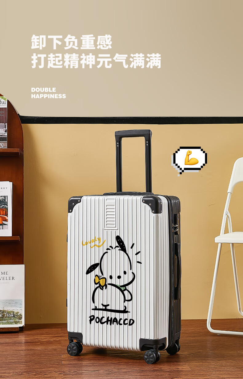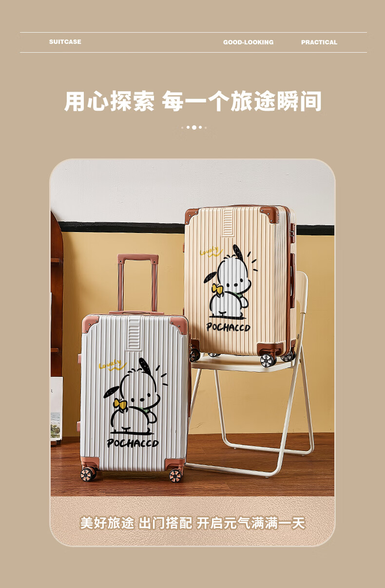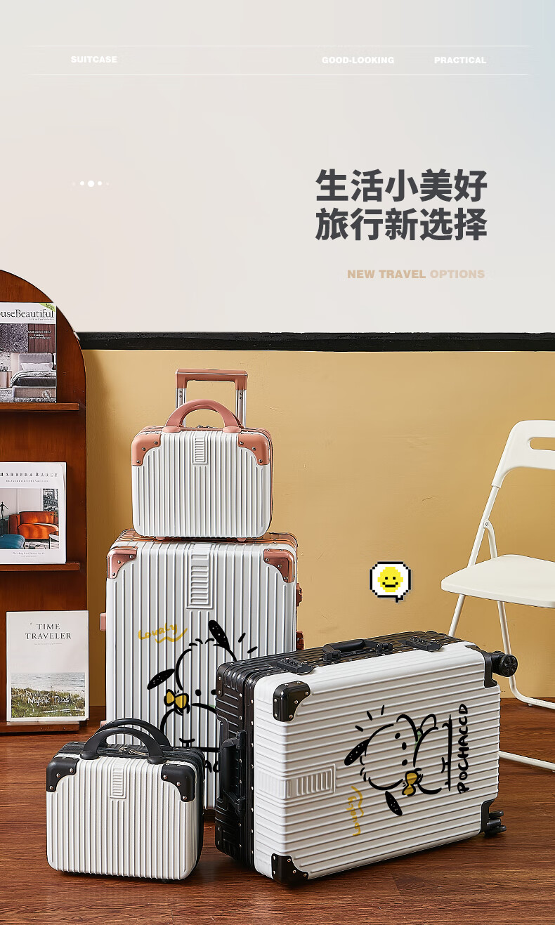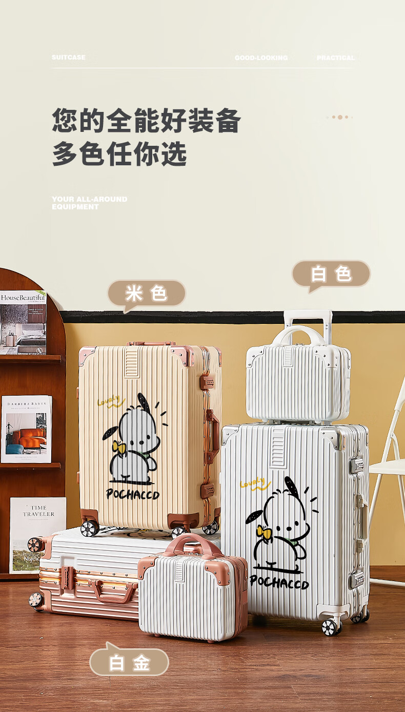 Guihong 2025 New Cartoon Printed Luggage Lightweight Trolley Case for Men and Women Aluminum Frame Large Capacity Student Strong and High-Class 2026 (Aluminum Frame Model) White 20 Inches Domestic and International Boarding Cases
