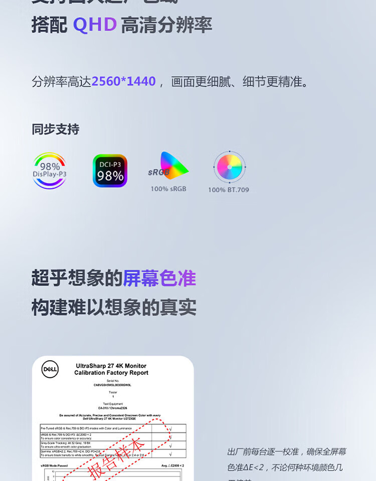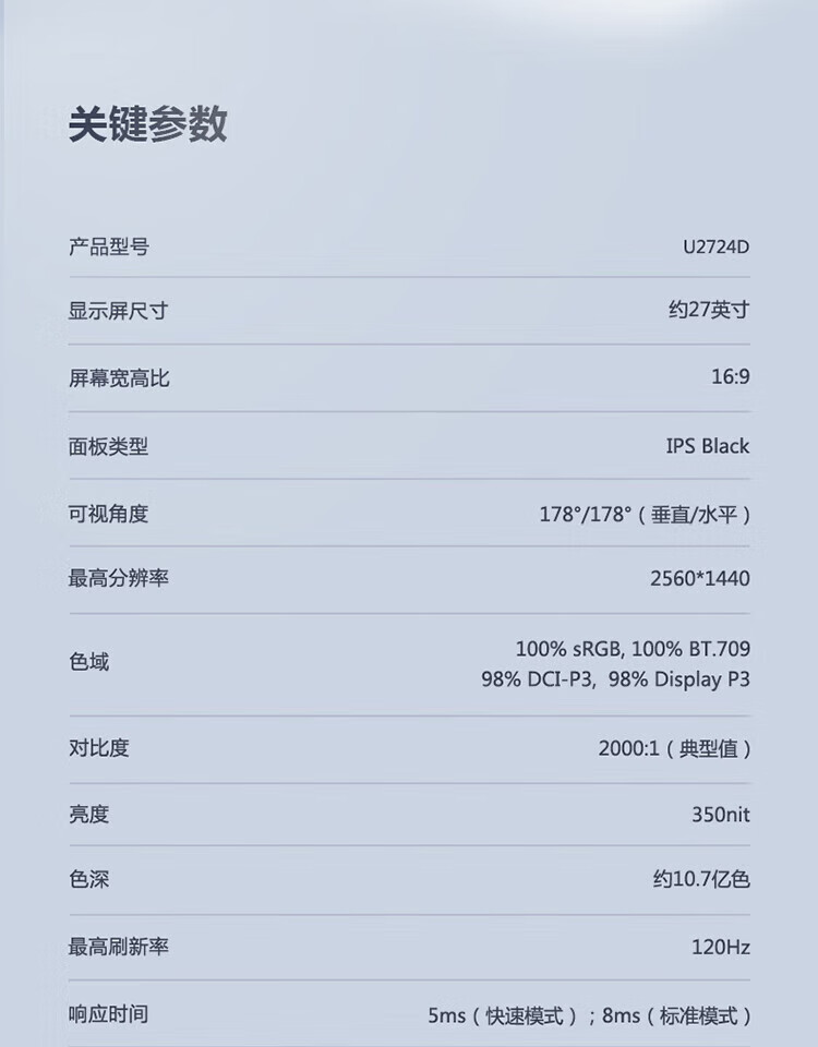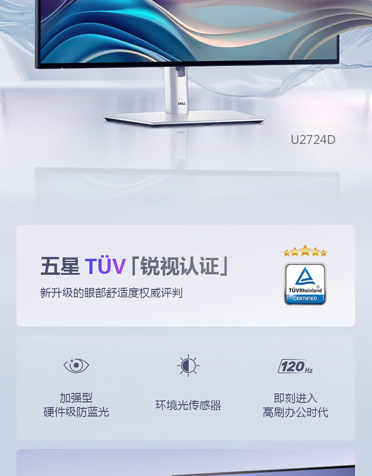 Dell (DELL) U2724D 27-inch 2K cinema-level design retouching physical anti-blue light 120Hz 10Bit rotation lift official flip U2724D 27-inch 2K screen DP cable National warranty for three years door-to-door replacement 99% new