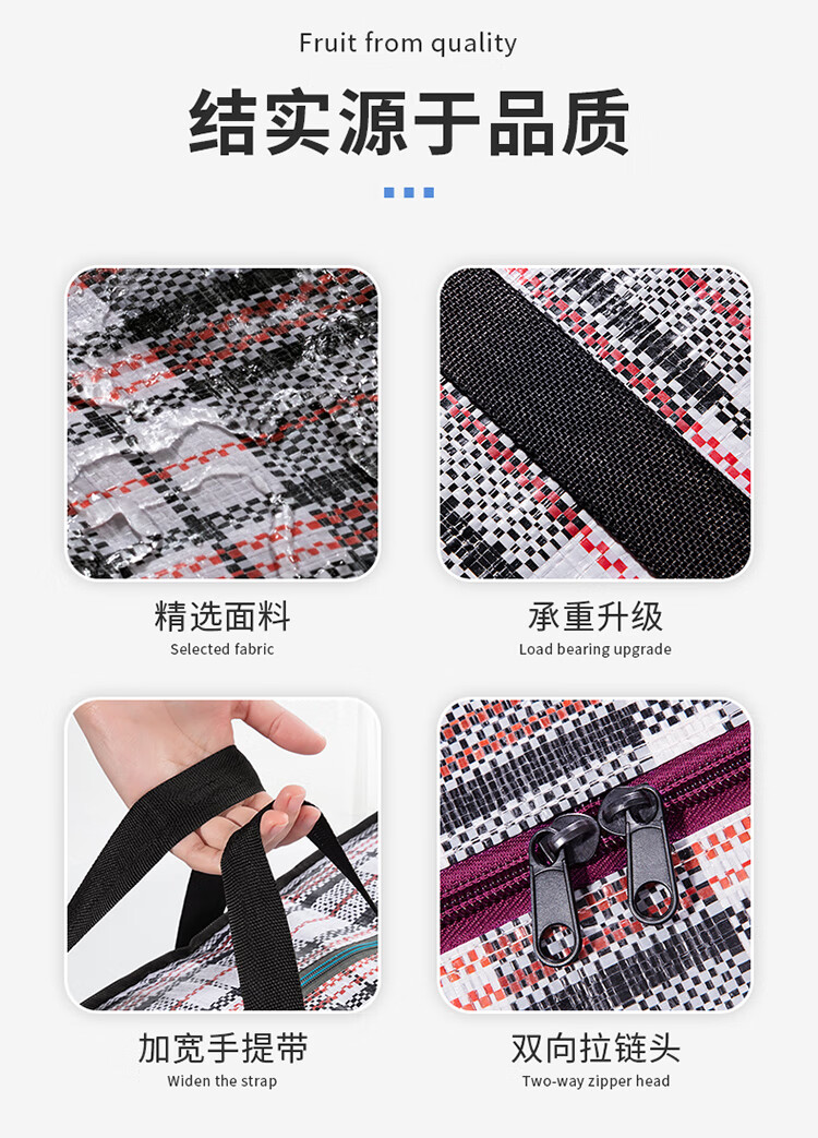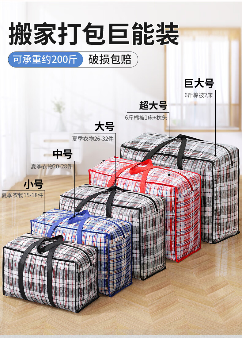 Angtu snakeskin woven bag moving storage bag for cotton quilts, clothes, luggage, large capacity sack, huge black plaid 88*50*30 1 piece, large capacity