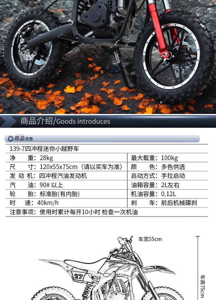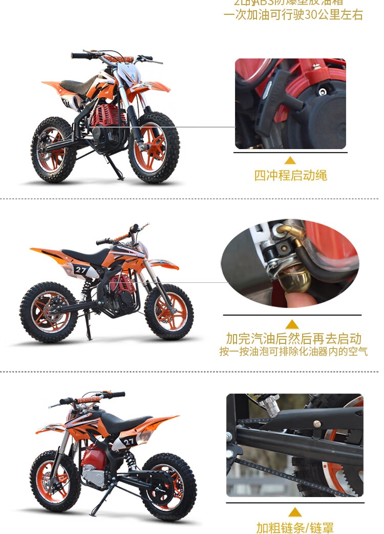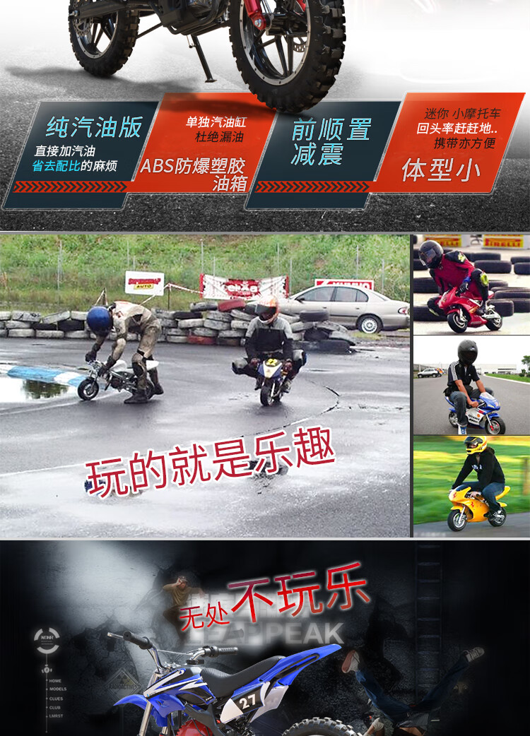 Langchuang Motorcycle 49cc mini medium 4-stroke off-road vehicle two-wheel light motorcycle fuel version pure gasoline model 4-stroke hand start red green