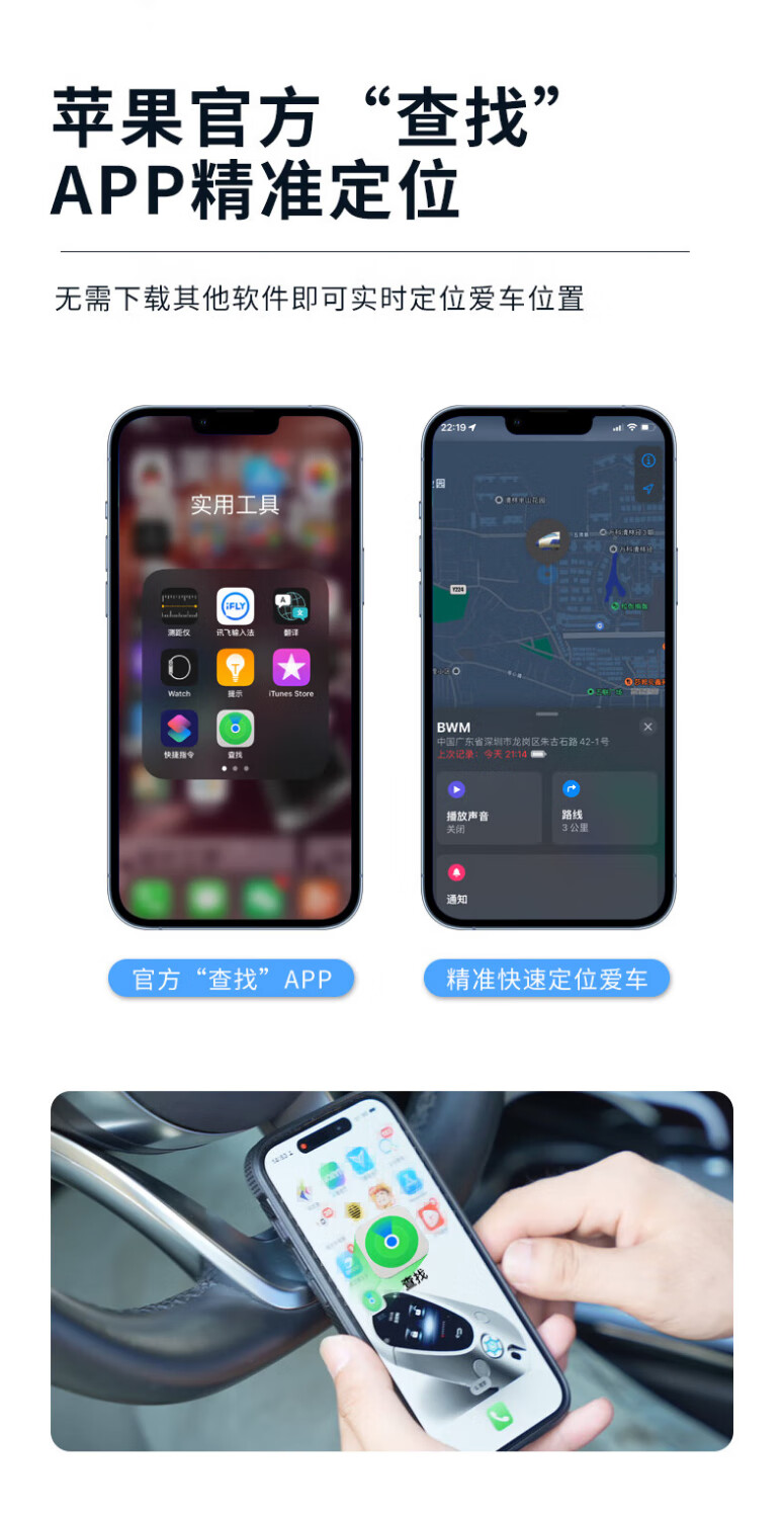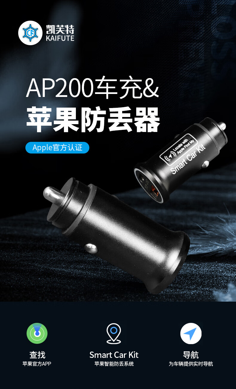 Best Happy AP200 Car Charger & Apple Anti-Lost Device Cigarette Lighter Direct Plug Power Supply Intelligent Anti-Lost System Locator Dual Port Fast Charging Black