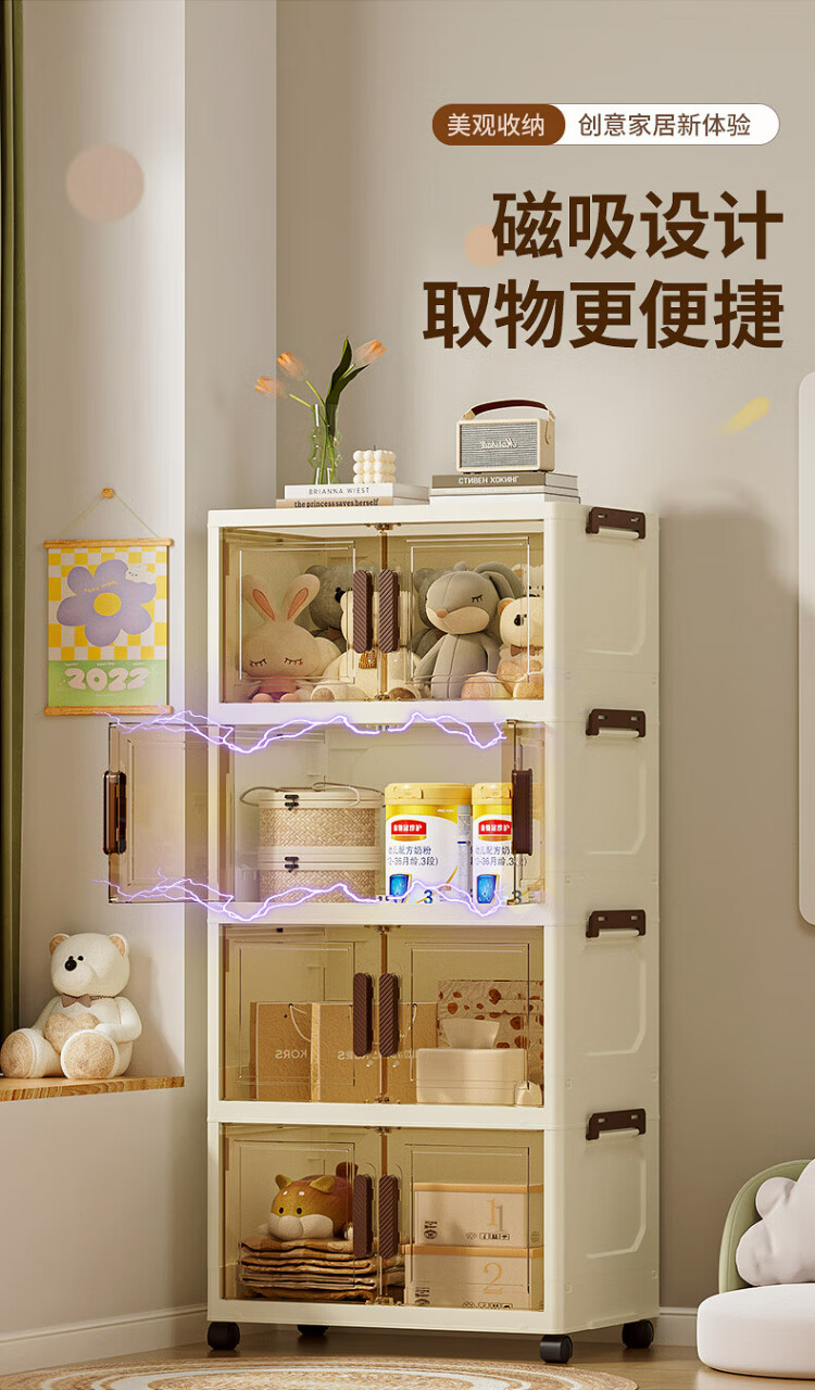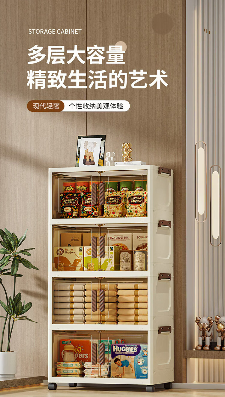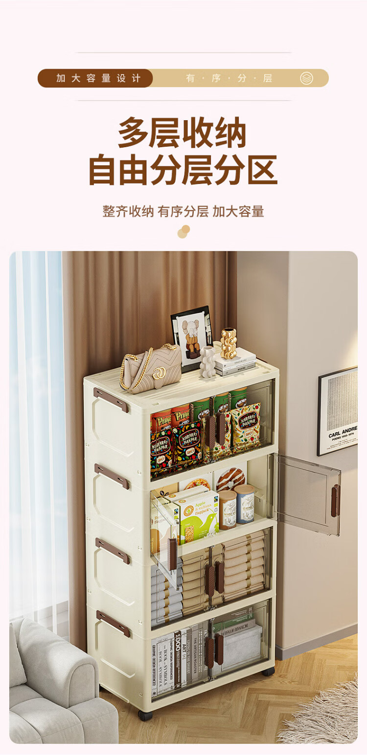 Quanpin House Storage Cabinet Box Storage Simple Wardrobe Snacks Clothes Kitchen Folding Multi-layer No Installation Bedside Storage Cabinet 50 Wide Three Layers Folding No Installation Free Next Day Delivery to Your Door
